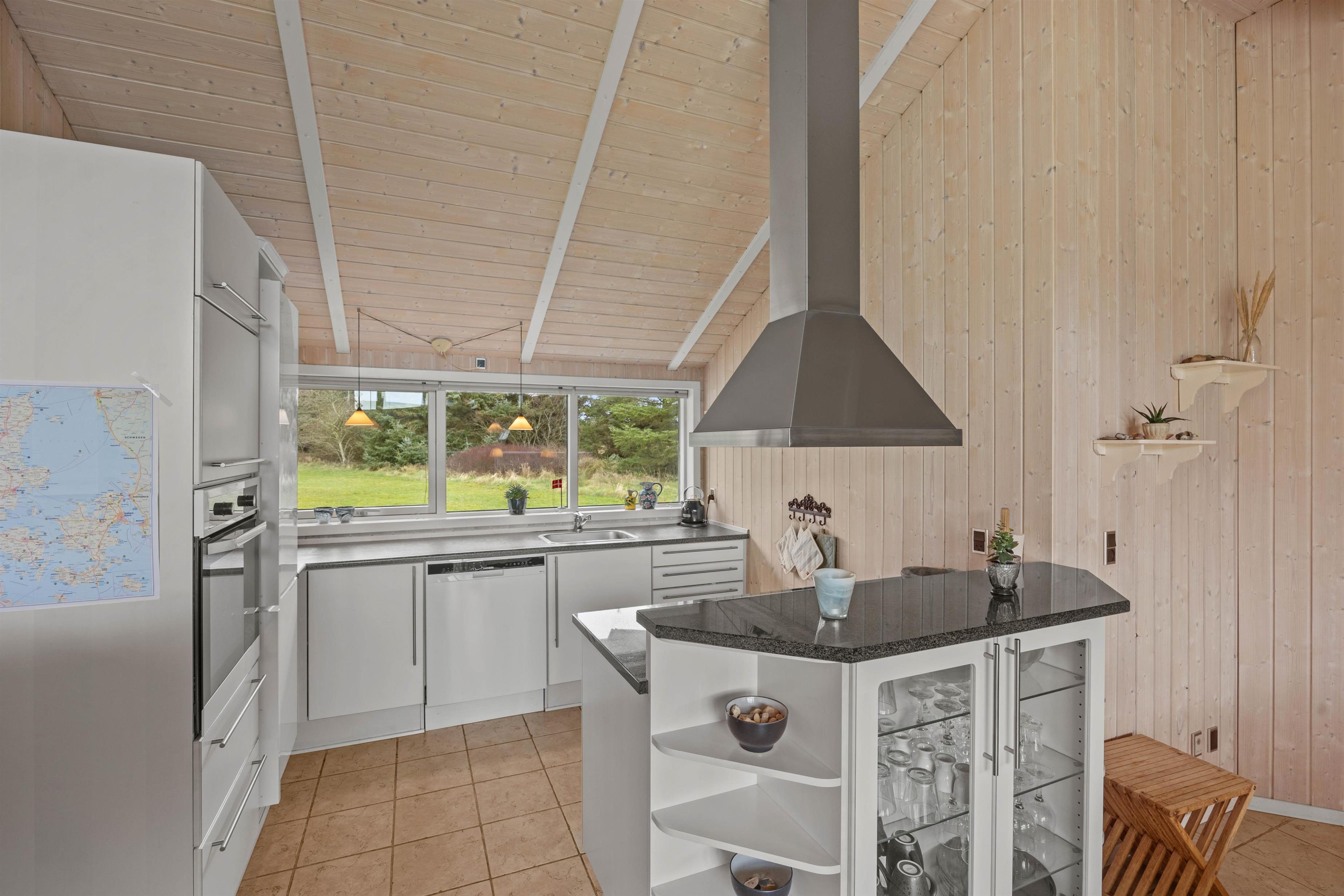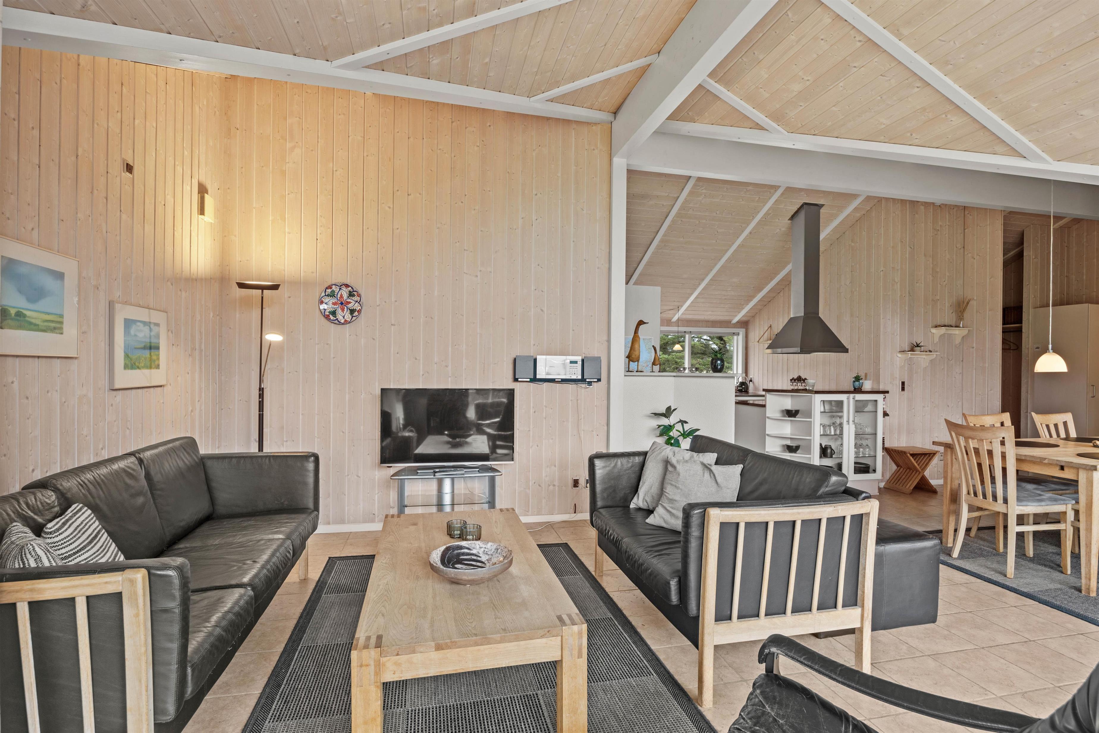 Tænd op i brændeovnen og sæt jer godt til rette på sofaen med en god film eller et spil. Stuen er forbundet med det veludstyrede køkken, og her har I god plads til at tilberede aftensmaden sammen.