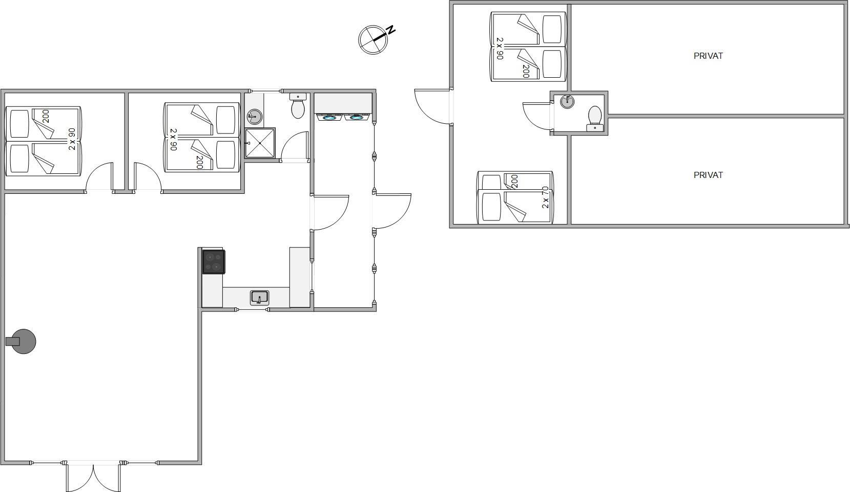 3. soverum/sengestørrelser180x200 + 70x200 (køje)