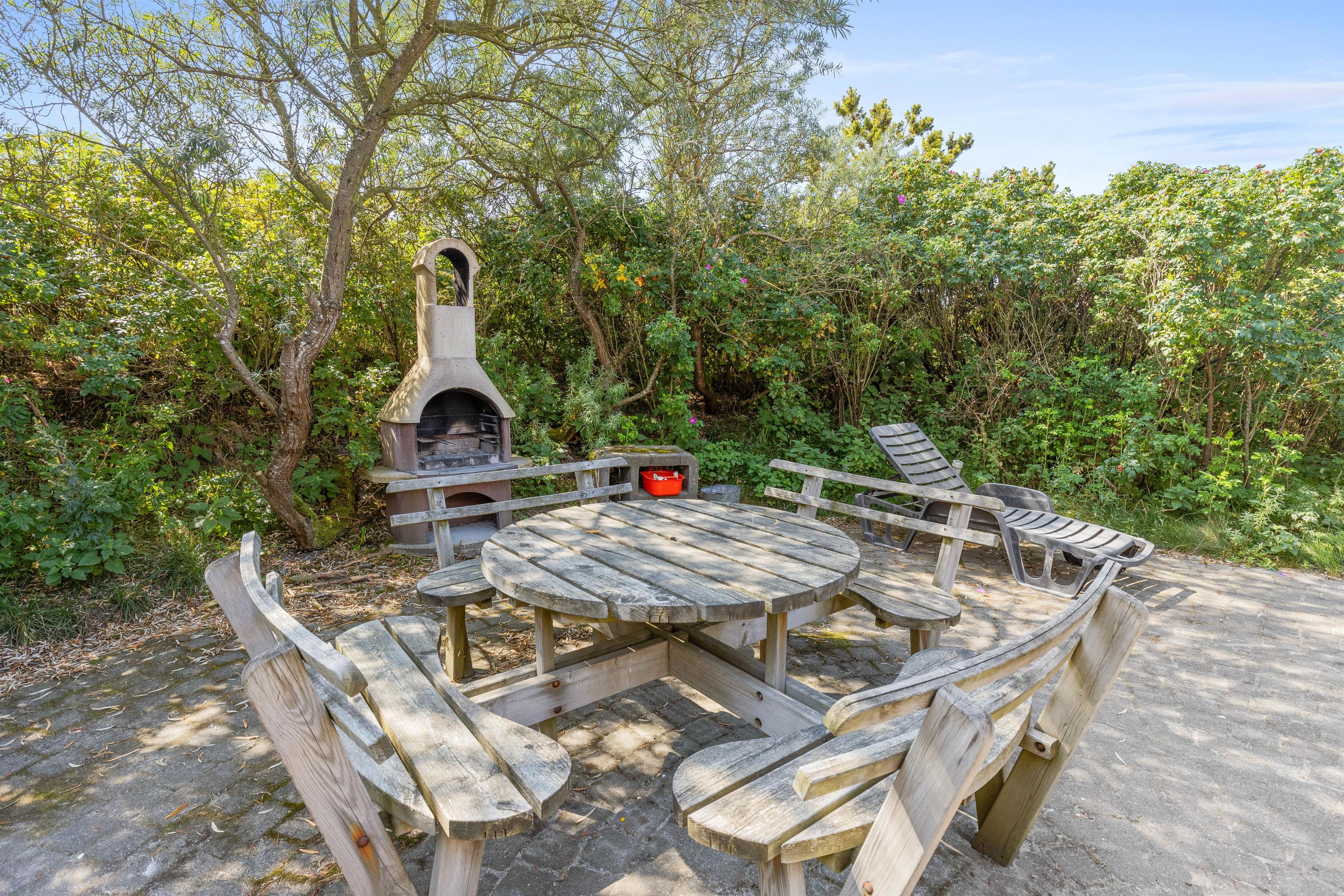 Poolsommerhuset ligger på en mere end 2.500 kvadratmeter stor naturgrund. Alle 14 feriegæster finder uden problemer en plads i solen på den store terrasse, som har flere hyggelige siddekroge og bænke rundt omkring.