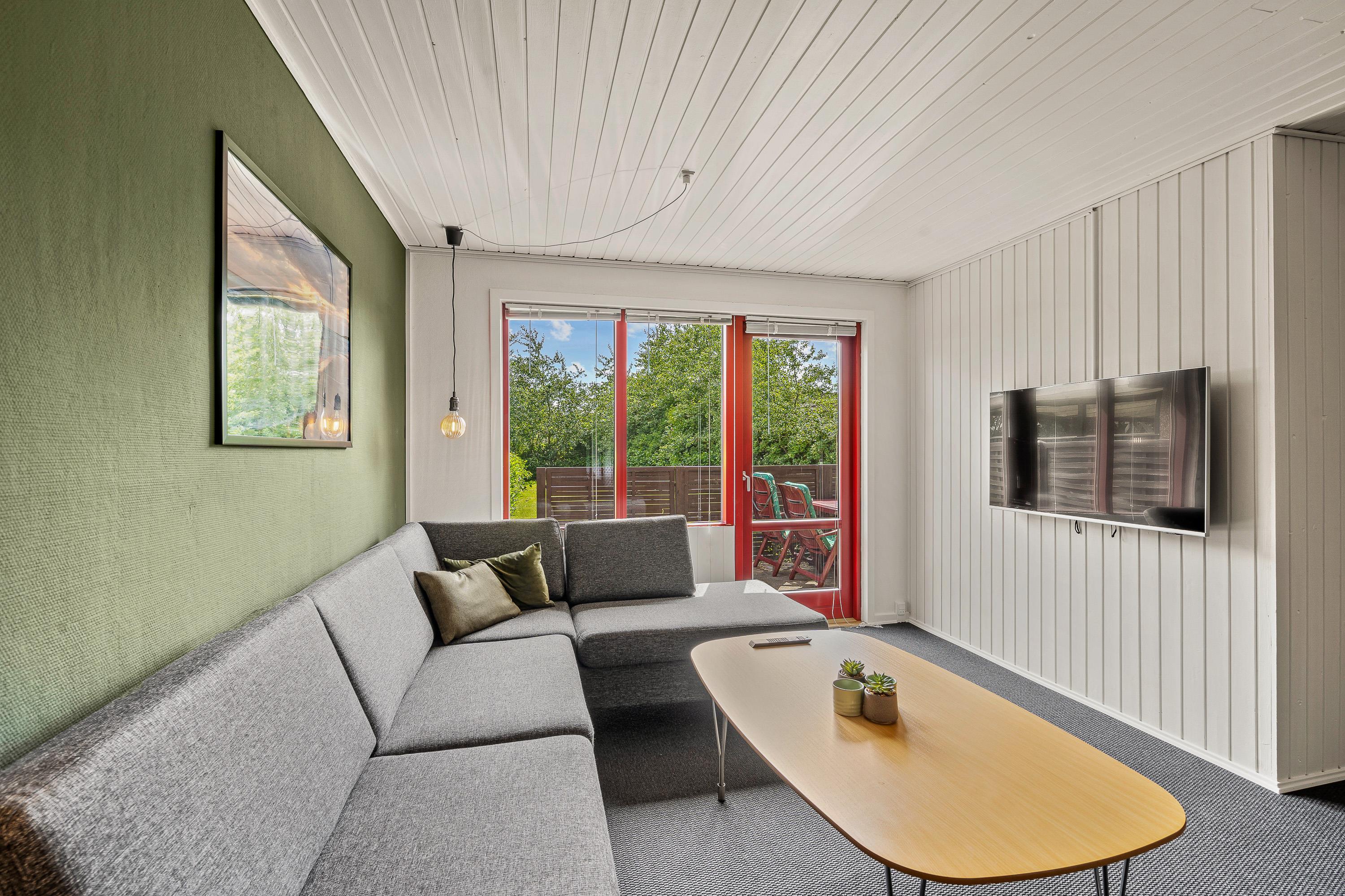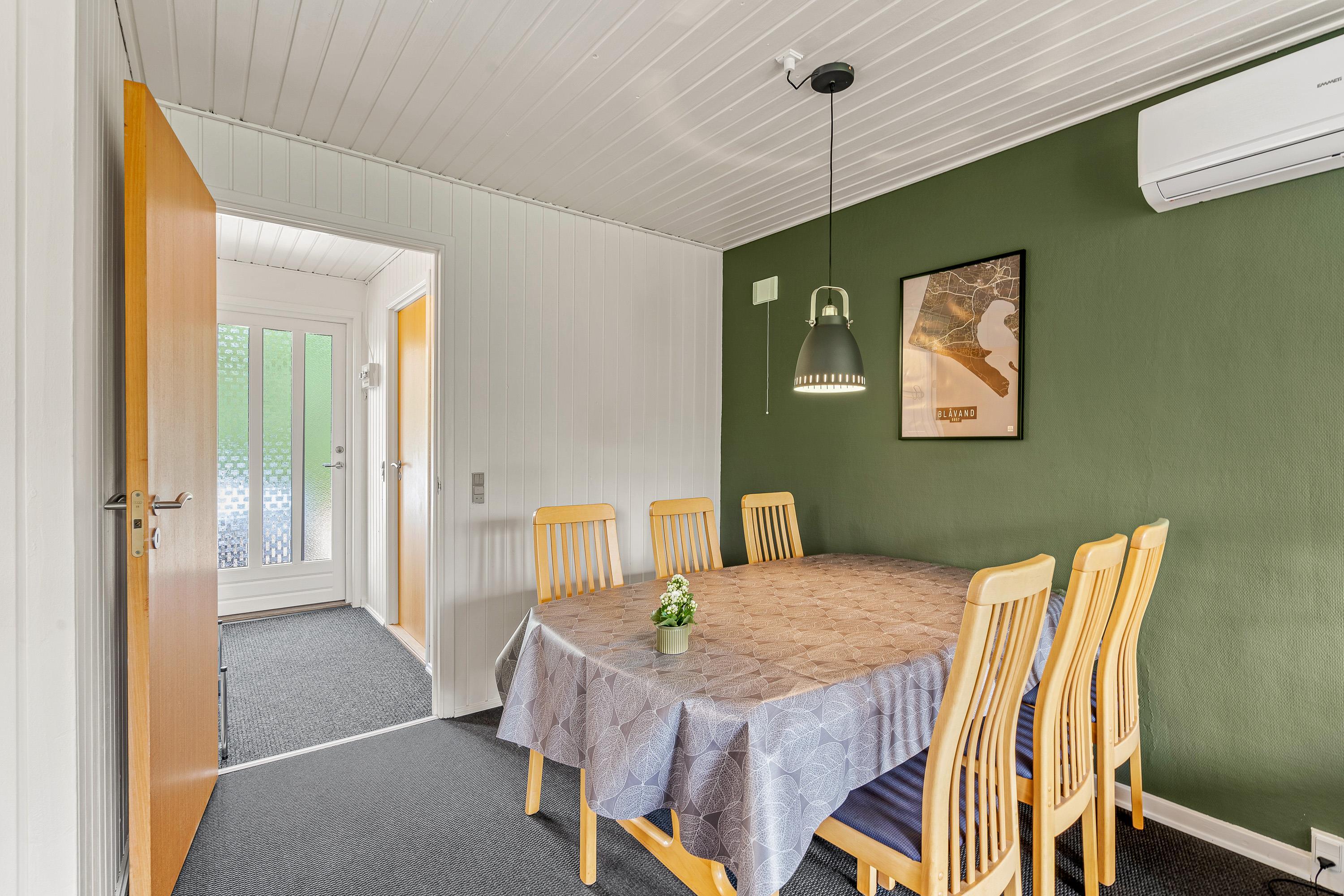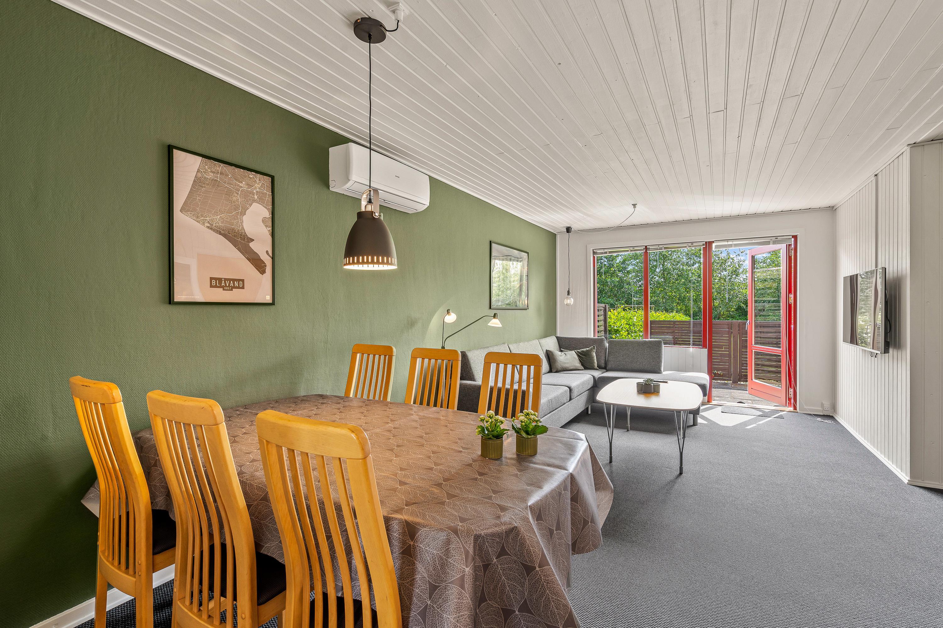 Hjertet i feriehuset er uden tvivl alrummet, hvor køkkenet ligger i åben forbindelse med spiseplads og stue. I alrummet kan I være sammen om forskellige aktiviteter såsom madlavning, spil og film. Efter madlavningen i køkkenet klarer opvaskemaskinen opvasken for jer.