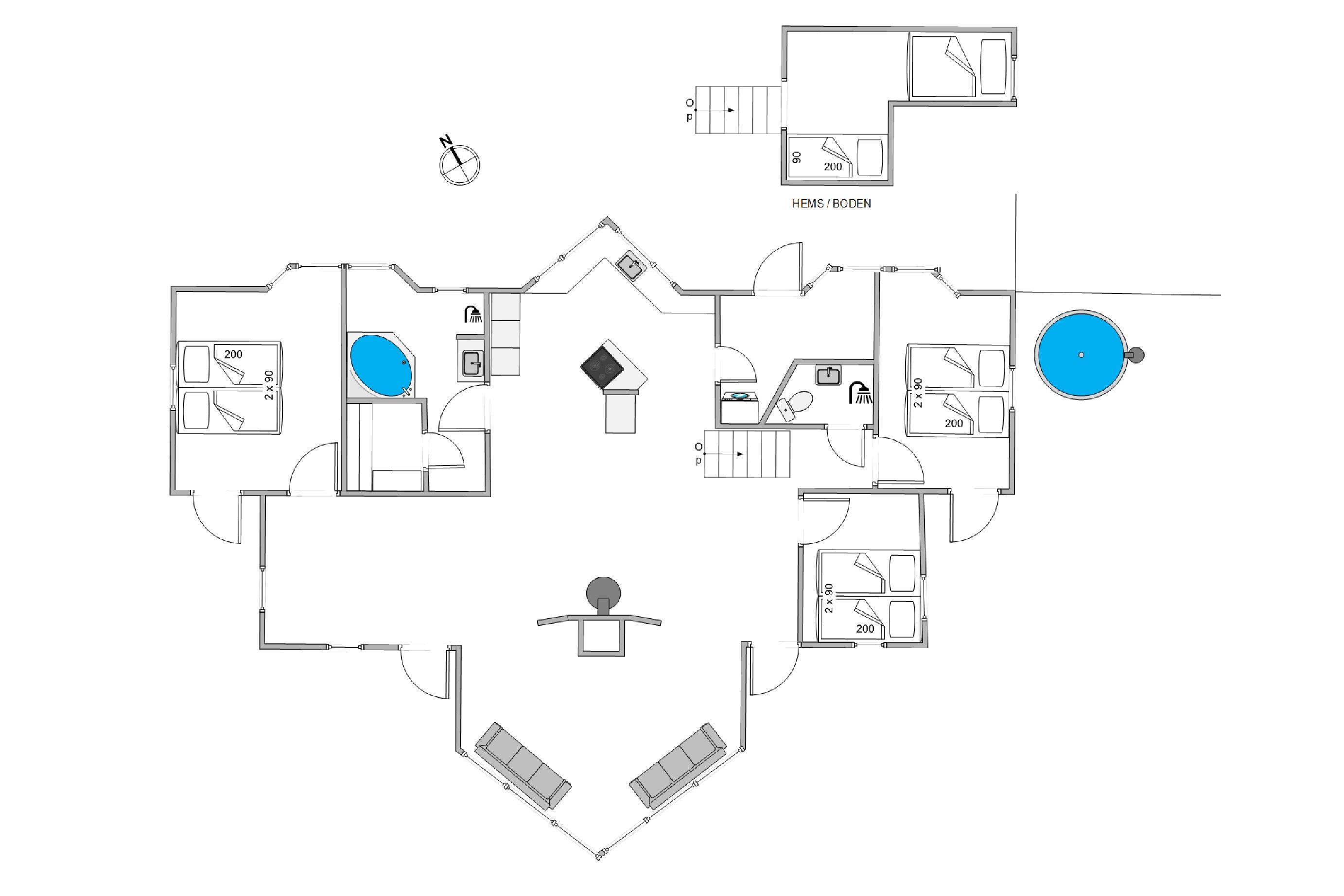 I sommerhuset er der 3 soveværelser, der hver især er indrettet med en dobbeltseng. De resterende 2 sovepladser finder I på hemsen, hvor der også er et tv. Her vil feriens yngste gæster helt sikkert elske at sove.