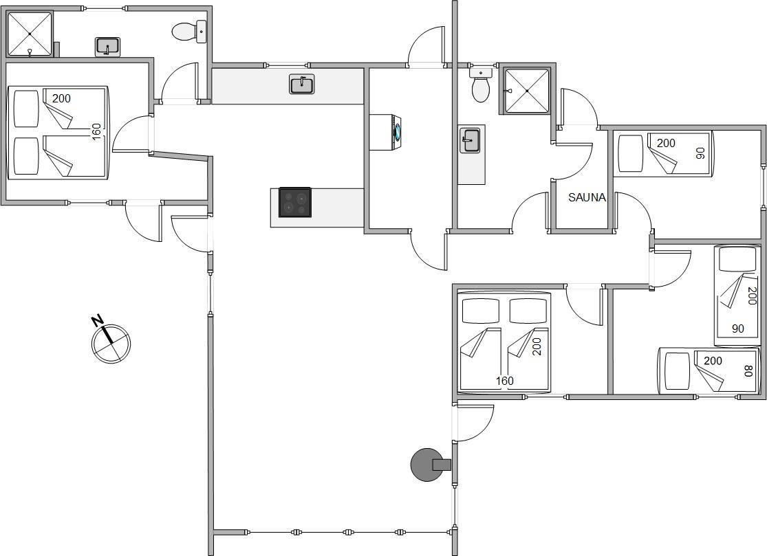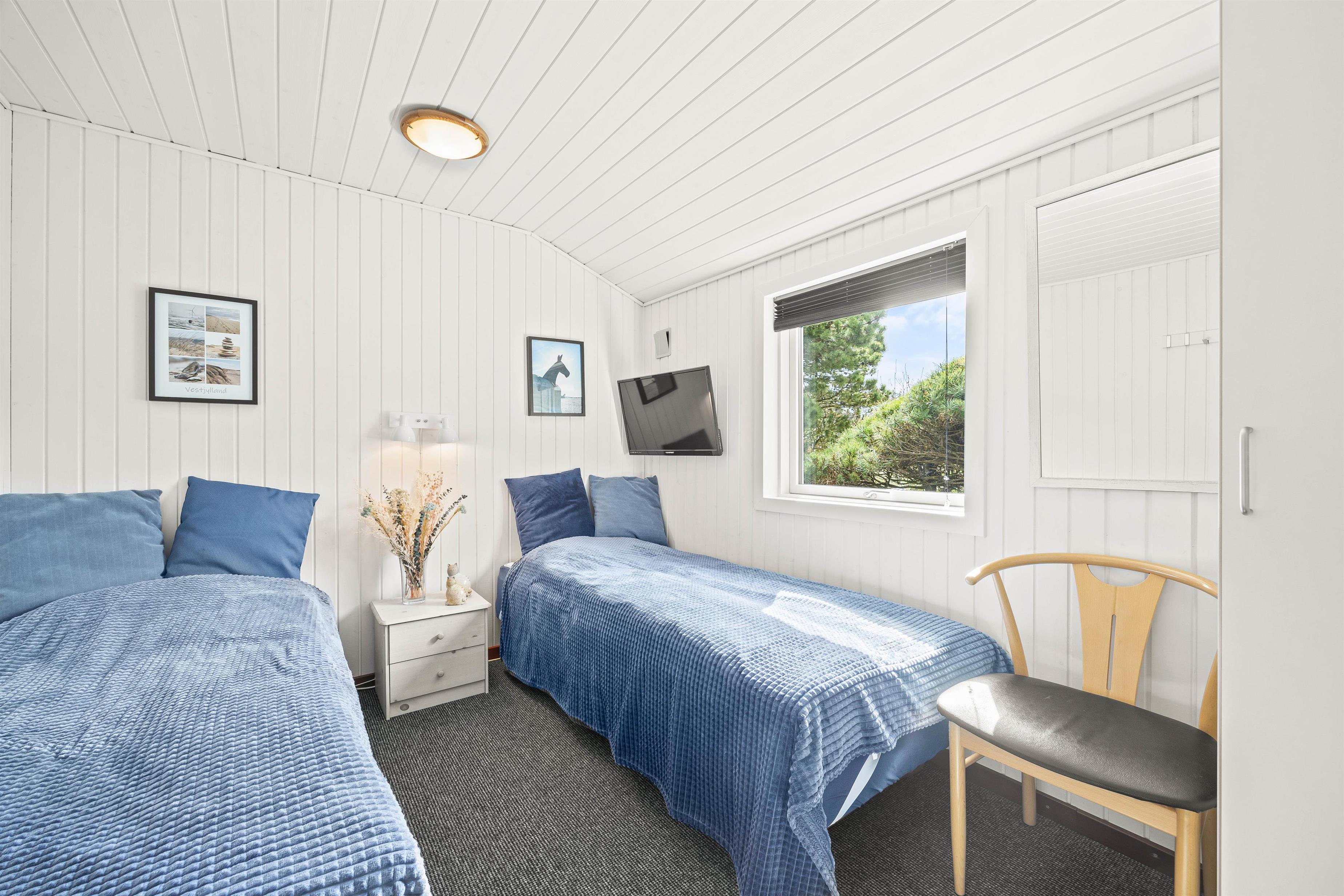 De 2 moderne badeværelser, begge med gulvvarme, gør morgenrutinerne bekvemme på ferien. Med 4 soveværelser og 7 komfortable sengepladser, herunder 2 dobbeltsenge og 3 enkeltsenge, er der rigelig plads til op til 7 personer i det rummelige feriehus.