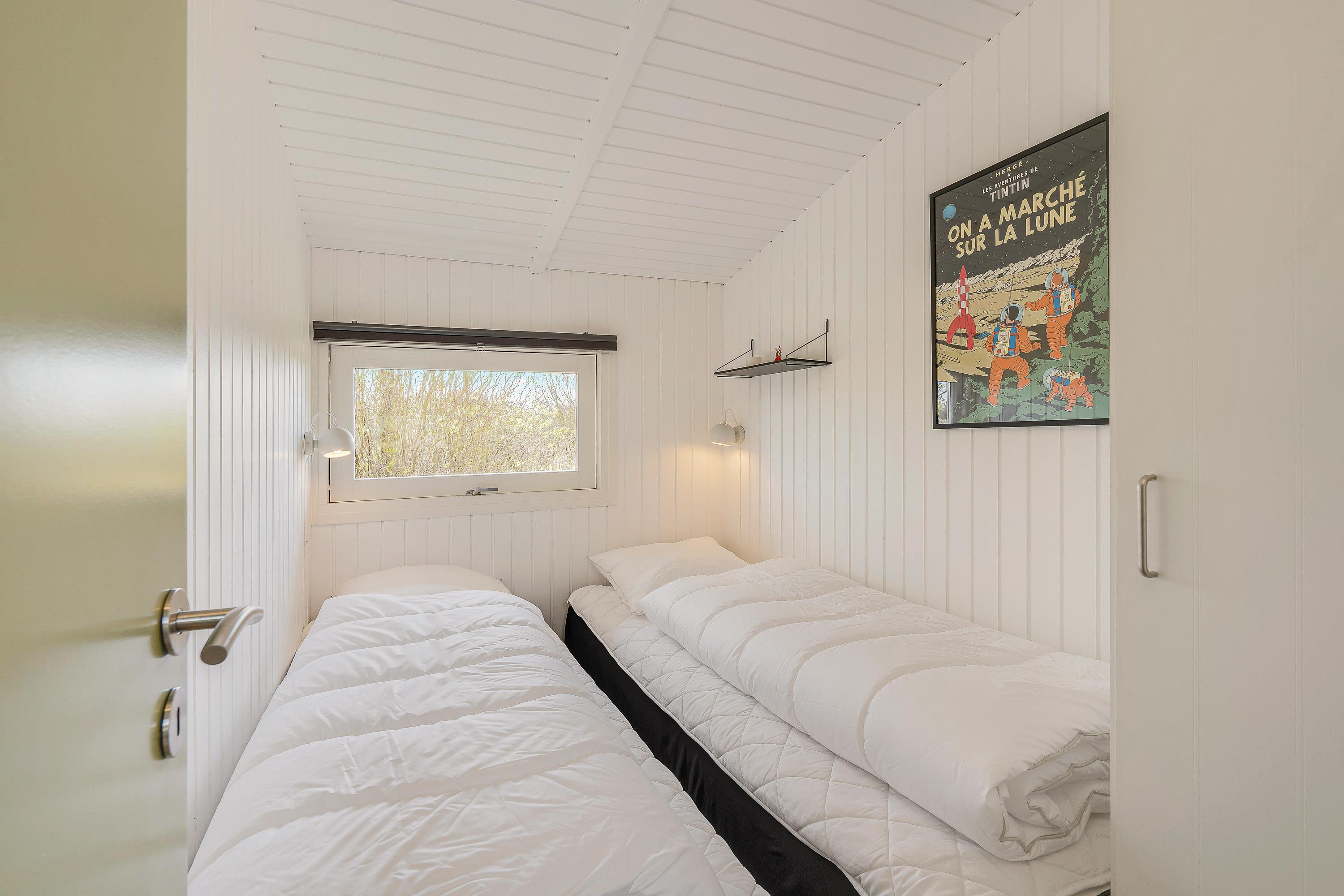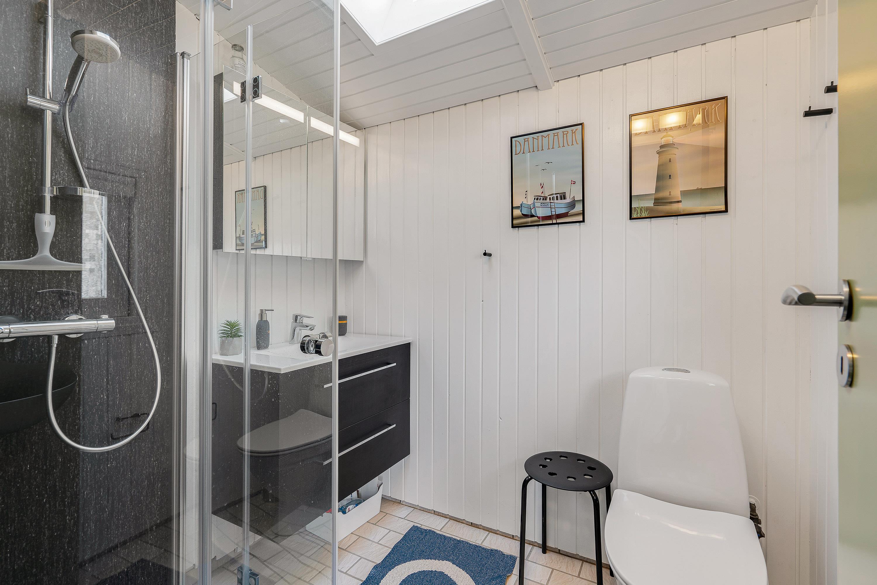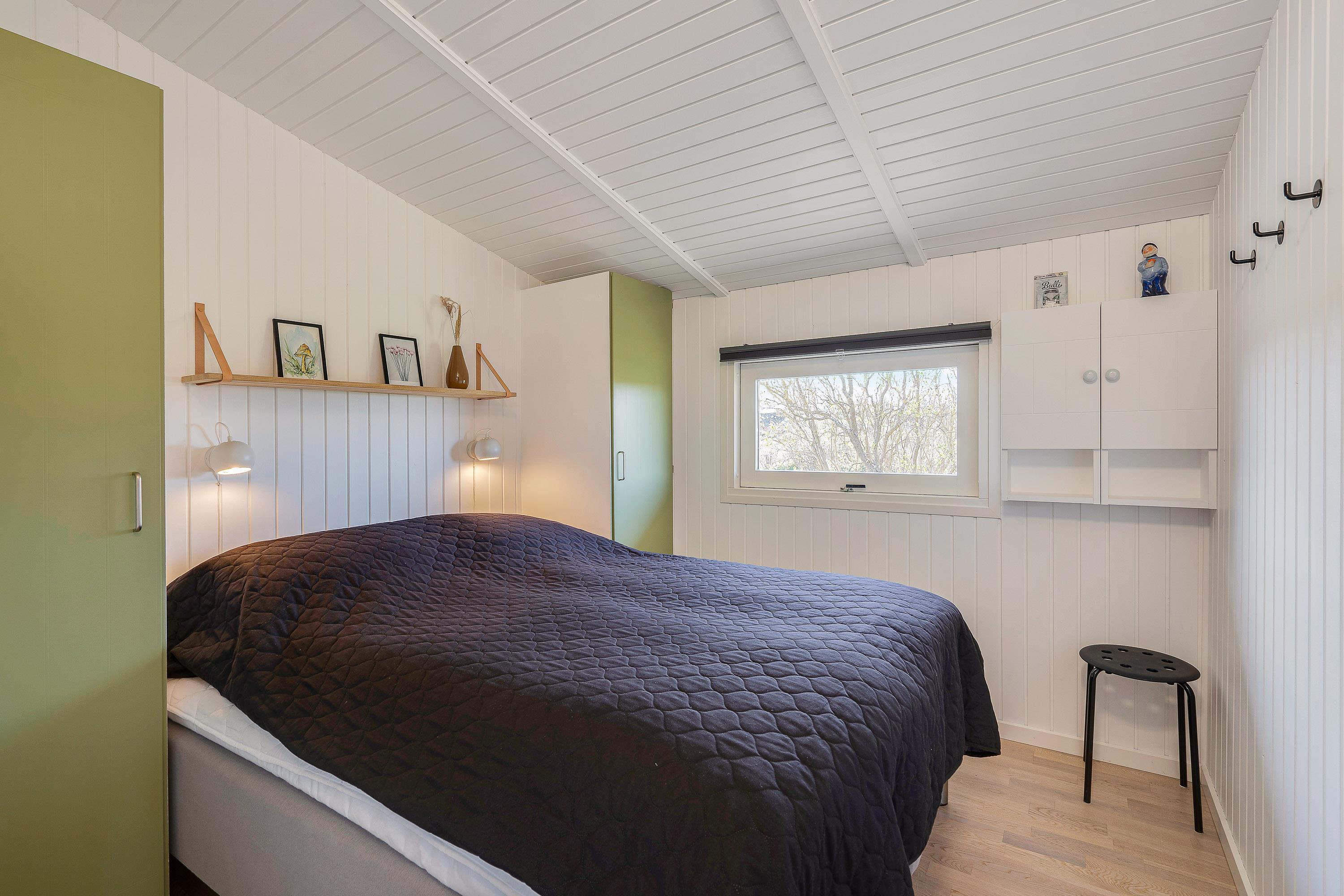 Det 81 kvadratmeter store sommerhus byder på 2 skønne soveværelser, der er indrettet med henholdsvis 1 dobbeltseng og 2 enkeltsenge. Desuden er der i feriehuset 1 badeværelse med gulvvarme, så ingen af jer skal fryse fødderne fra morgenstunden.