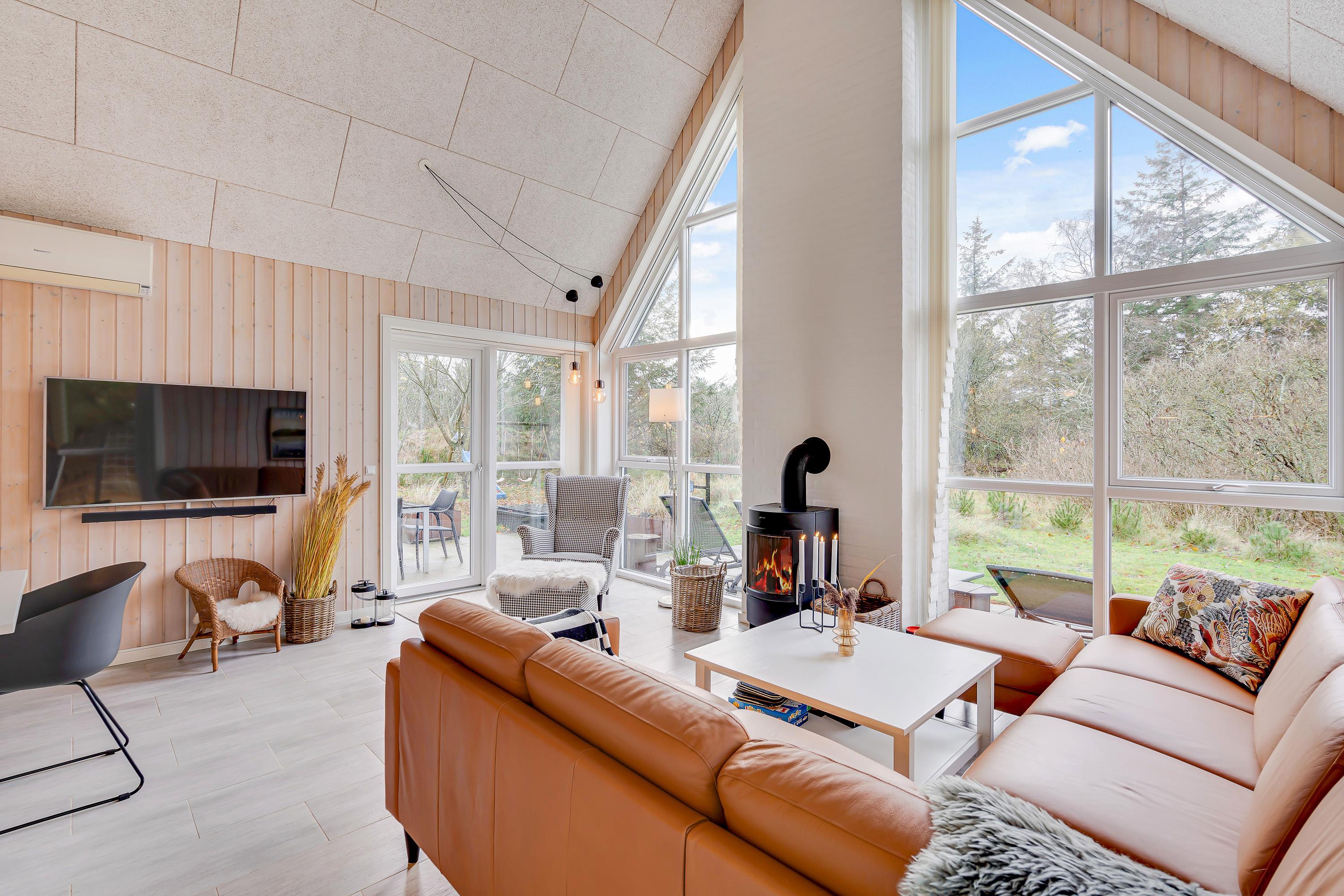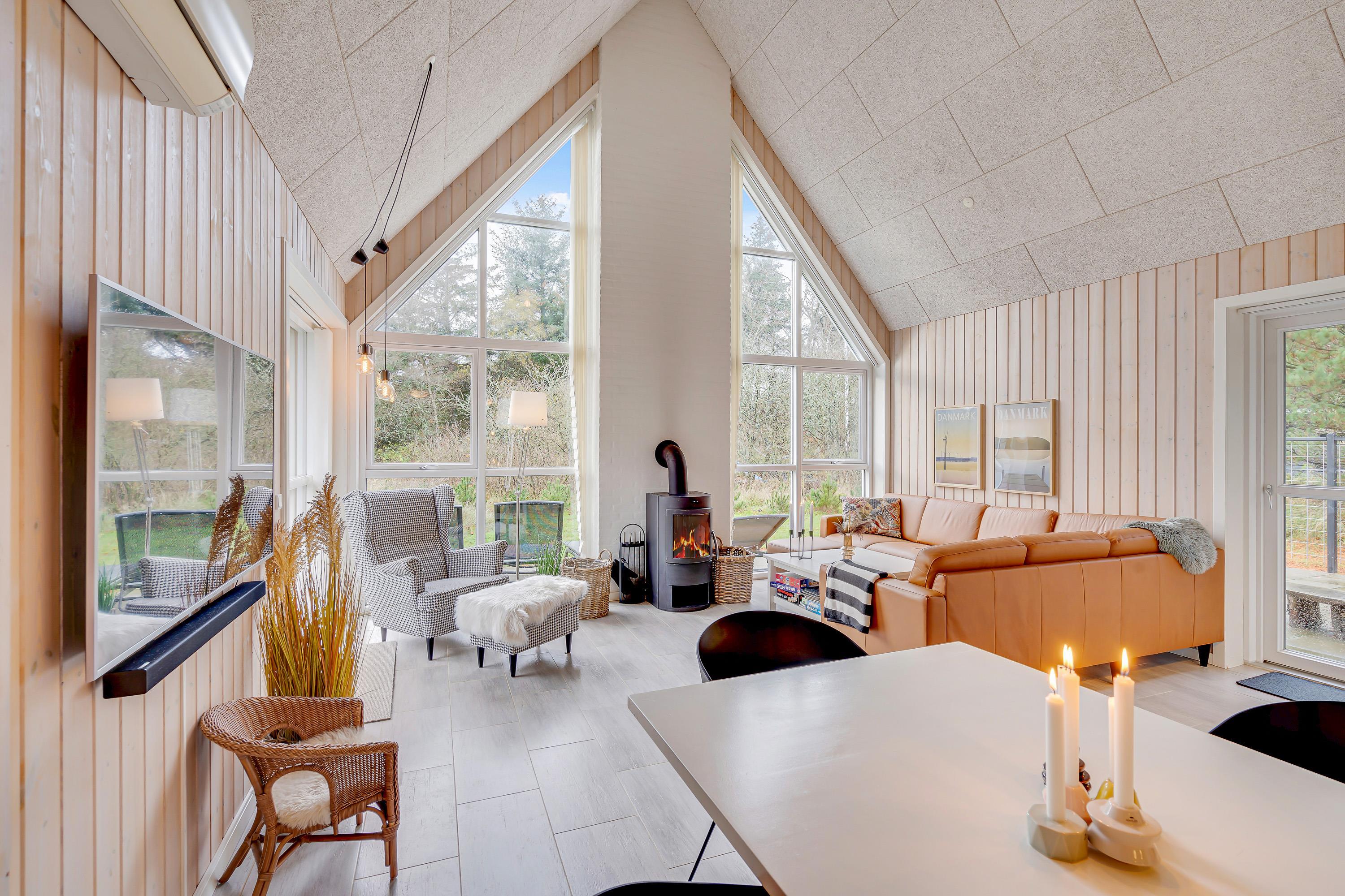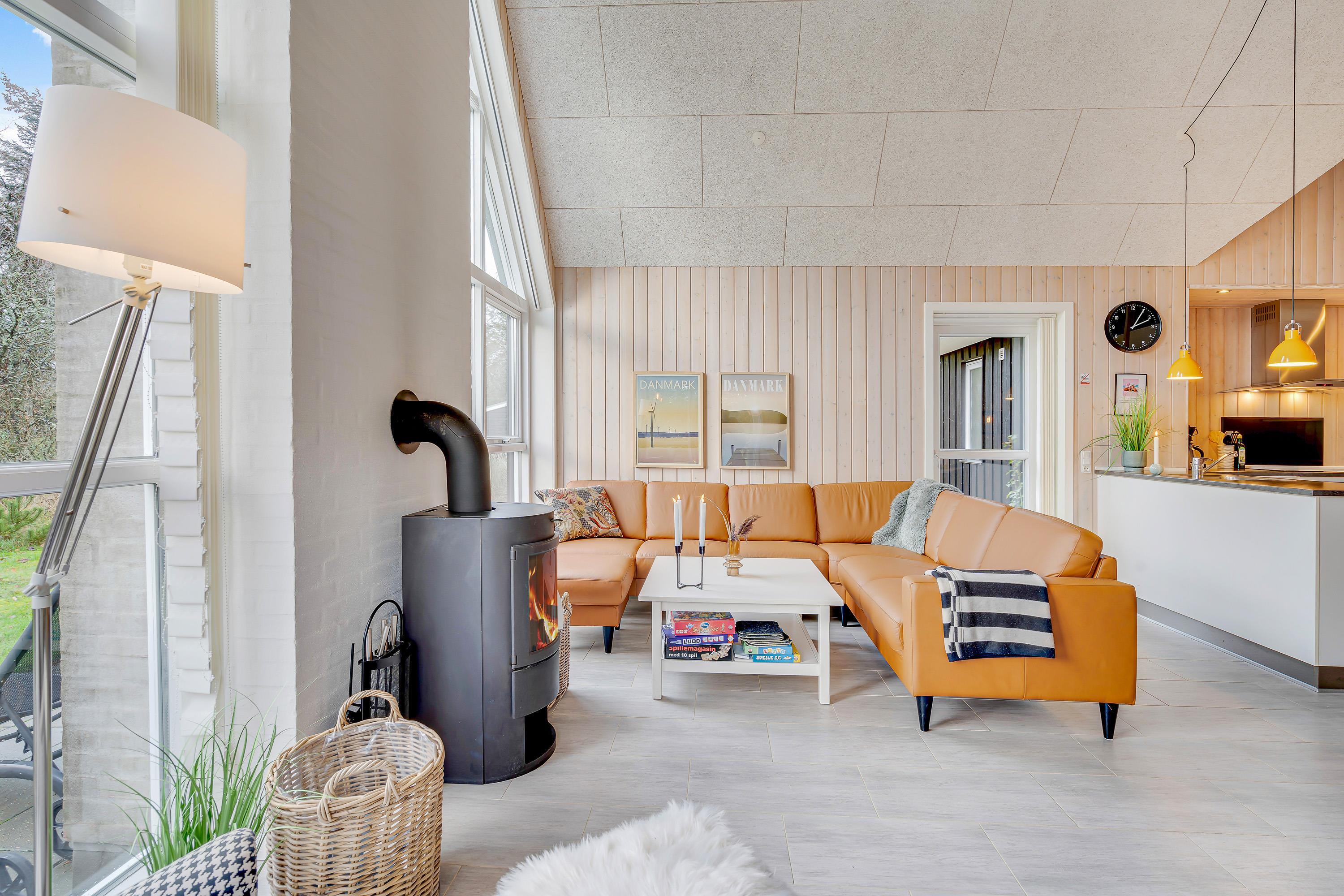 De 150 kvadratmeter byder på masser af skønne feriehighlights. I stuen står den klassiske brændeovn, og på første sal er der tilmed en ekstra lille stue, hvor I kan trække jer tilbage med en god bog eller et slag bordfordbold. Det største af feriehusets 2 badeværelser er indrettet med sauna og spabad, og wellness er i det hele taget et nøgleord i den indbydende indretning.