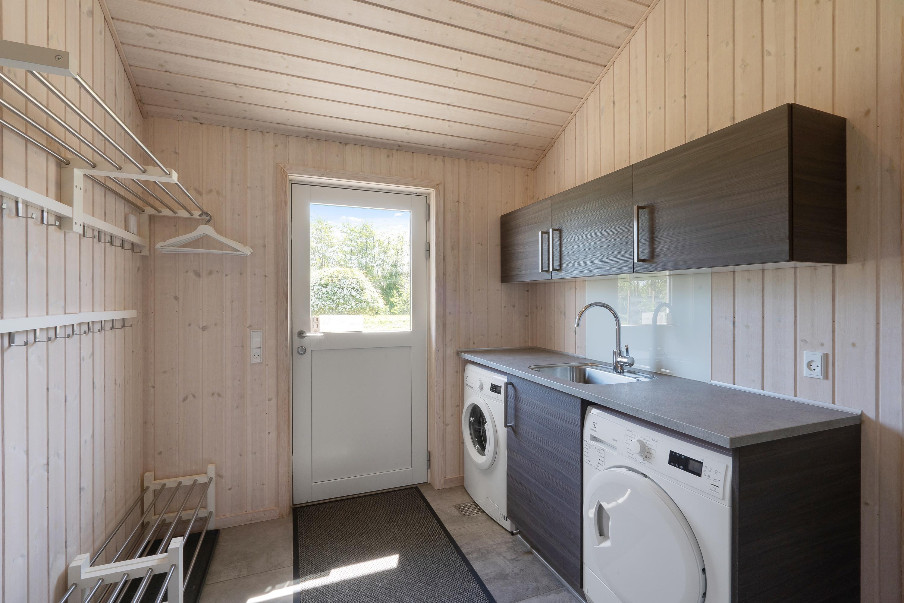 I sommerhuset står flere praktiske faciliteter til rådighed for jer. Opvaskemaskine, vaskemaskine og tørretumbler hjælper jer med det praktiske husarbejde på ferien. Sommerhuset opvarmes med jordvarme, og I kan nyde godt af gulvvarme i hele feriehuset.