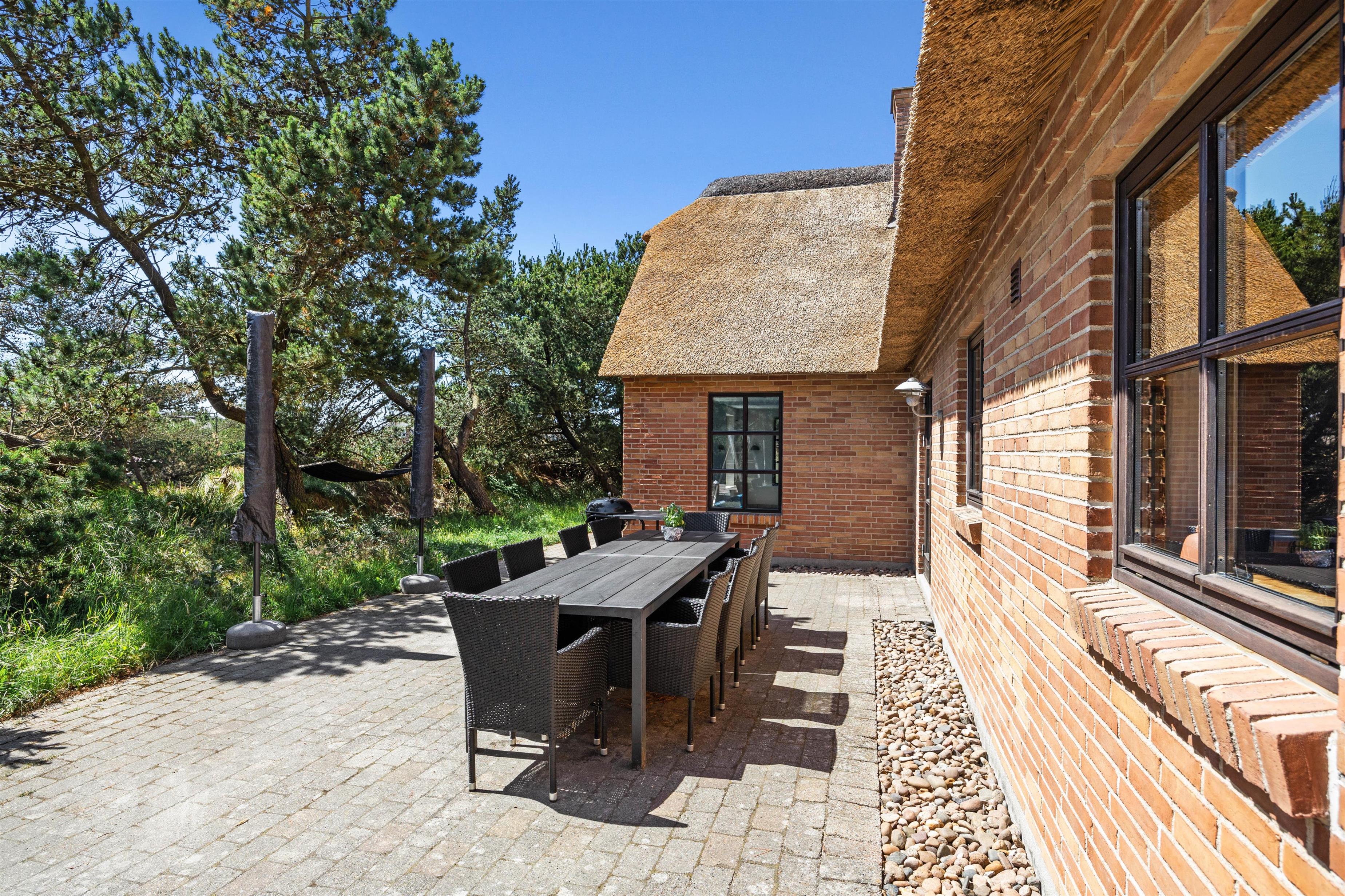 På en skøn og ugeneret naturgrund i Blåvand ligger dette i 2021 nyrenoverede stråtækte sommerhus, der rummer plads til helt op til 10 personer. Hold en dejlig familieferie i det vestjyske med både swimmingpool, spabad, sauna og vildmarksbad på terrassen. Fra huset er der kun 400 meter til stranden og 800 meter til Blåvand centrum!