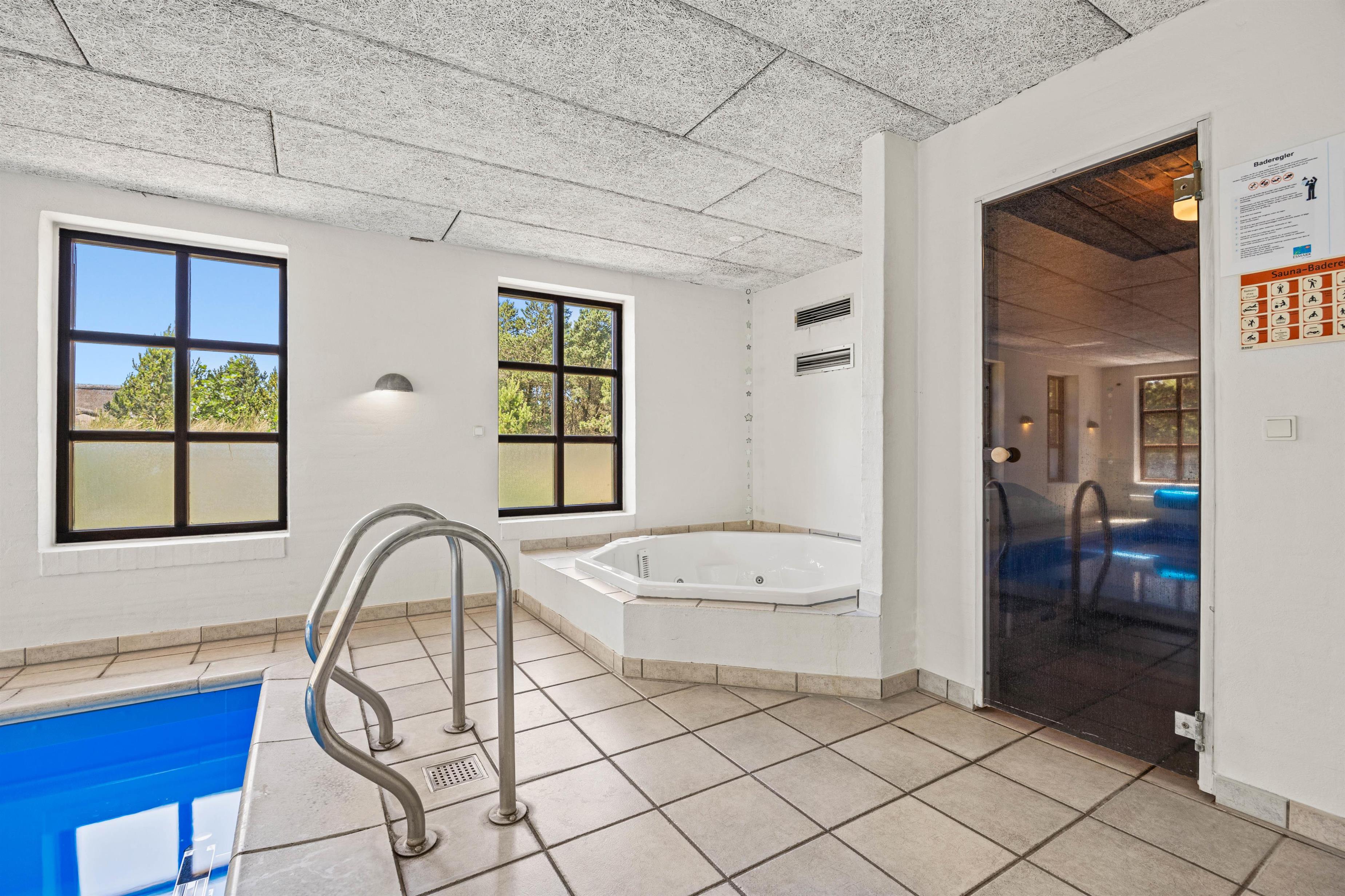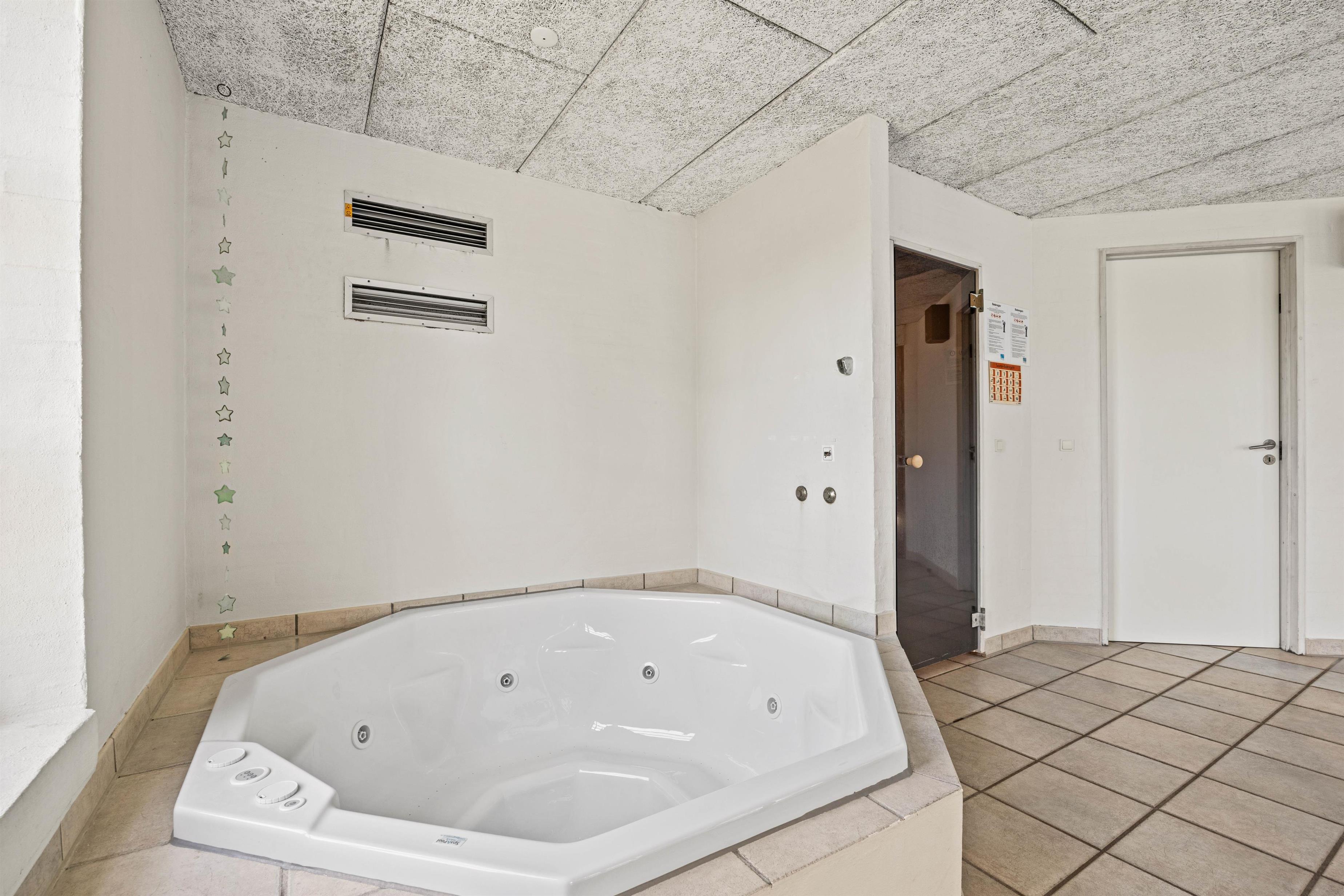 Et af husets highlights er uden tvivl poolrummet, hvor I ud over den 19 kvadratmeter store swimmingpool også finder spabadet og husets sauna. I kan altså nemt holde øje med børnene fra det boblende spabad, mens de plasker rundt i poolen.