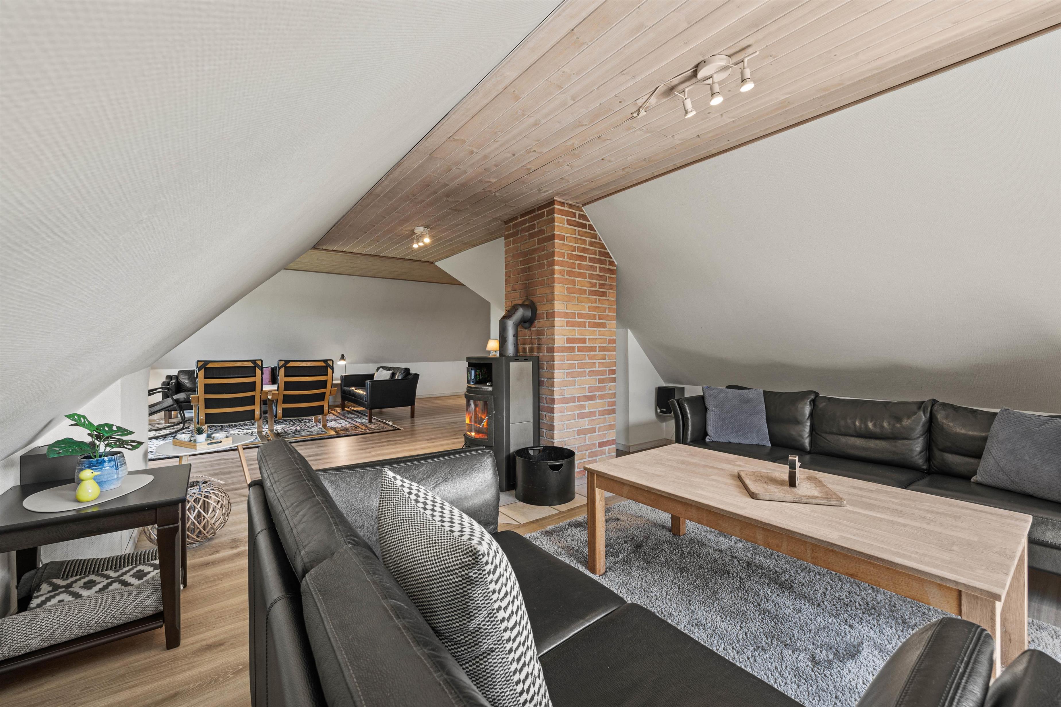 Husets varmekilder er en sparsom Varmepumpe og en Brændeovn til hyggelige aftentimer i sofaen. I Køkkenalrummet er der gulvvarme installeret.