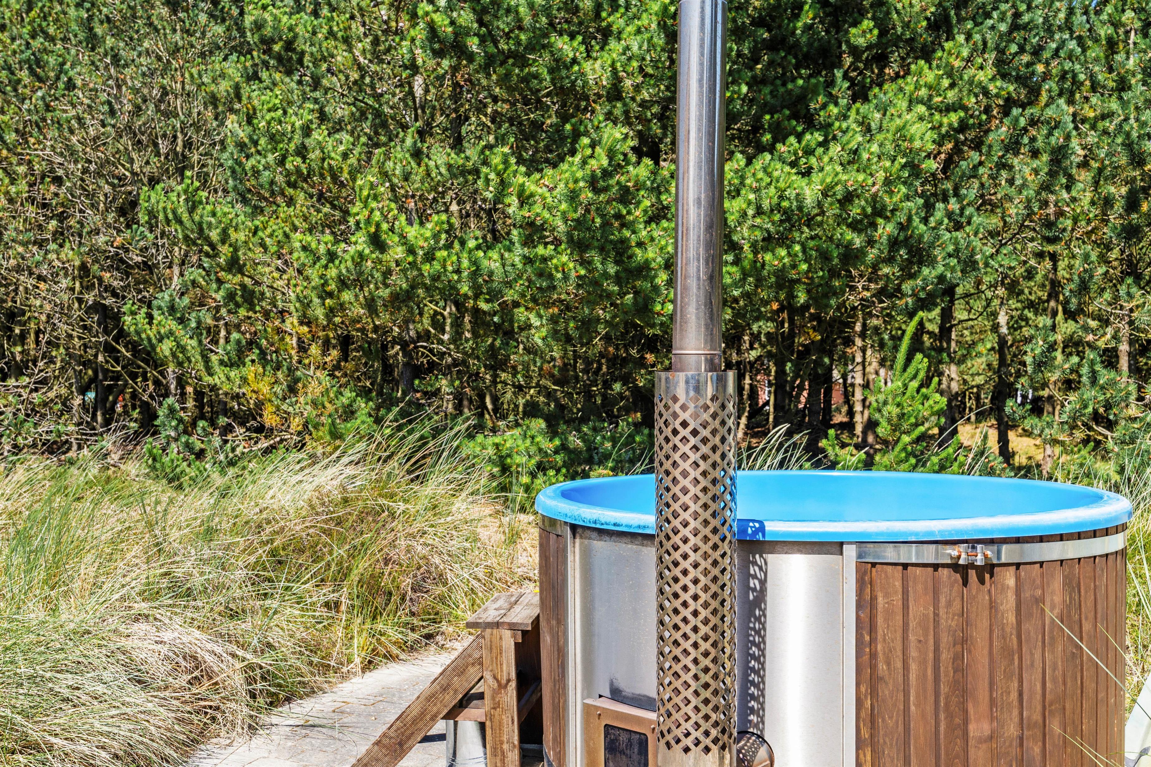 Udenfor finder I også endnu et af husets lækre highlights - her står nemlig vildmarksbadet. I kan altså både gå i boblebad indenfor og udenfor, under åben himmel.