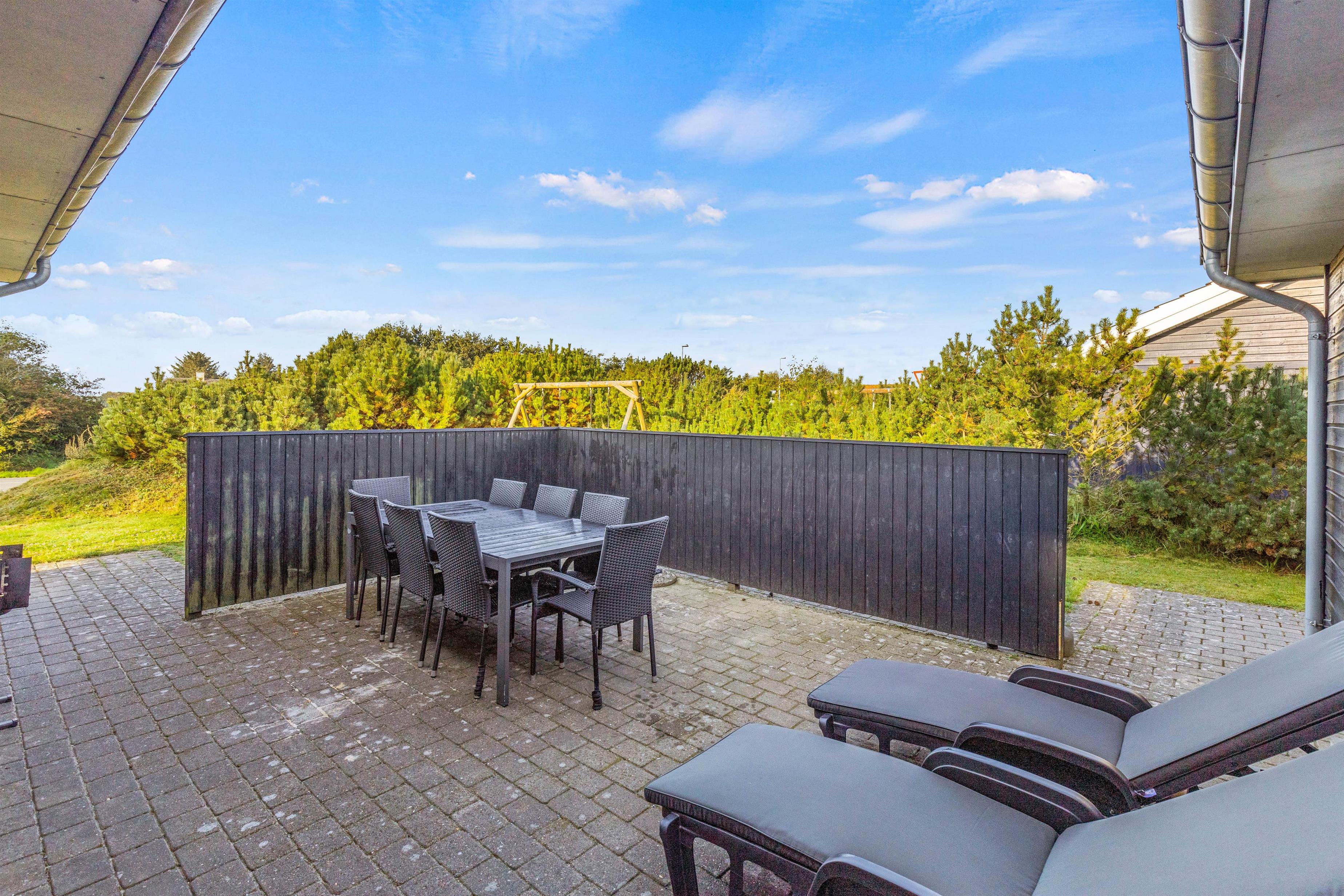 Feriehuset har en dejlig terrasse og en skøn have, I kan rykke ud i på de varme solskinsdage. Terrassen er afskærmet, så her kan I uden problemer sidde, selv hvis vinden skulle blæse. På terrassen kan I samles om aftenen til en god middag på grillen.