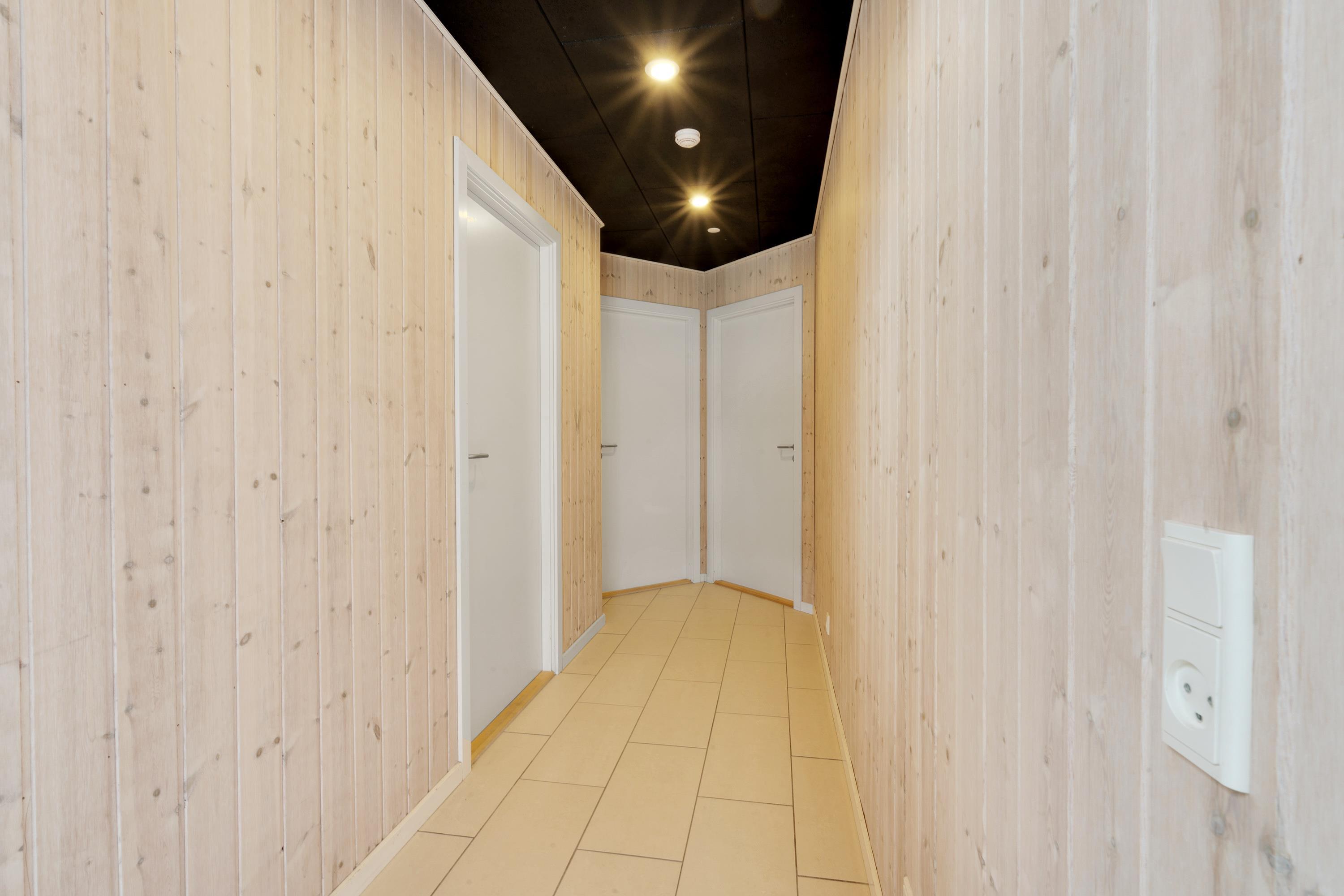I kan også slappe af foran fjernsynet i opholdsrummet, hvor køkken, stue og spiseafdeling er samlet. Det store rum med højt til loftet er perfekt til enhver hyggelig stund med film, spil og god mad. Den hyggelige brændeovn sørger for, at stemningen er i top.