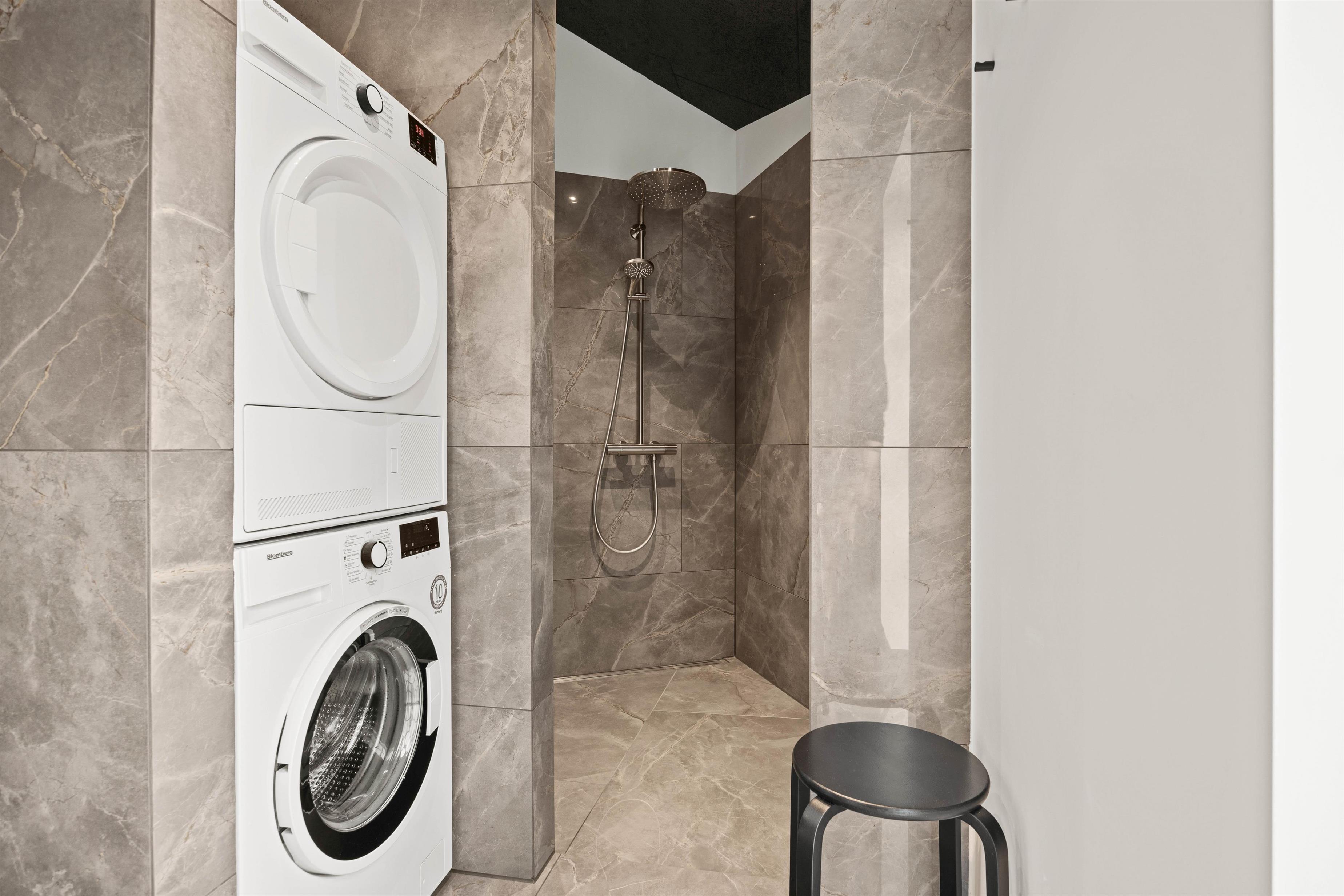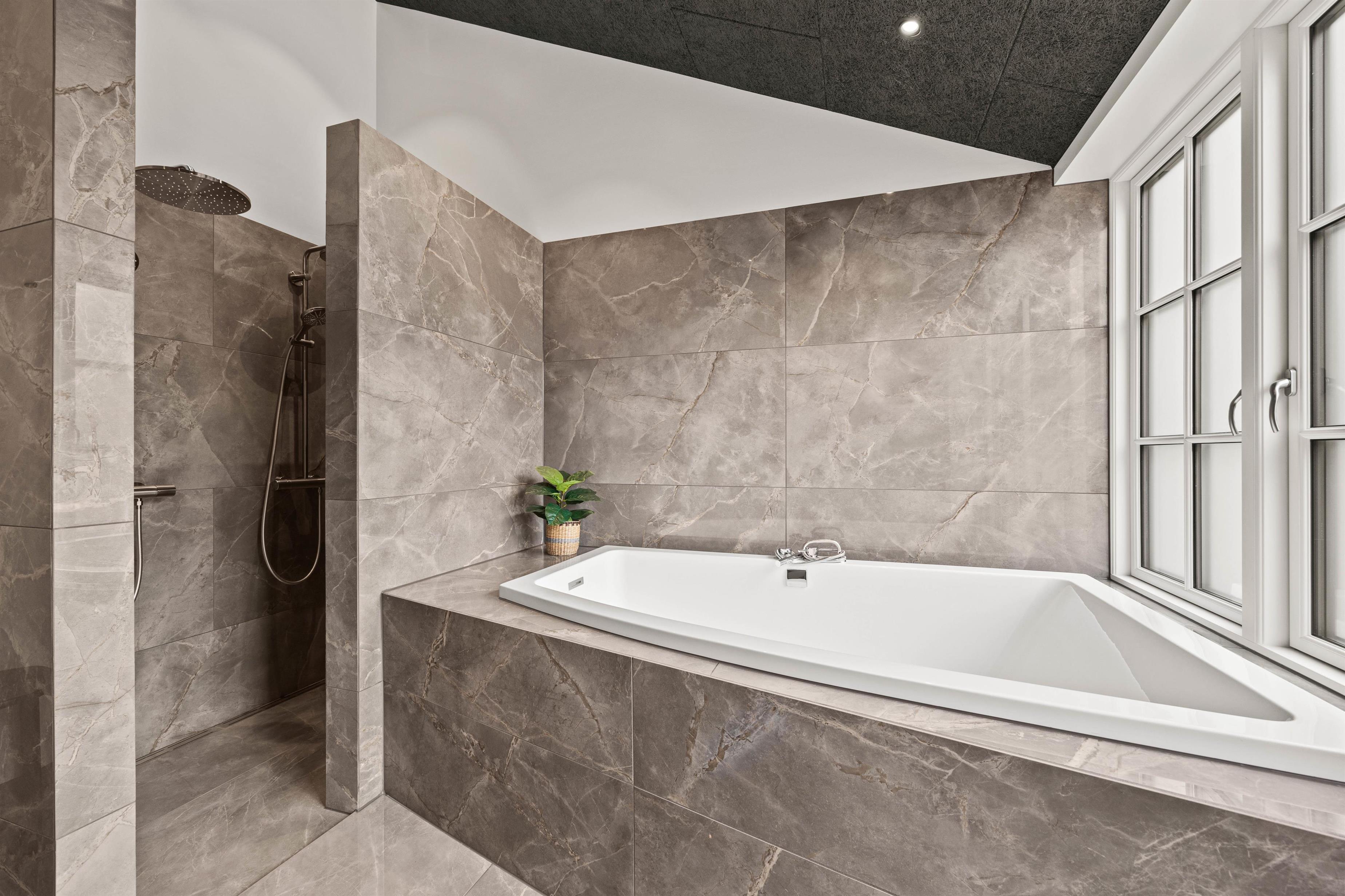Soveværelserne og opholdsstuen har trægulve med gulvvarme. De to badeværelser er fuldt udstyrede og er ligesom alle de andre rum indrettet med materialer af høj kvalitet. Der står også et badekar til jeres rådighed.
