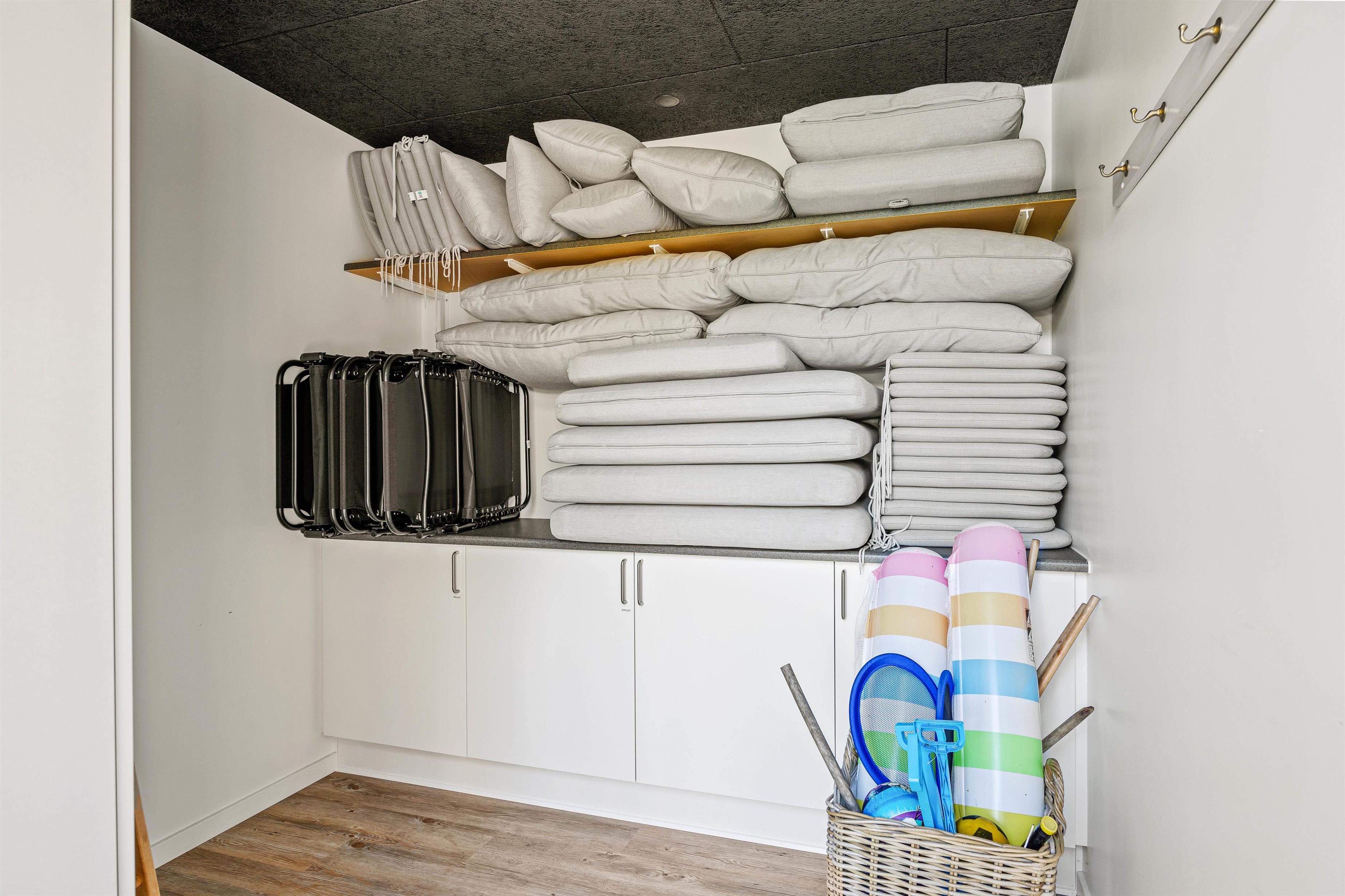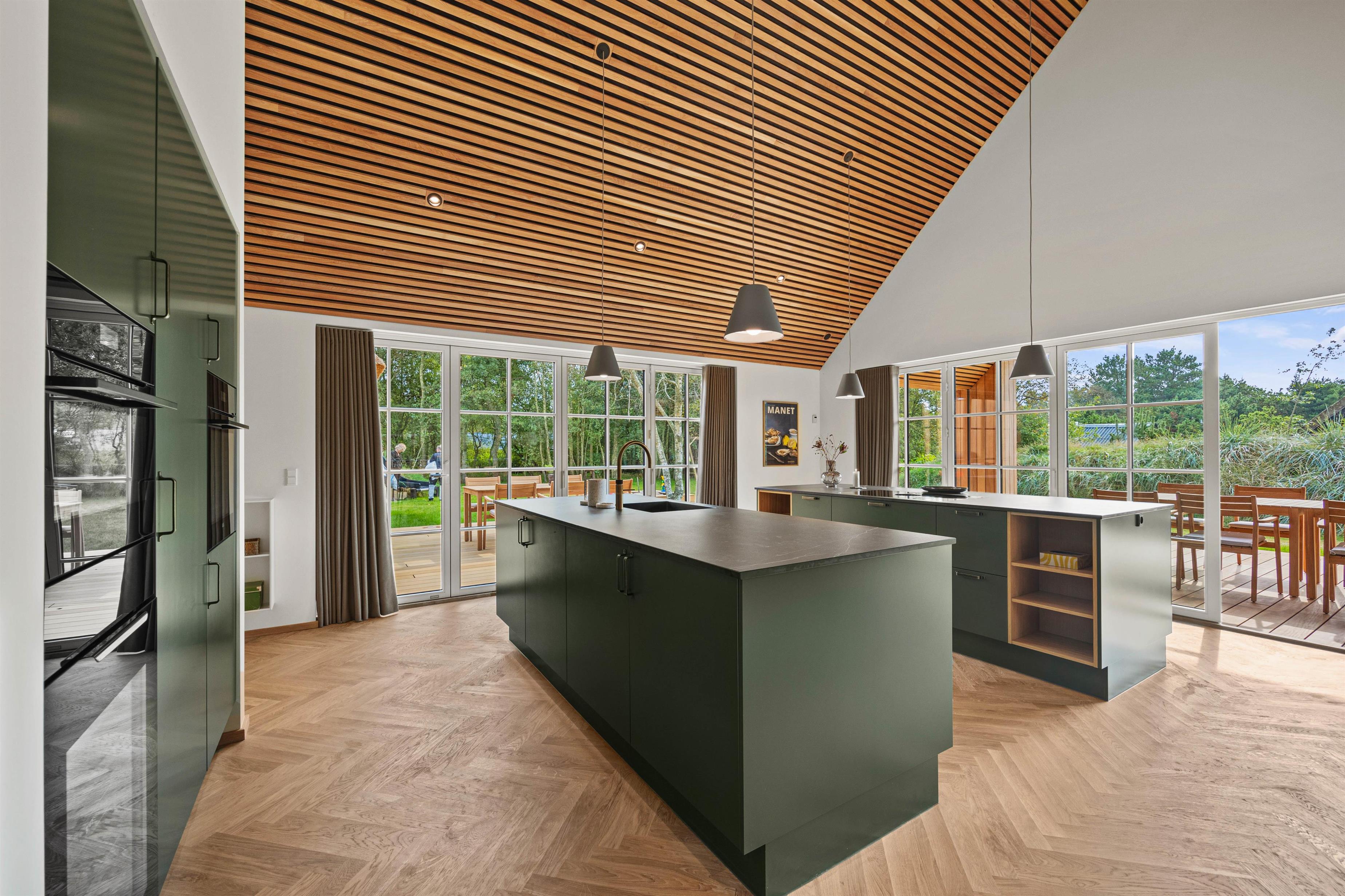 I køkkenet bliver madlavningen en begivenhed. Hvem vil ikke gerne være kok i et helt nyt køkken af høj kvalitetm, hvor der både er indstalleret Quooker og mulighed for at tappe danskvand? Mens du svinger træskeen, kan de andre byde på en aperitif og dække bord til middagen. Det store spisekøkken fører ind til opholdsstuen, hvor man kan slænge sig i sofaen til den hyggelige del af dagen. Nyd den frie udsigt over naturen og send hverdagens stress på en lang rejse.