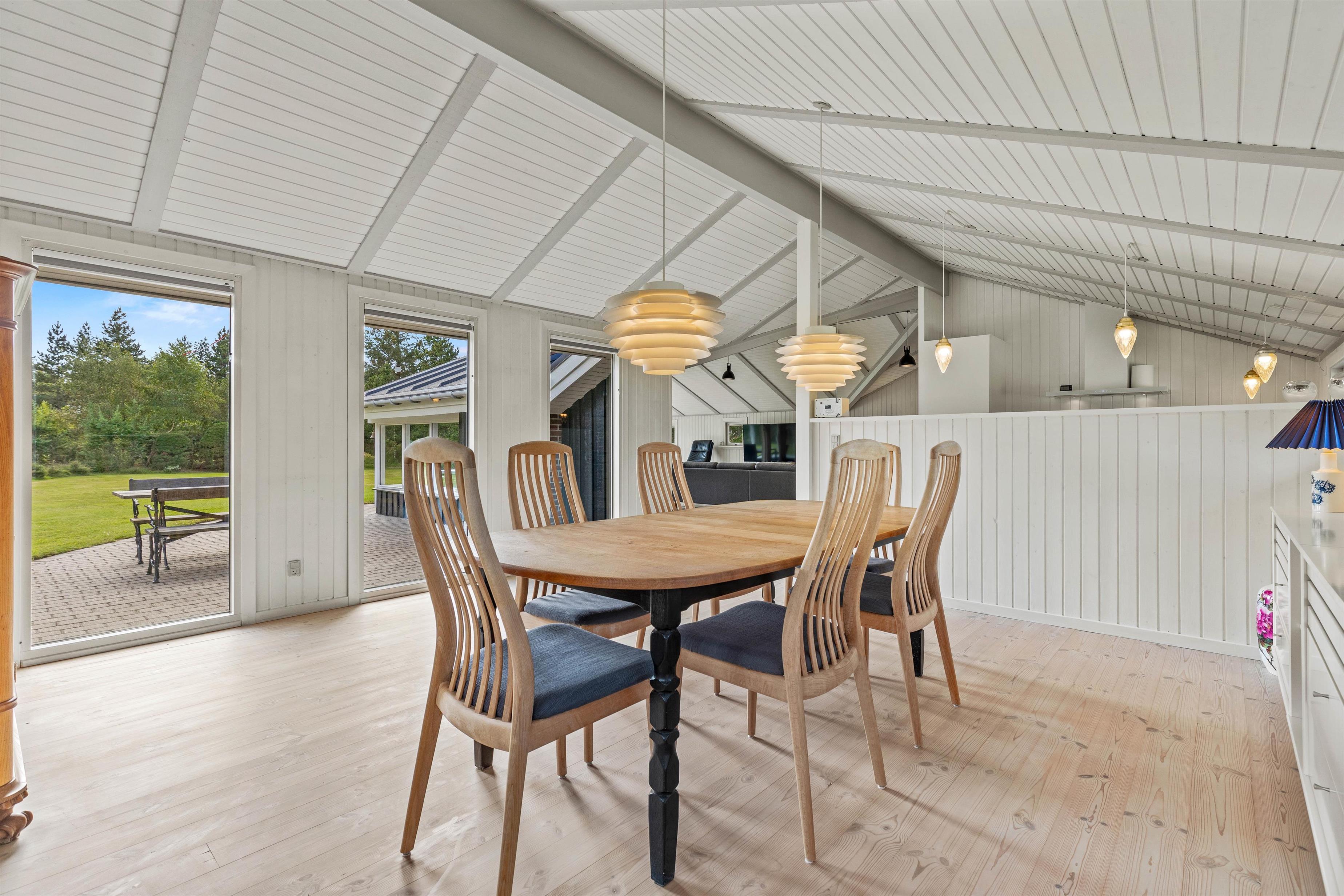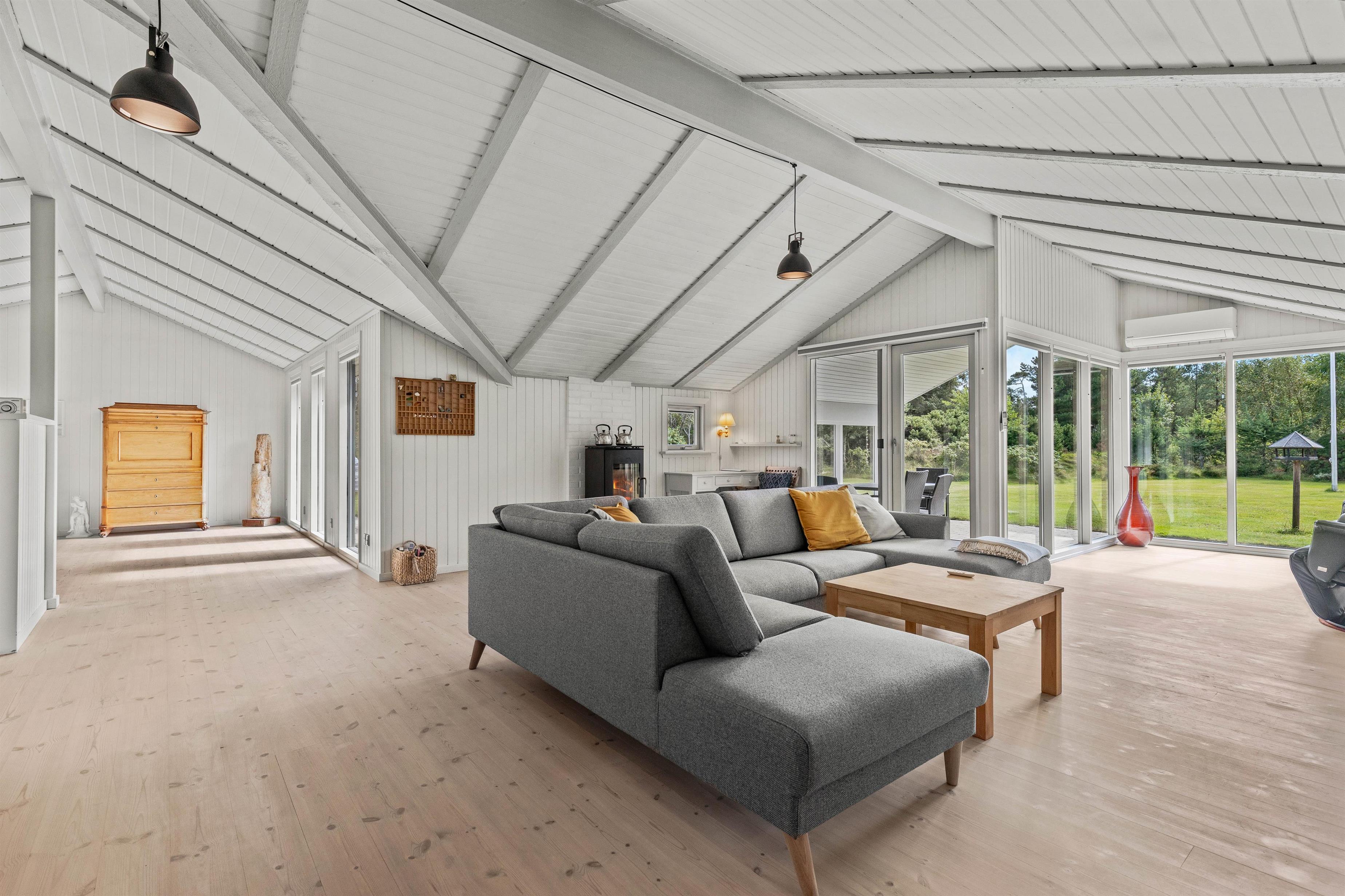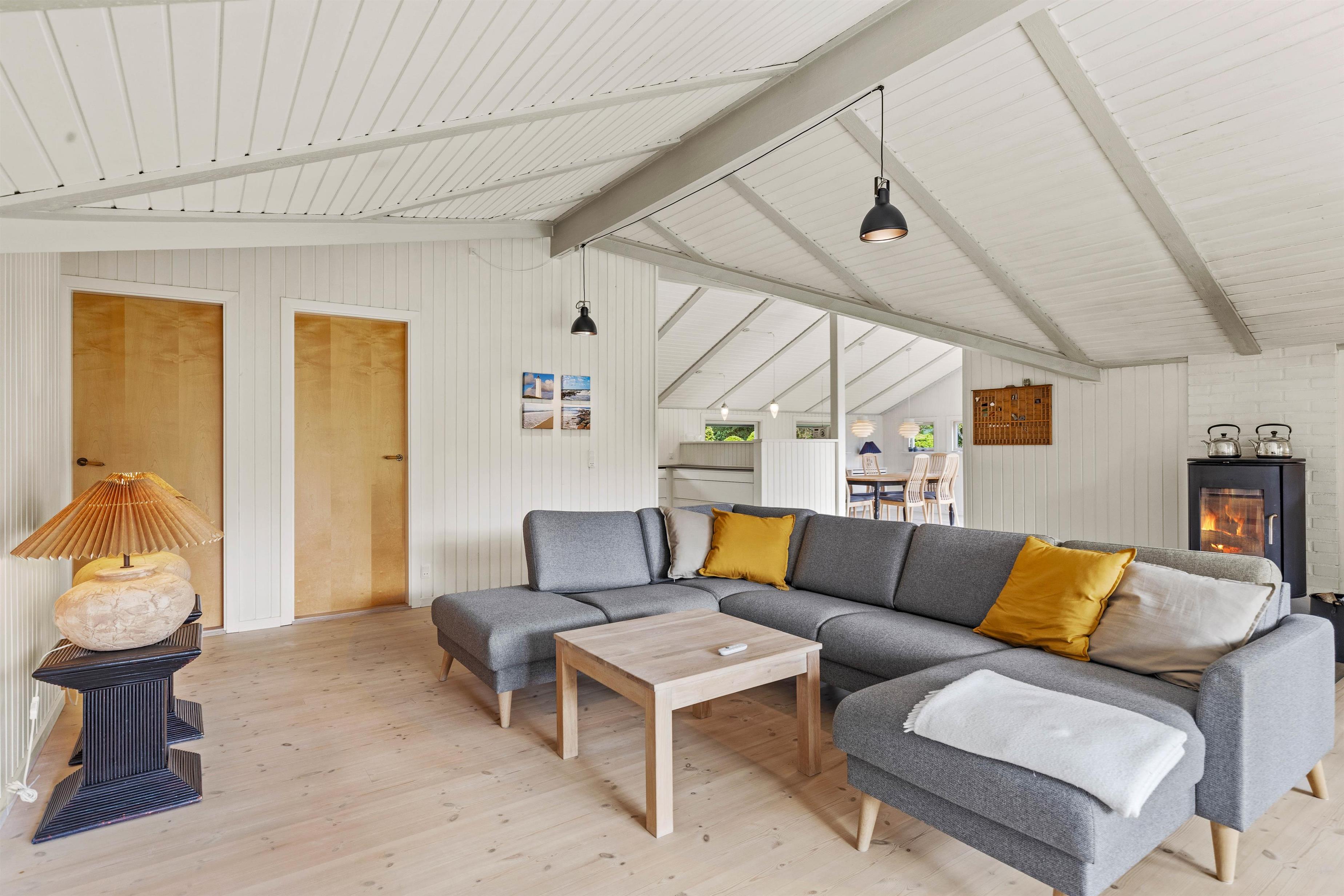 Terrassen ved sommerhuset har både en afskærmet og en overdækket del, så her kan I ugenert rykke rundt efter solens placering. Tag solbad i liggestolene eller træk jer tilbage i de komfortable havemøbler med en kølig drink. I kan udfordre børnene til et spil Viking på plænegrunden i løbet af dagen.