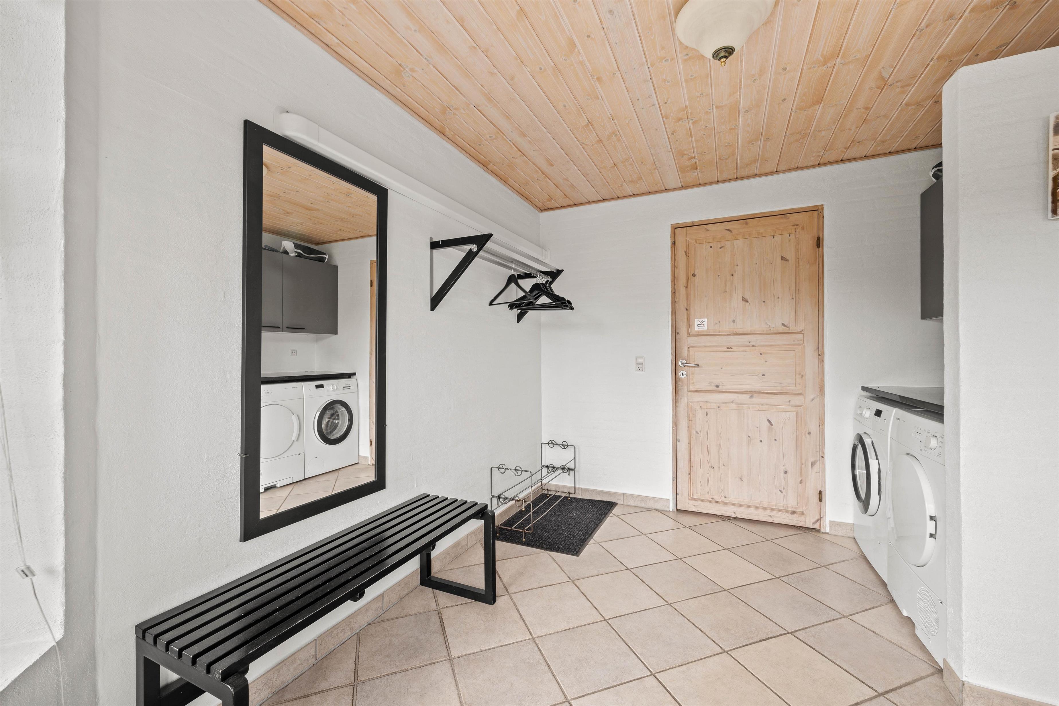 Straks I træder ind i det charmerende feriehus, vil I føle jer godt tilpasse og mærke den hyggelige feriestemning. Hvert enkelt rum er indbydende indrettet med komfort i tankerne, og ved spisepladsen i køkkenet kan I tænde op i brændeovnen. Den spreder ikke blot god varme til rummet, men sætter også prikken over i'et til feriestemningen. Køkkenet er indrettet med udstyr som opvaskemaskine, mikroovn, induktionskogeplade, ovn og stort indbygget køleskab. Der er desuden et ekstra kølefryseskab i depotrummet.