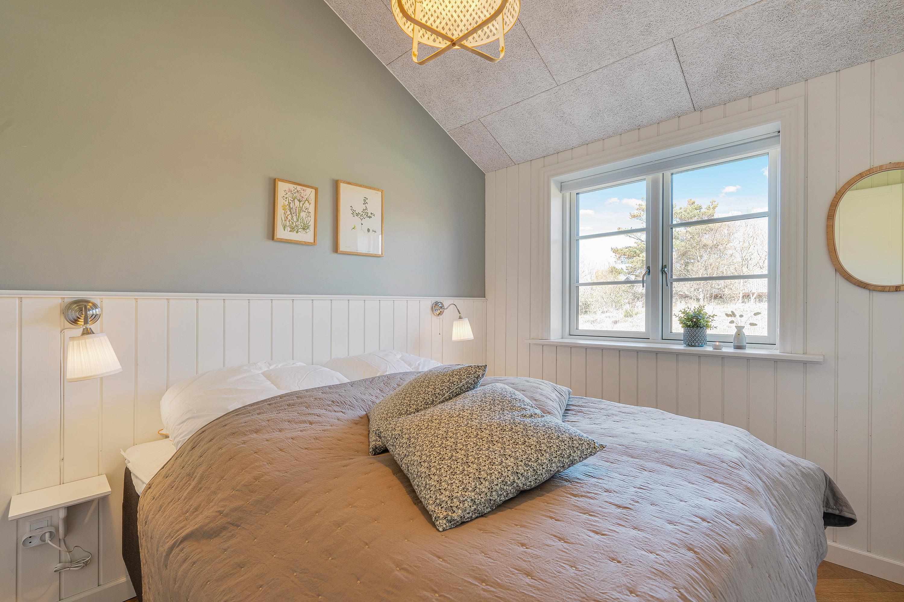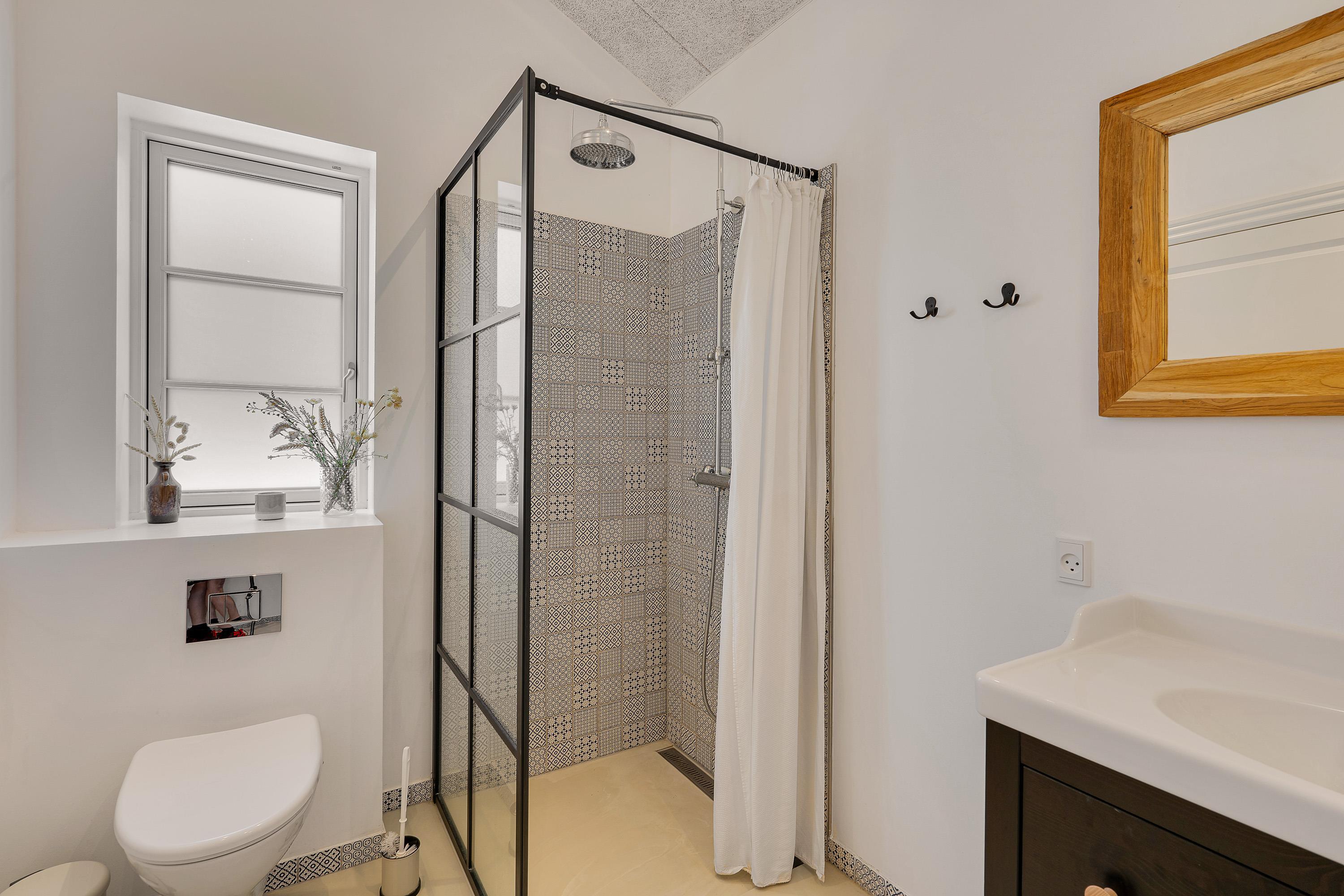 Rent praktisk rummer feriehuset 6 soveværelser med dobbeltsenge og 3 badeværelser – hvoraf et er med puslebord og badekar, så I til hver en tid slipper for kø om morgenen. Tøjvask er også hurtigt klaret med en kombineret vaskemaskine og tørretumbler. Samtidig er sommerhuset også energibesparende, da der er gulvvarme i alle rum.