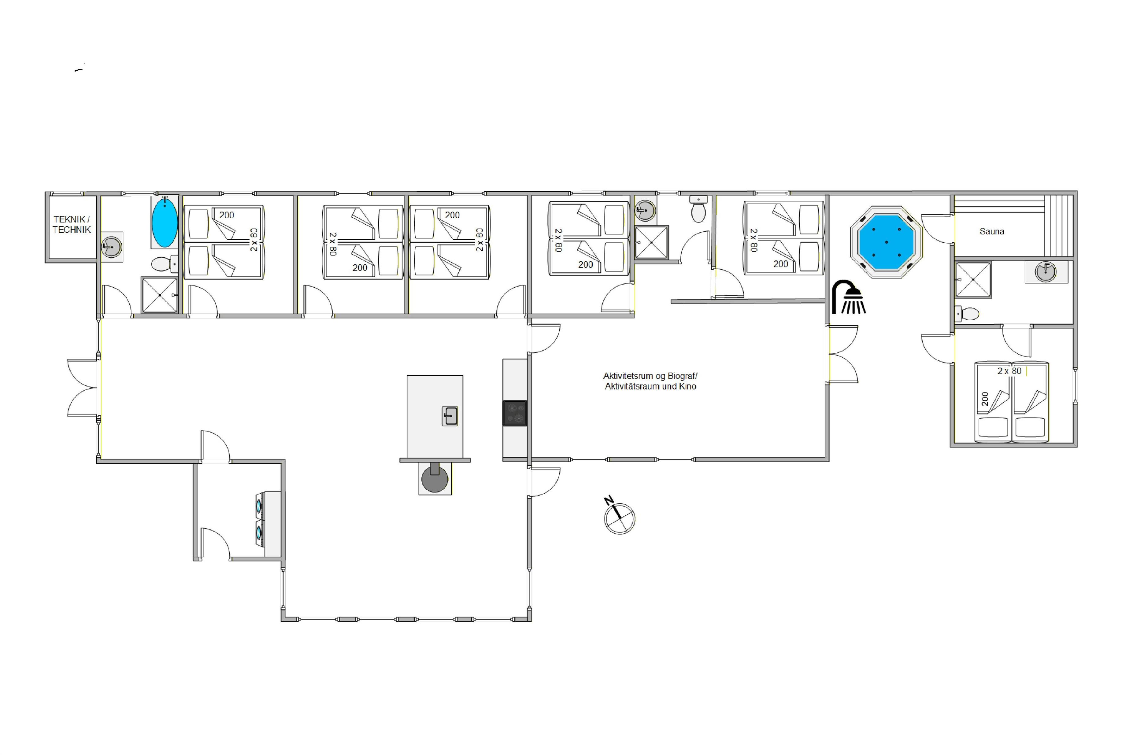 Her får I en absolut perle af et aktivitetshus, der byder på alt, hvad feriehjertet måtte begære. Dette unikke 5-stjernede aktivitetshus er opført i 2020 og har plads til op til 12 personer. Her kan I nyde jeres ferie med familien eller måske samle en flok venner. Feriehuset har 6 soveværelser med dobbeltsenge og hele 3 rummelige badeværelser. Biograf, udesauna og udespa er blot nogle nævneværdige highlights – og har I elbil, kan I lade direkte ved feriehuset