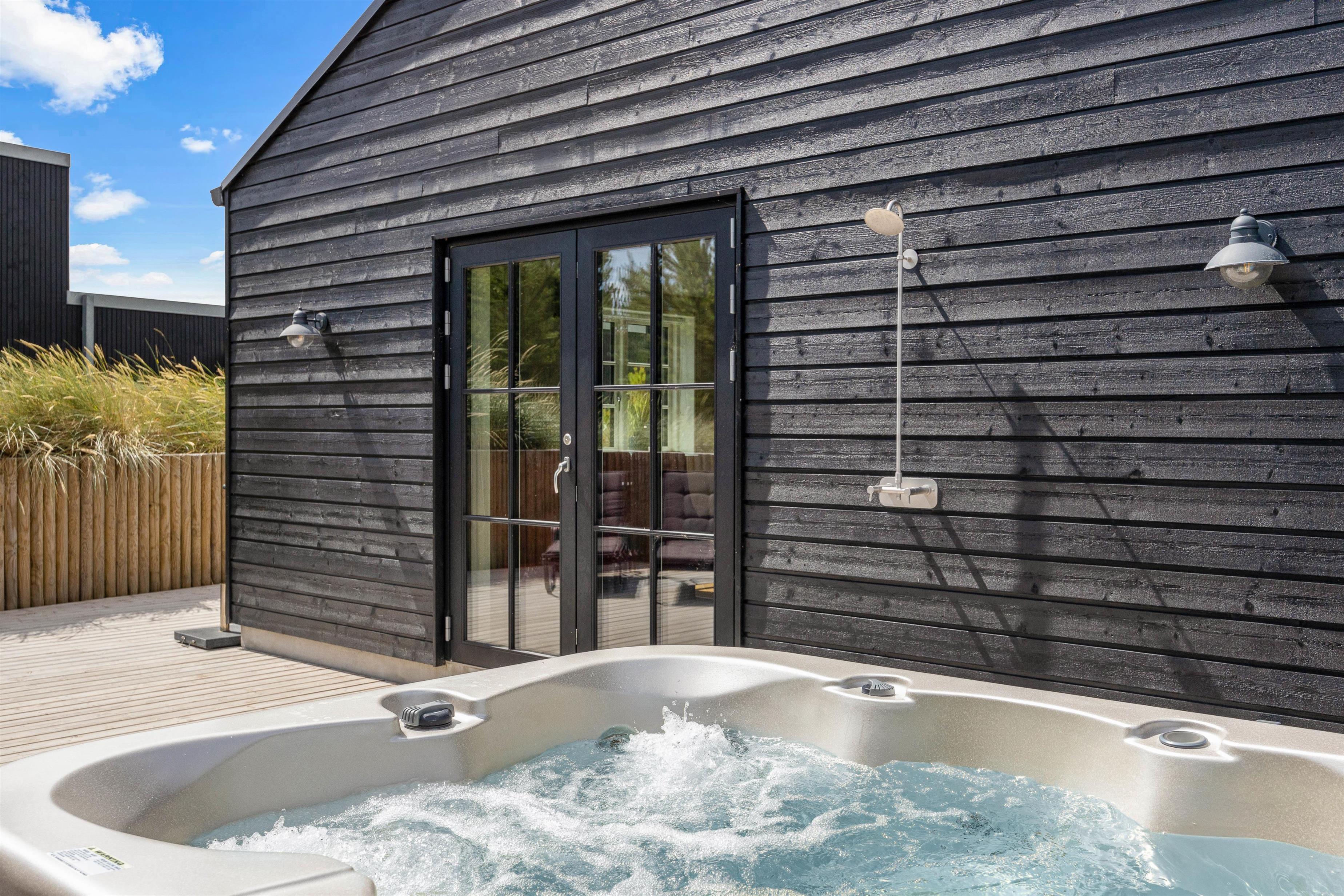 Terrassen mod øst rummer wellnessmuligheder i form af udespa, udebruser samt udesauna. Her kan I med fordel læne jer tilbage i udespaen under stjernerne og nyde et koldt glas bobler. Efter en dag med aktiviteter står udesaunaen klar til at varme musklerne igennem, så I er klar til endnu en dag. Ren afslapning for krop og sjæl uanset vejr eller årstid. Bemærk, at udebruseren kun kan benyttes fra 1. april til 31. oktober.