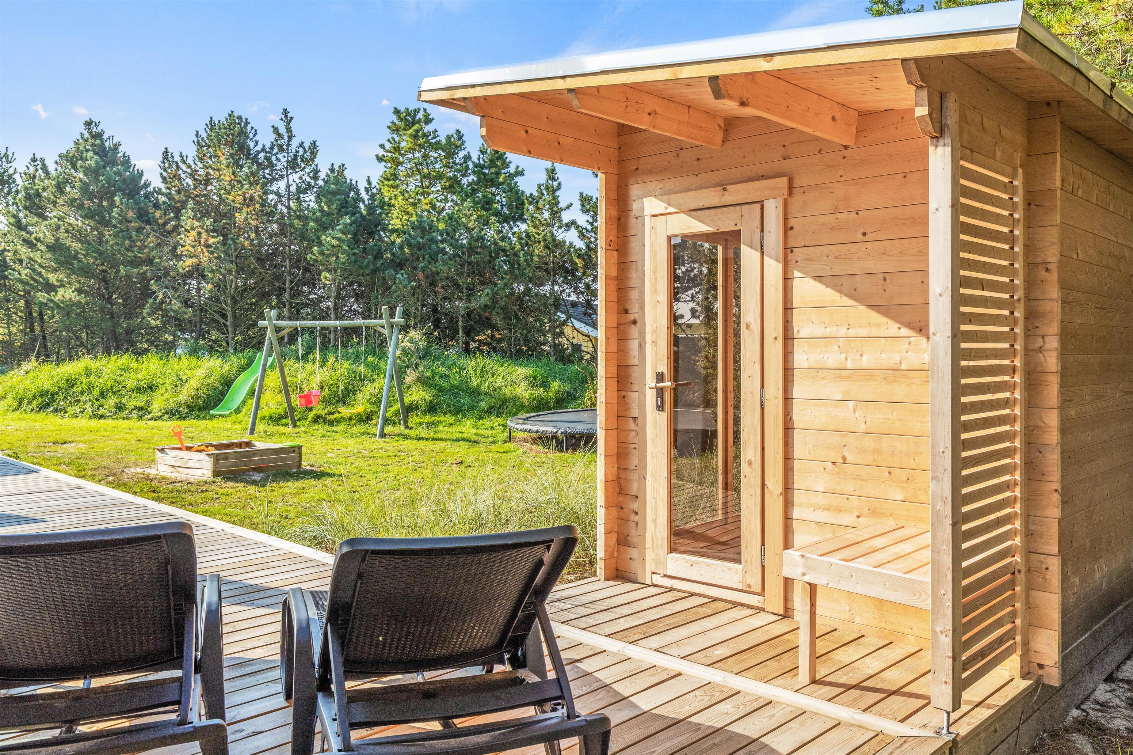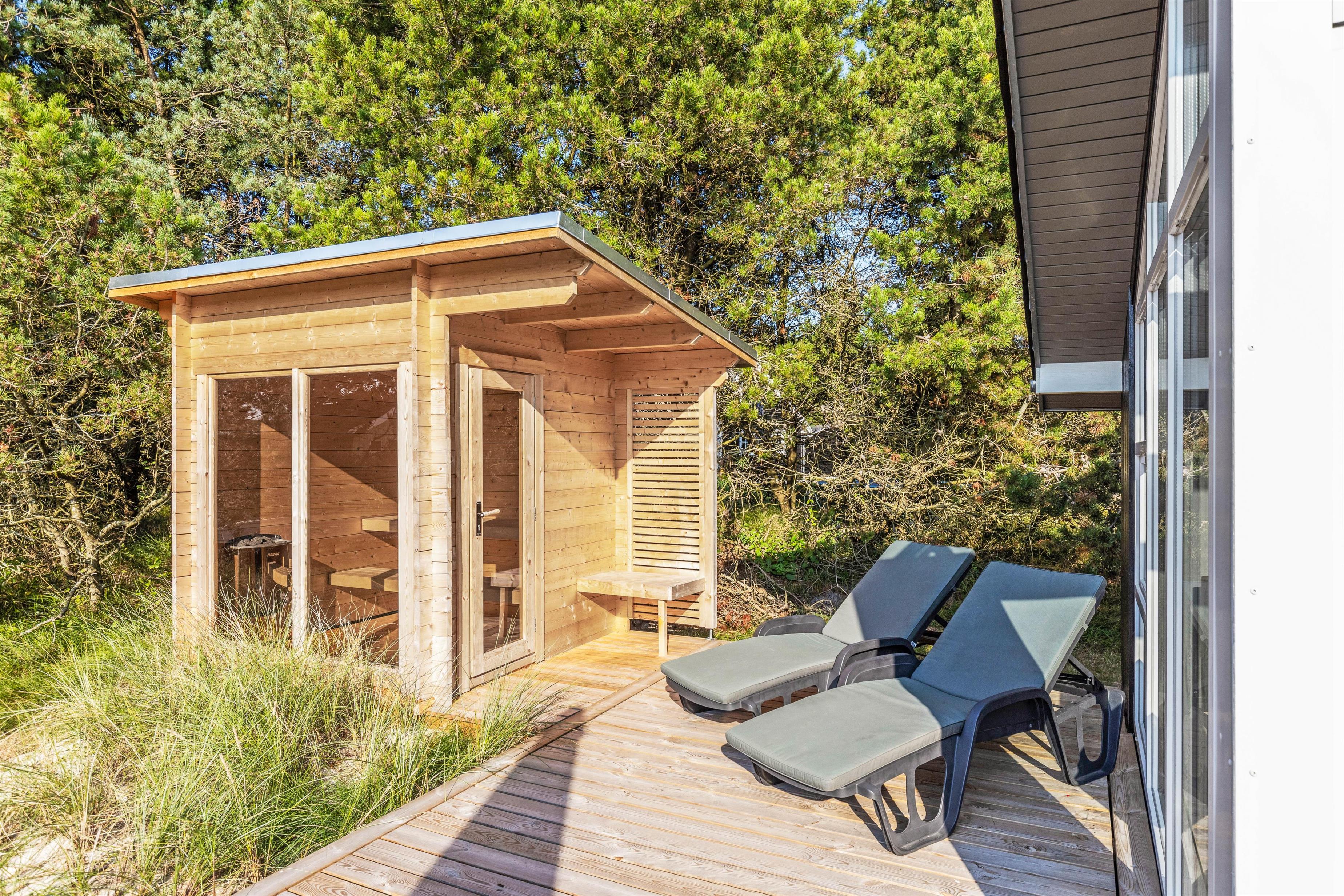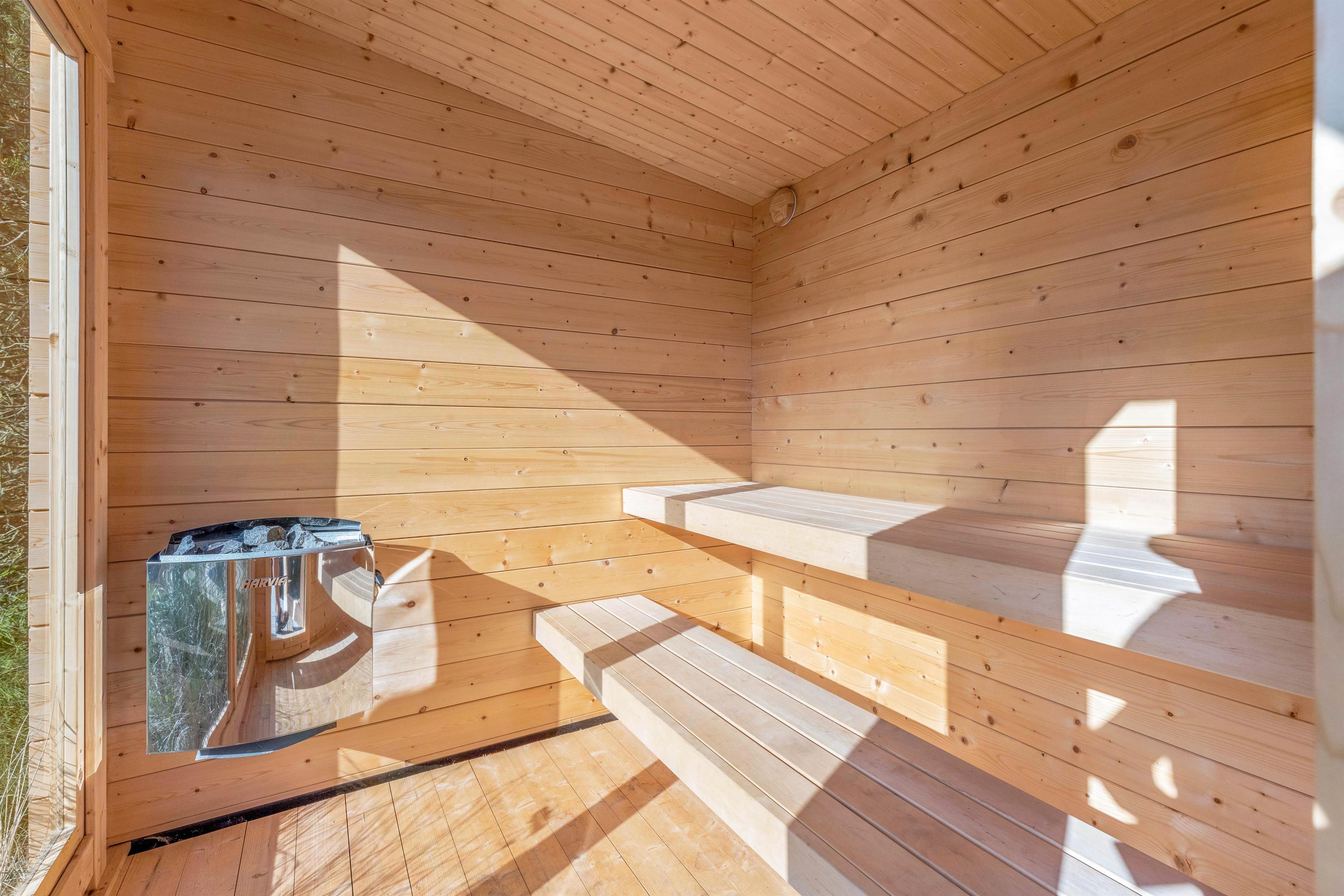 Som prikken over i’et er der her også både udesauna og udespa. Sæt jer til rette i det varme vand under åben himmel, og nyd et glas vin under stjernernes funklende skær – efterfuldt af en tur i saunaen, hvor jeres muskler rigtigt kan blive varmet igennem. Her kan I hurtigt mærke, hvordan hverdagens strabadser smelter bort, og ferieroen sænker sig. Det er ferie der vil noget!