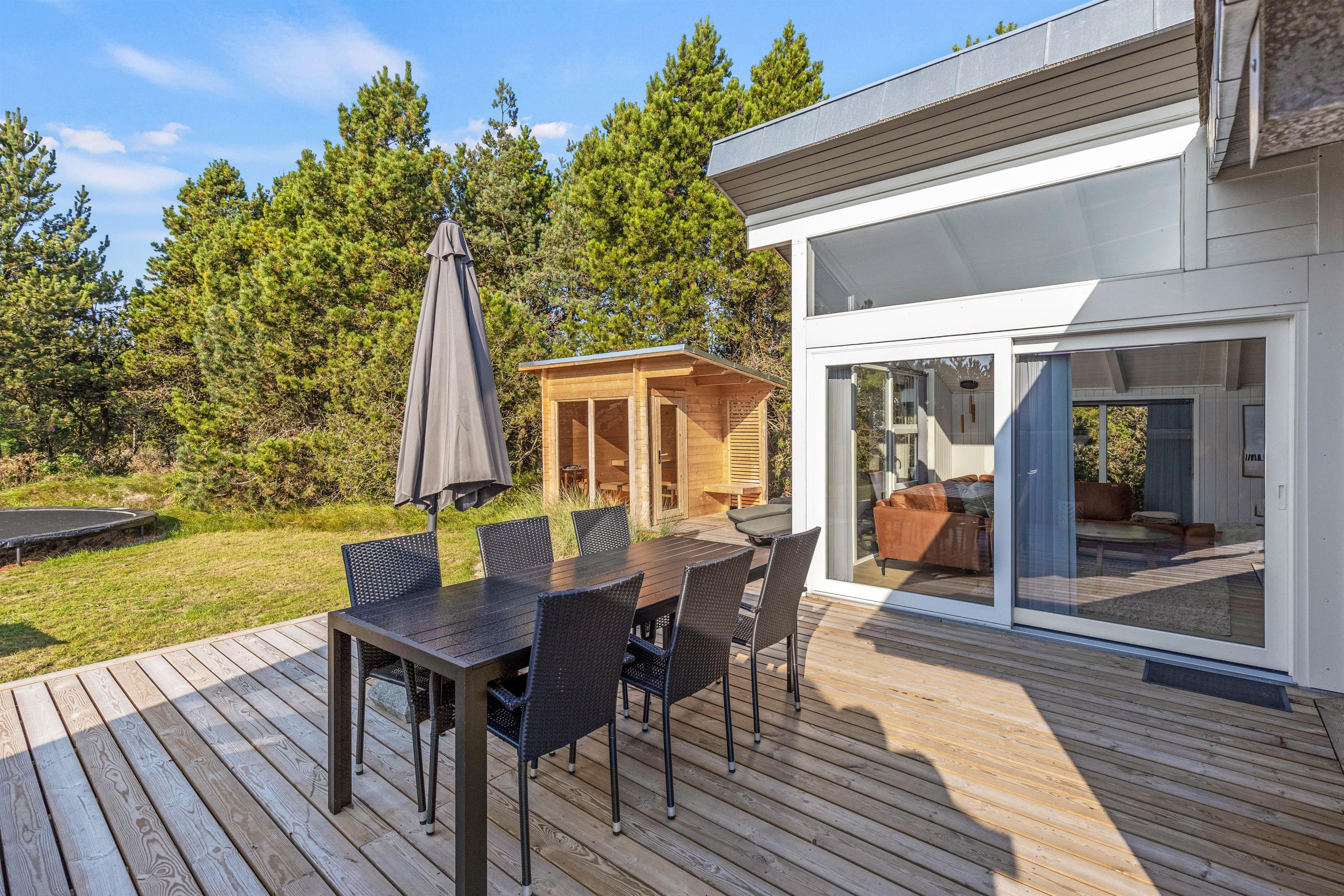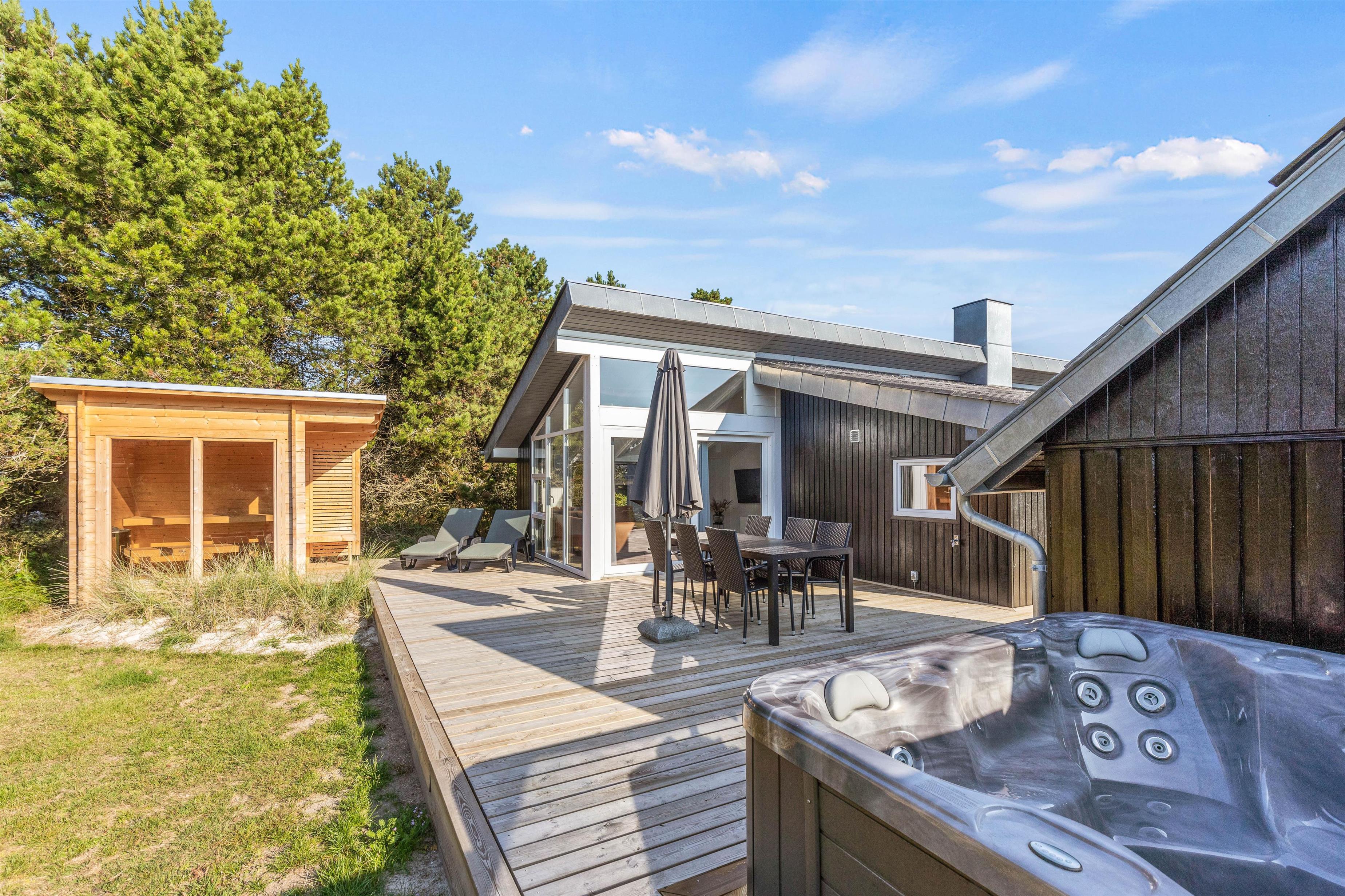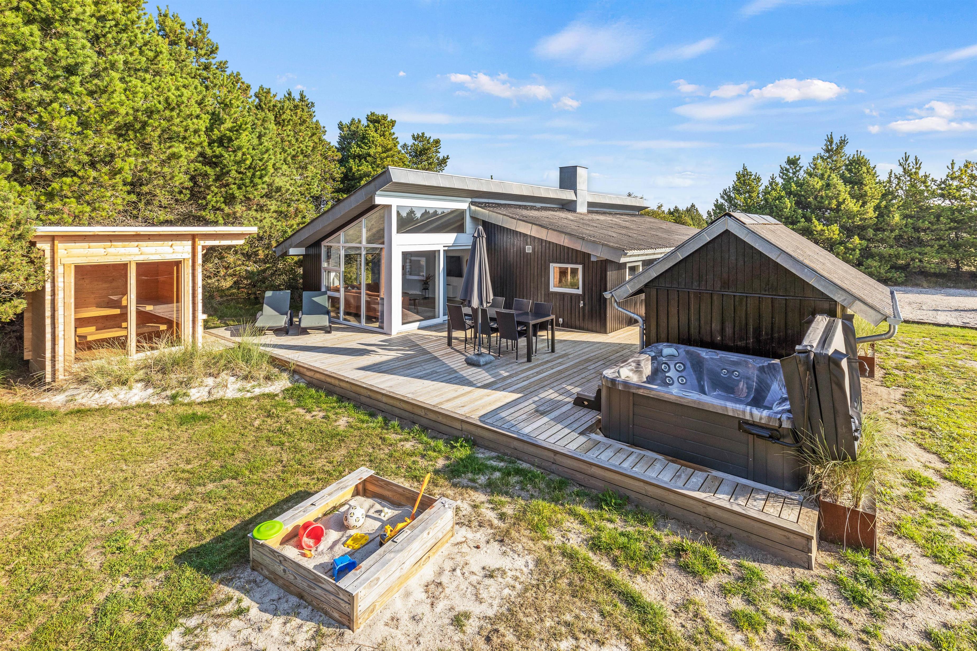 På en dejlig rolig naturgrund i Blåvand ligger dette i 2023 renoverede feriehus på Solhaven 23, og vener på at byde jer indenfor til en ferie i samværets tegn. Feriehuset fremstår lyst og lækkert, med gode kvalitetsmøbler – og udenfor venter jer en ren afslapningsoase i form af udespa samt udesauna. Her er der plads til 6 personer – og jeres hund er her også hjertelig velkommen!