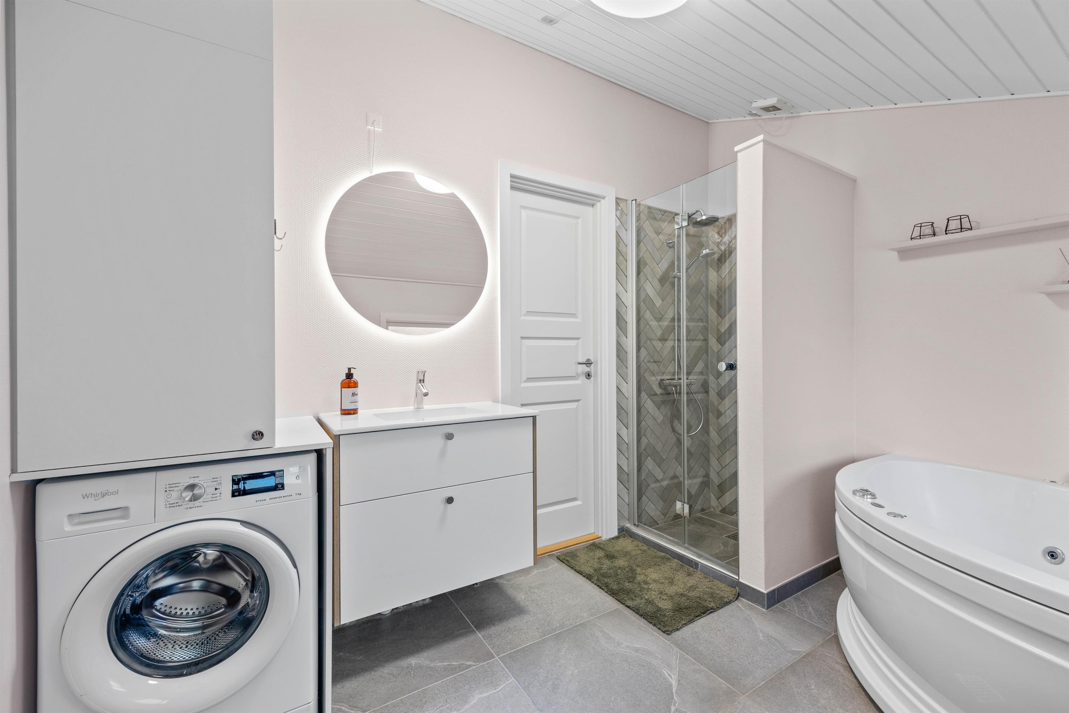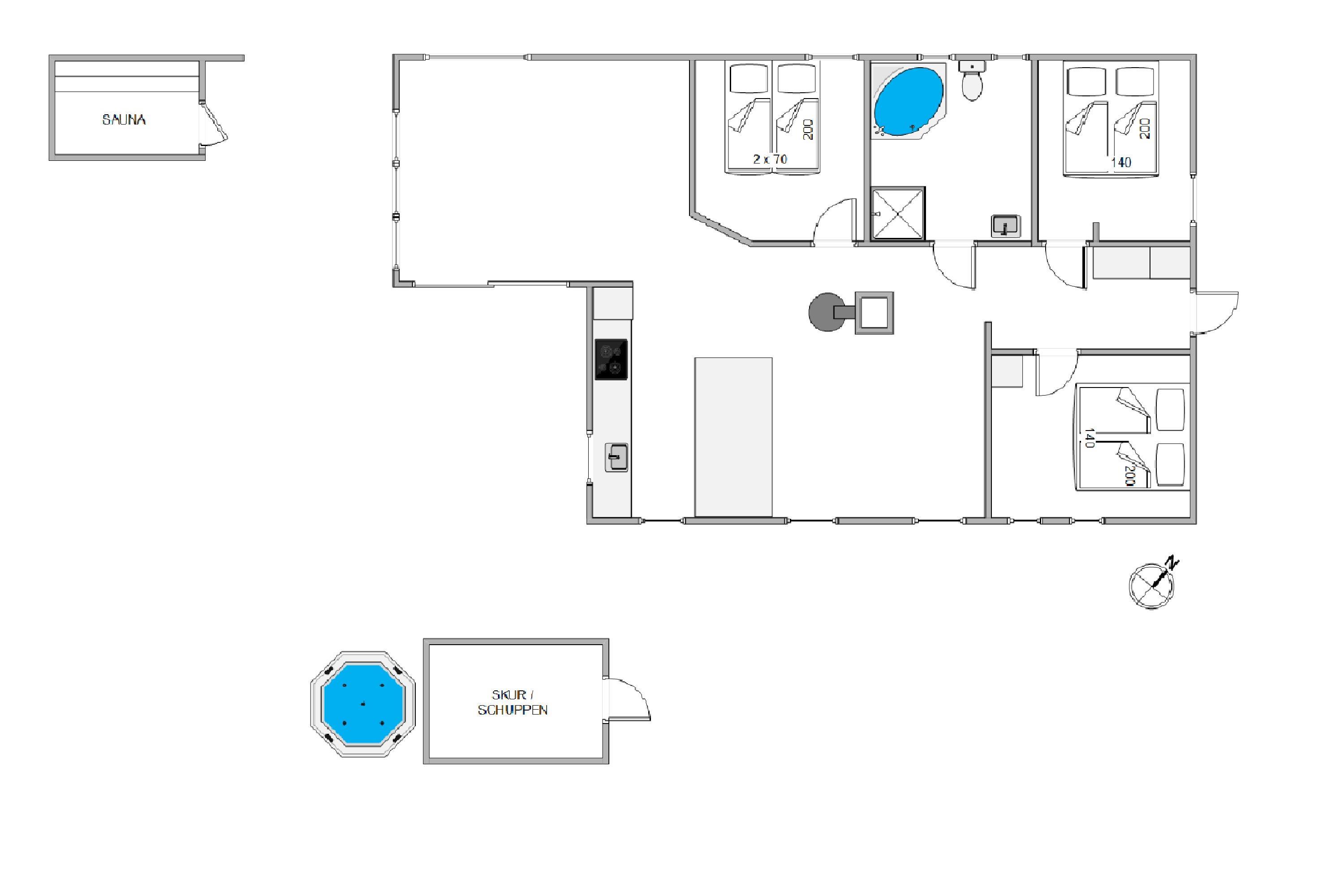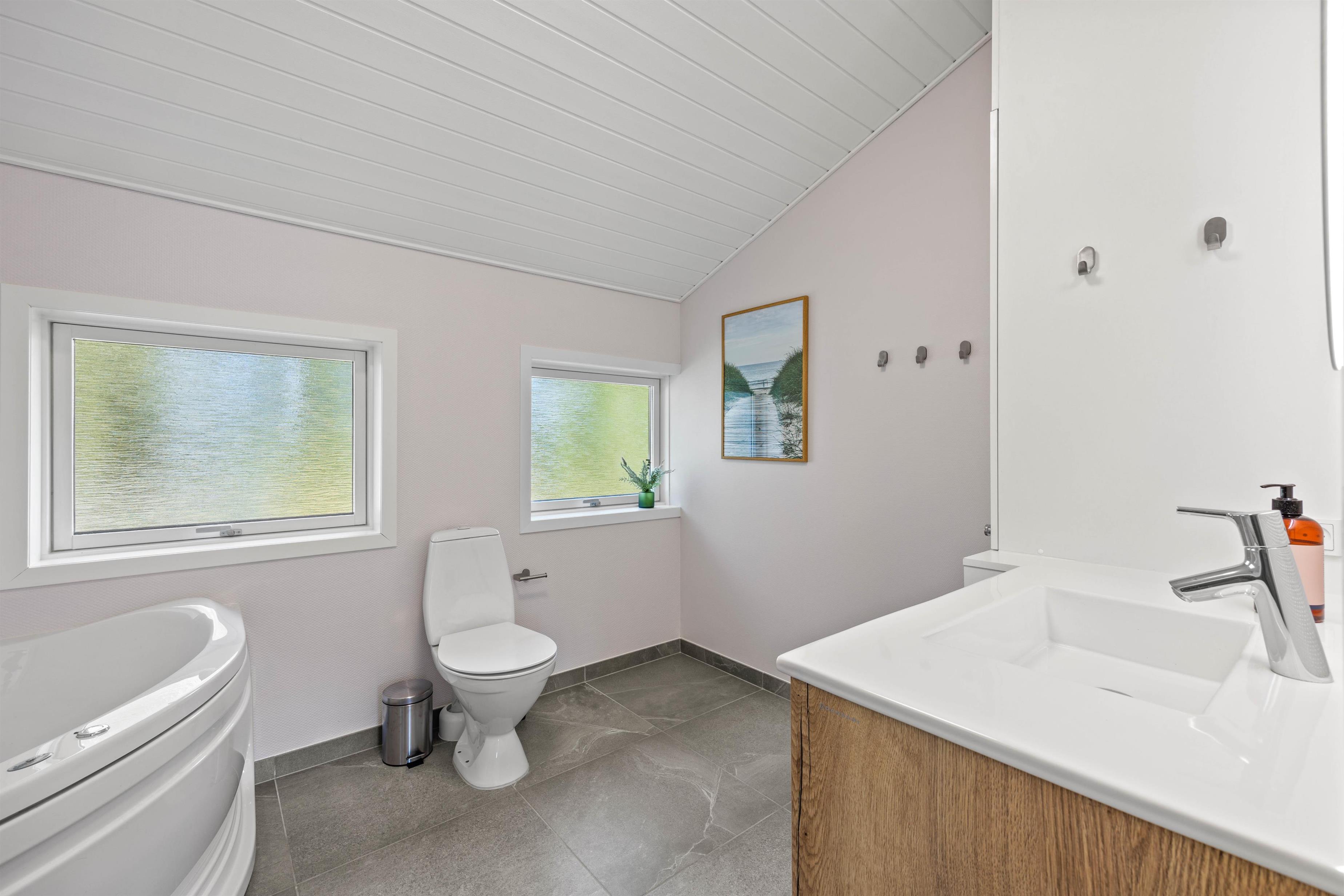 Udover alrummet byder feriehuset også på 3 skønne soverum med dobbeltsenge, samt et badeværelse med spabad – og naturligvis gulvvarme, så I ikke får kolde fødder i vinterhalvåret.