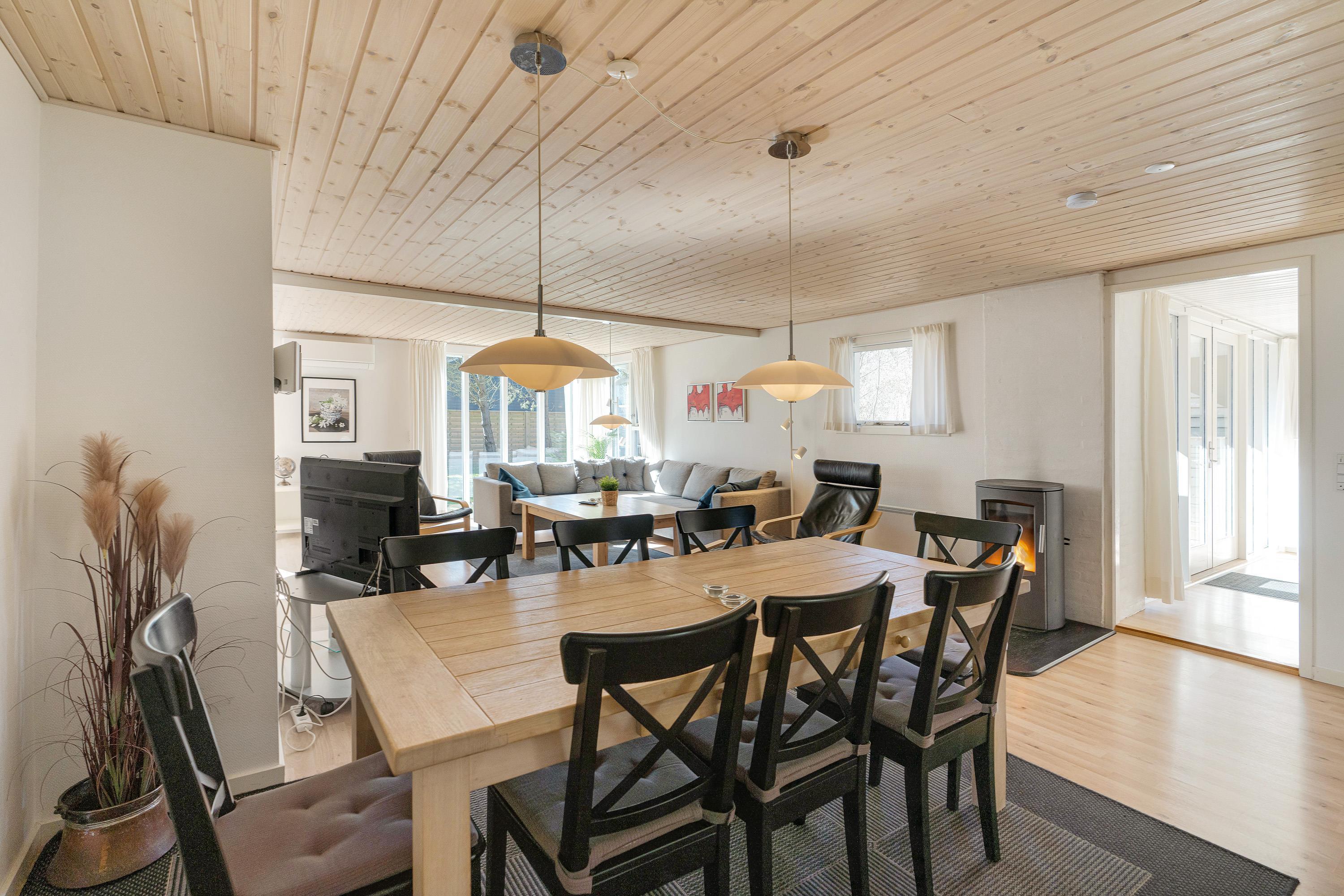 I sommerhuset bliver I mødt af en dejlig ferieatmosfære, som den lyse indretning og det gode lysindfald skaber. I vil straks finde jer godt tilpas i de lyse omgivelser. I det store alrum kan I nyde hinandens selskab over god mad, sjove spil og spændende film. Brændeovnen fuldender den hyggelige feriestemning og sørger for god varme.
