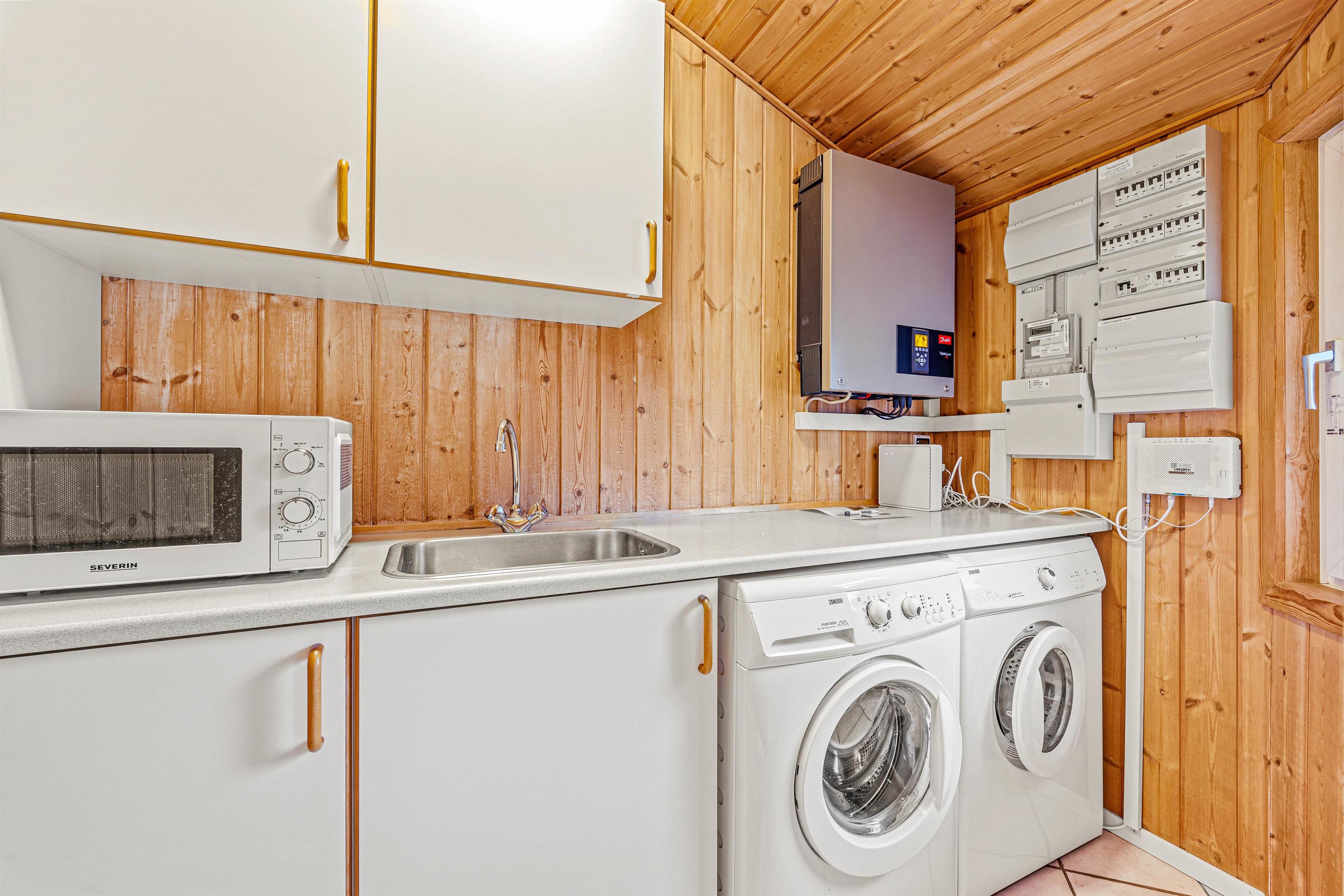 På Søren Lassens Vænge 19 kan I alle tilbringe mange glade ferietimer sammen i den store stue. Det åbne køkkenområde ligger lige ved siden af spisepladsen, så I kan lave mad sammen, mens børnene leger på hemsen. Brændeovnen er centralt placeret i stuen, giver den perfekte feriestemning med den knitrende ild i brændeknuderne. Endvidere er der en energibesparende varmepumpe til opvarmning. Fra stuen er der direkte adgang til poolområdet, og mens børnene plasker rundt i swimmingpoolen, kan de voksne slappe af i spaens bobler – eller omvendt.