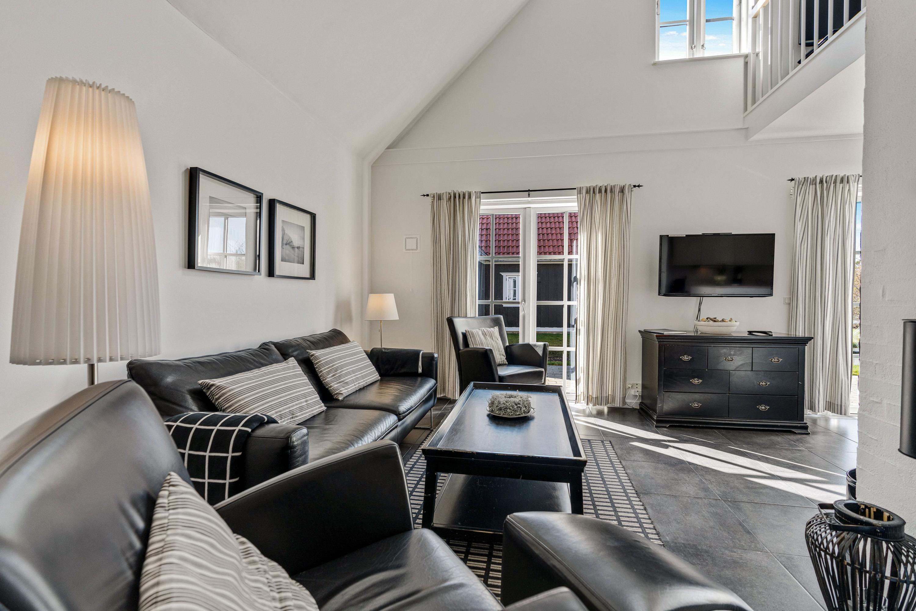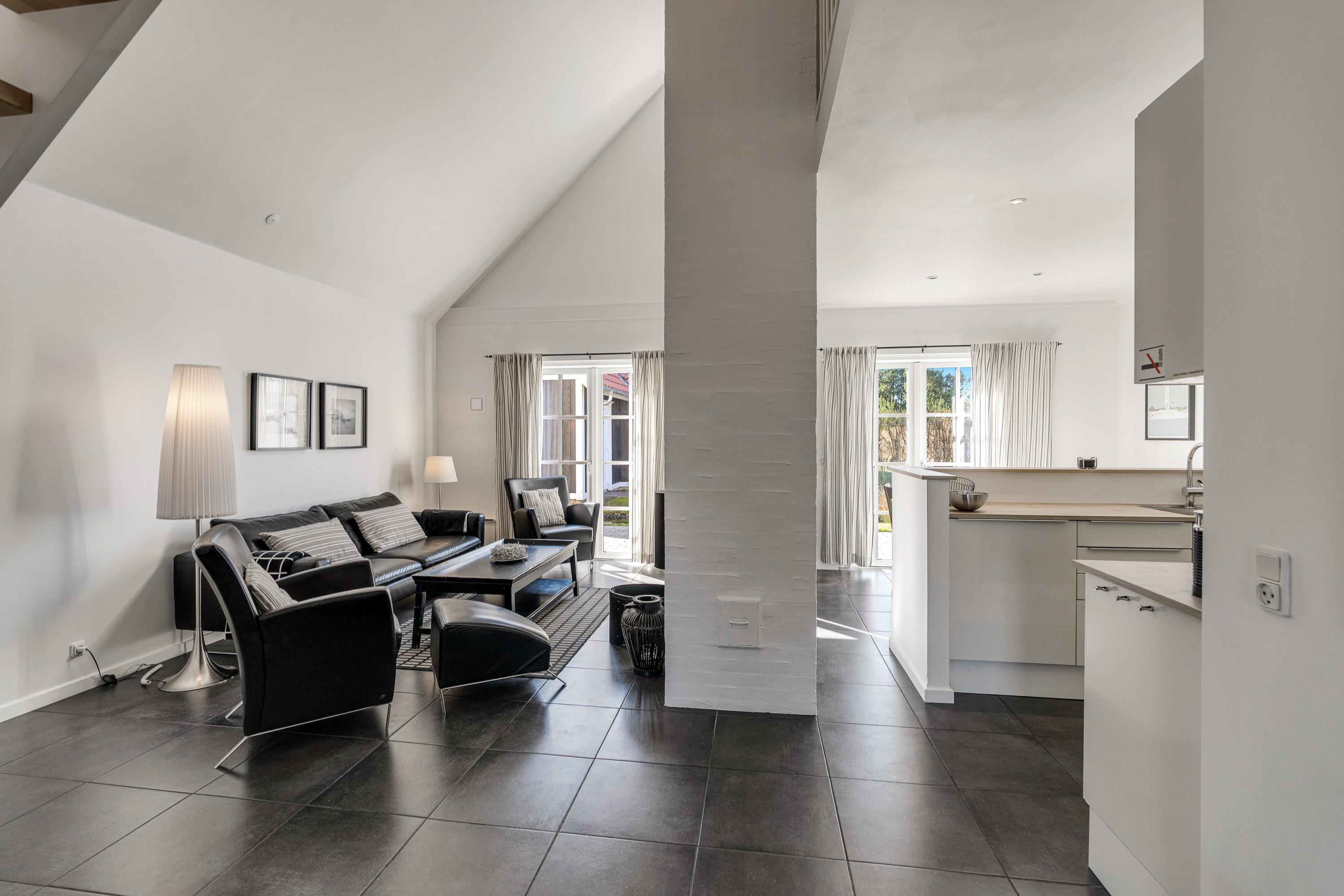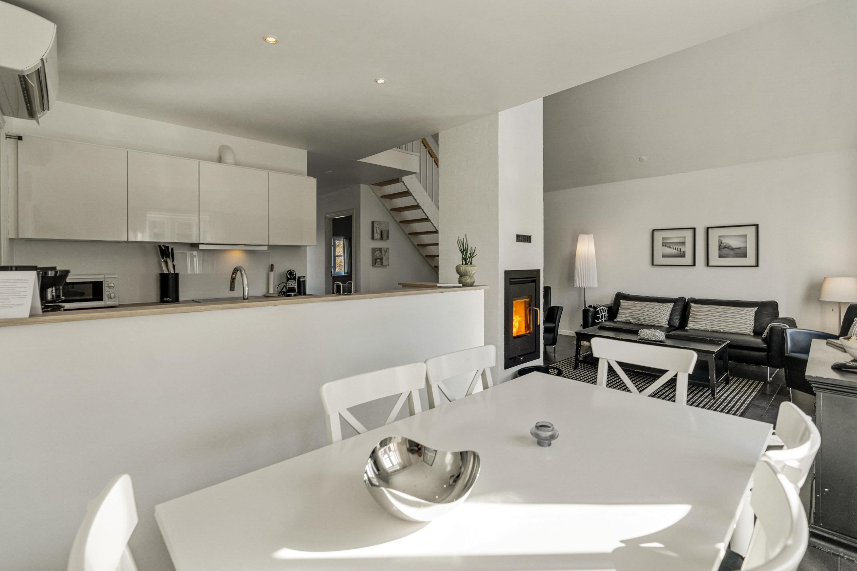 Så snart I træder indenfor, vil I føle jer godt tilpas i de moderne og stilfulde omgivelser. De hvide og sorte farver symboliserer ro, og intet er overladt til tilfældighederne. Det lyse og moderne køkken er udstyret med alt, hvad I har brug for, når I skal tilberede lækre feriemåltider, og opvaskemaskinen gør oprydningen overskuelig efterfølgende.