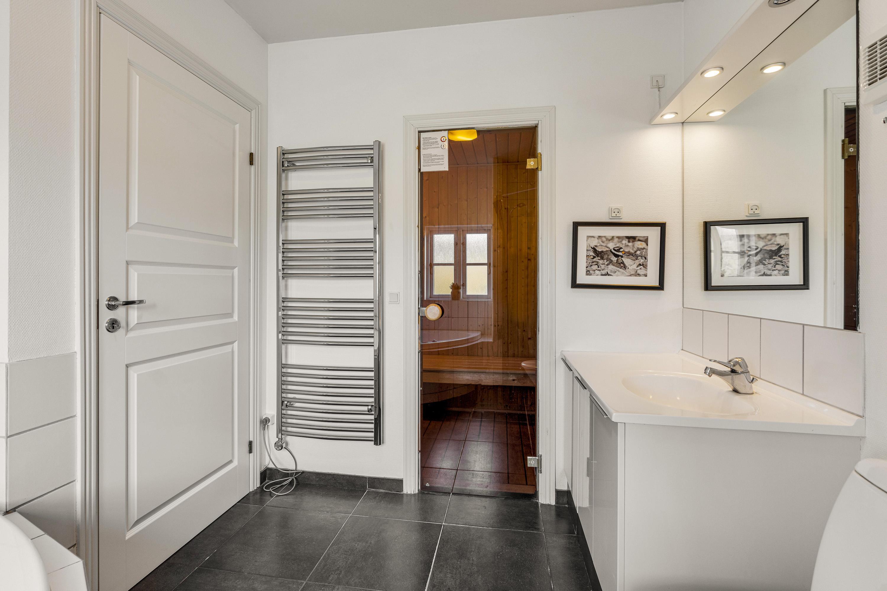 Trænger I til at komme endnu mere ned i gear, er sommerhusets badeværelse det helt rigtige sted at søge hen til; her står sauna og spabad klar til at forkæle jer med skønne wellness-oplevelser.