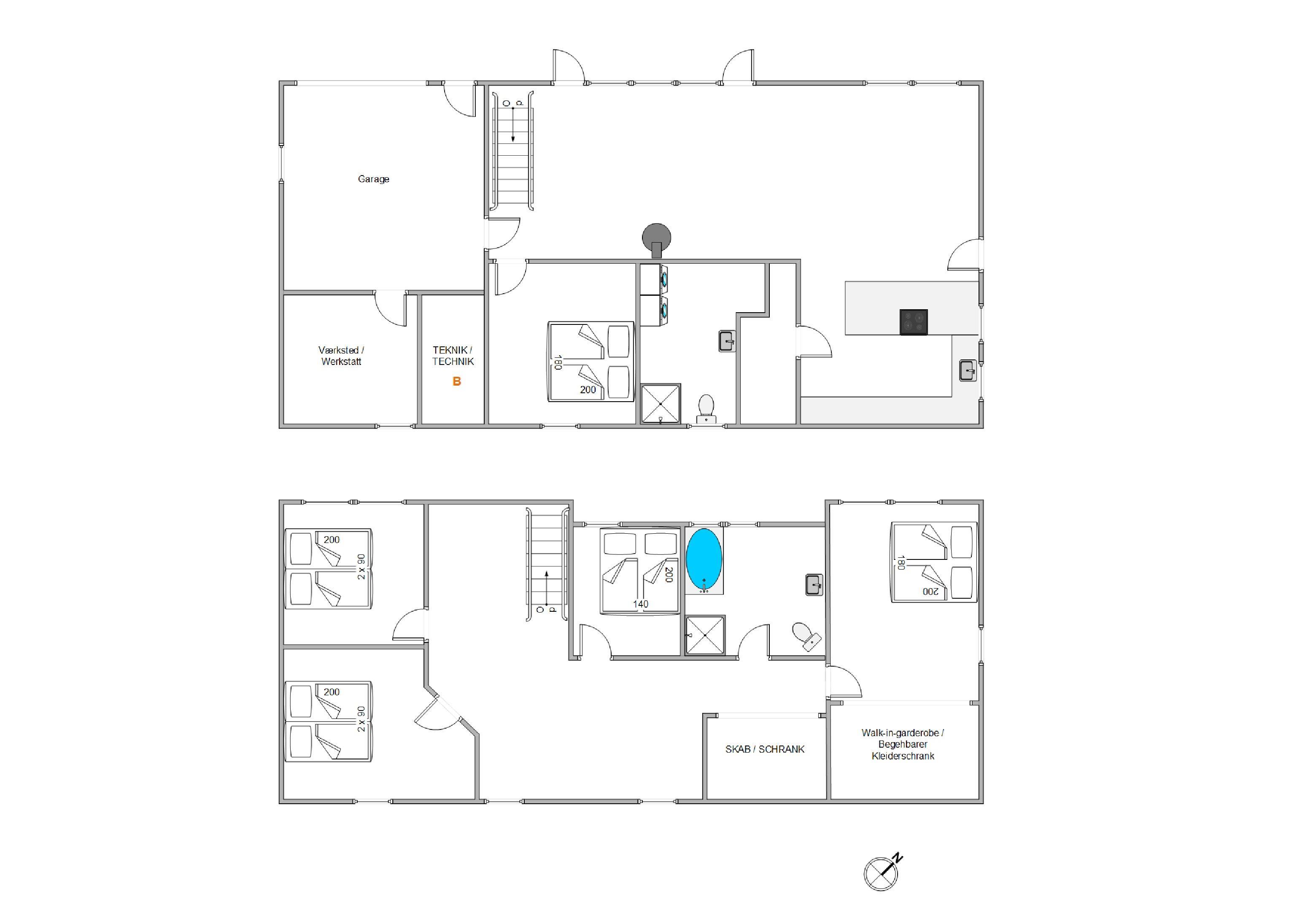 I sommerhuset kan op til 10 personer holde ferie, og når I har pakket ud og fået værelserne fordelt imellem jer, kan I slå jer løs i sommerhusets gode aktivitetsmuligheder. Sommerhusets 10 sovepladser er fordelt på 5 soveværelser, hvoraf der er 4 med dobbeltseng. Det sidste værelse er indrettet med 2 enkeltsenge.