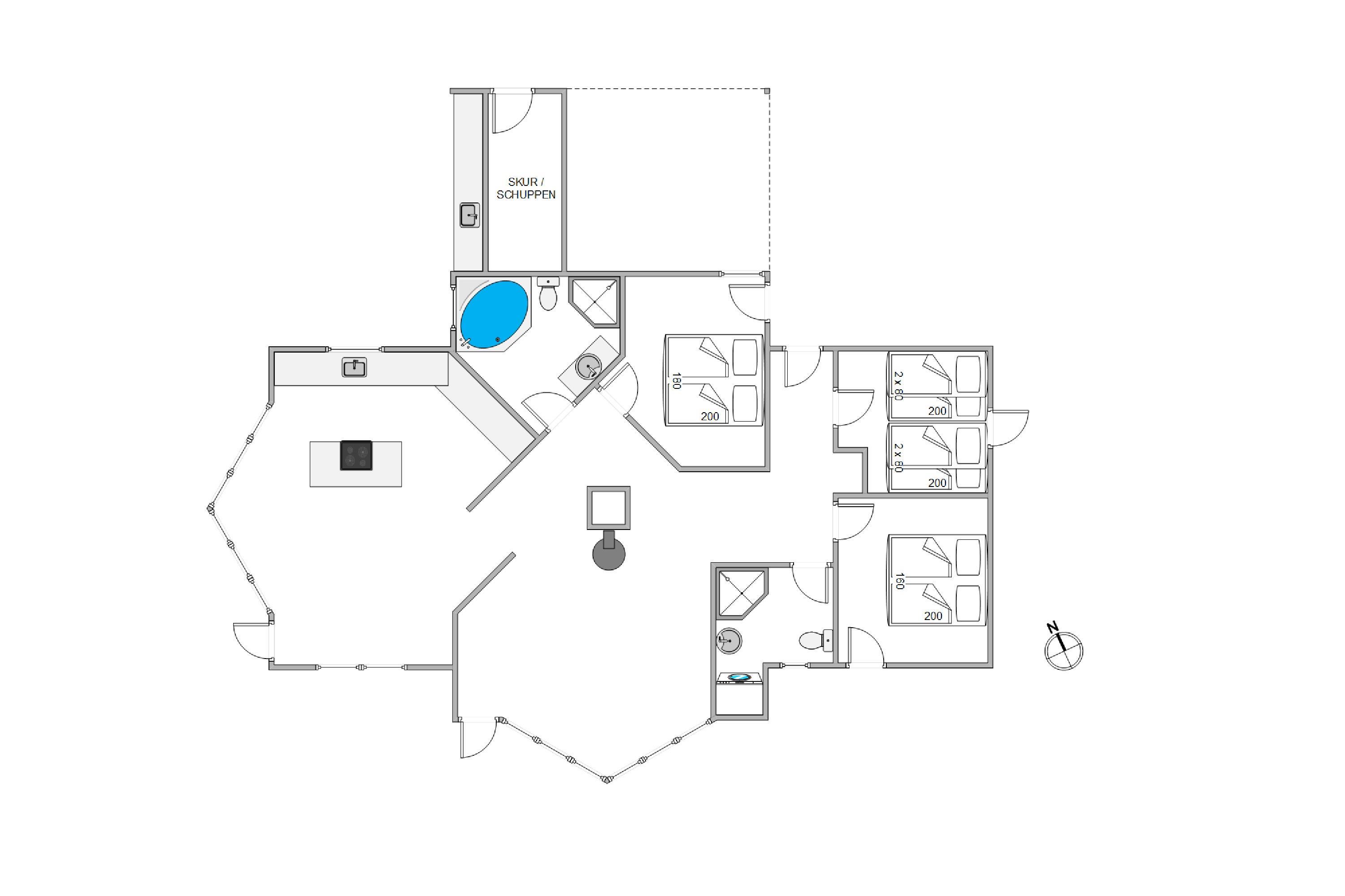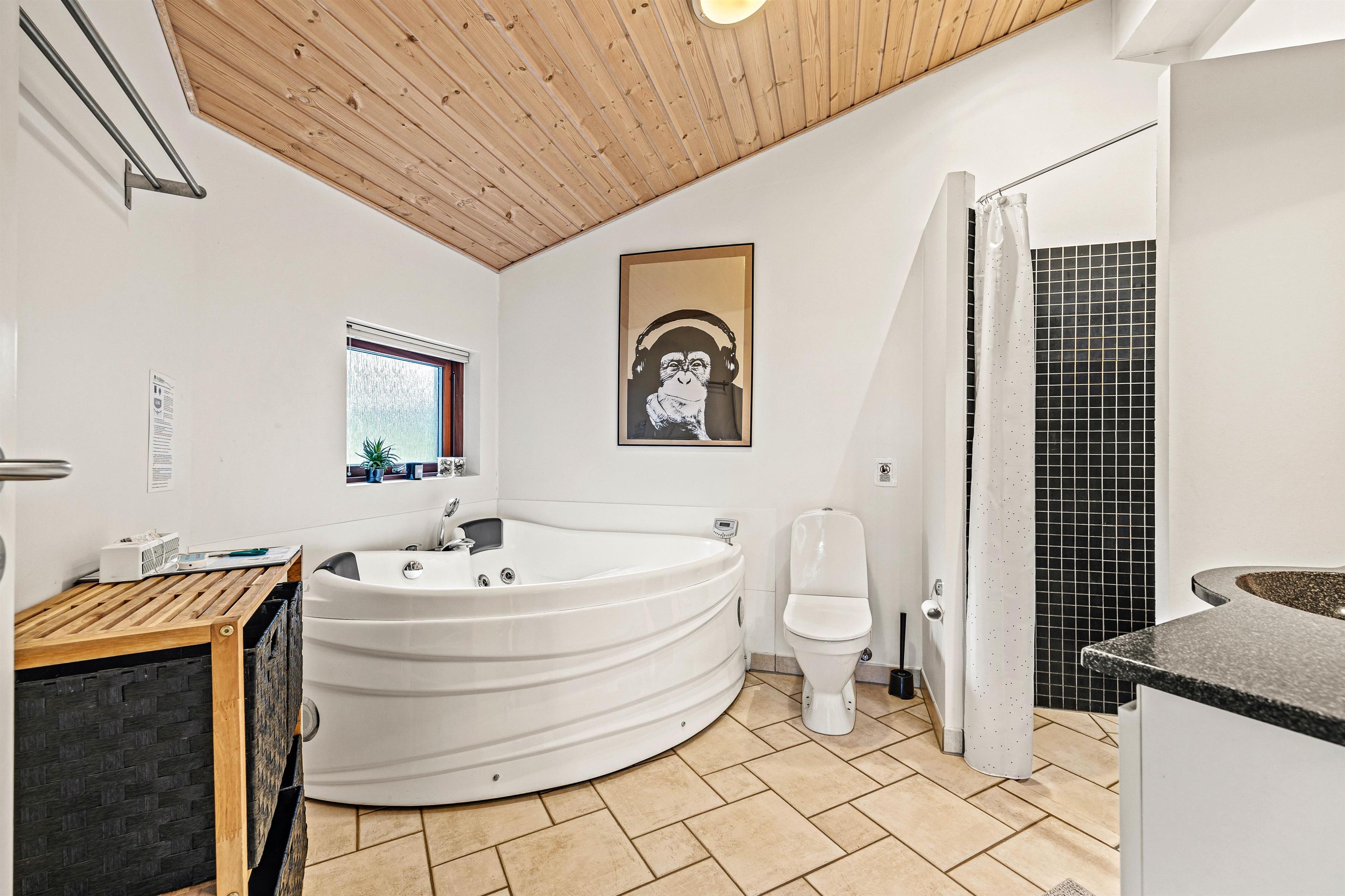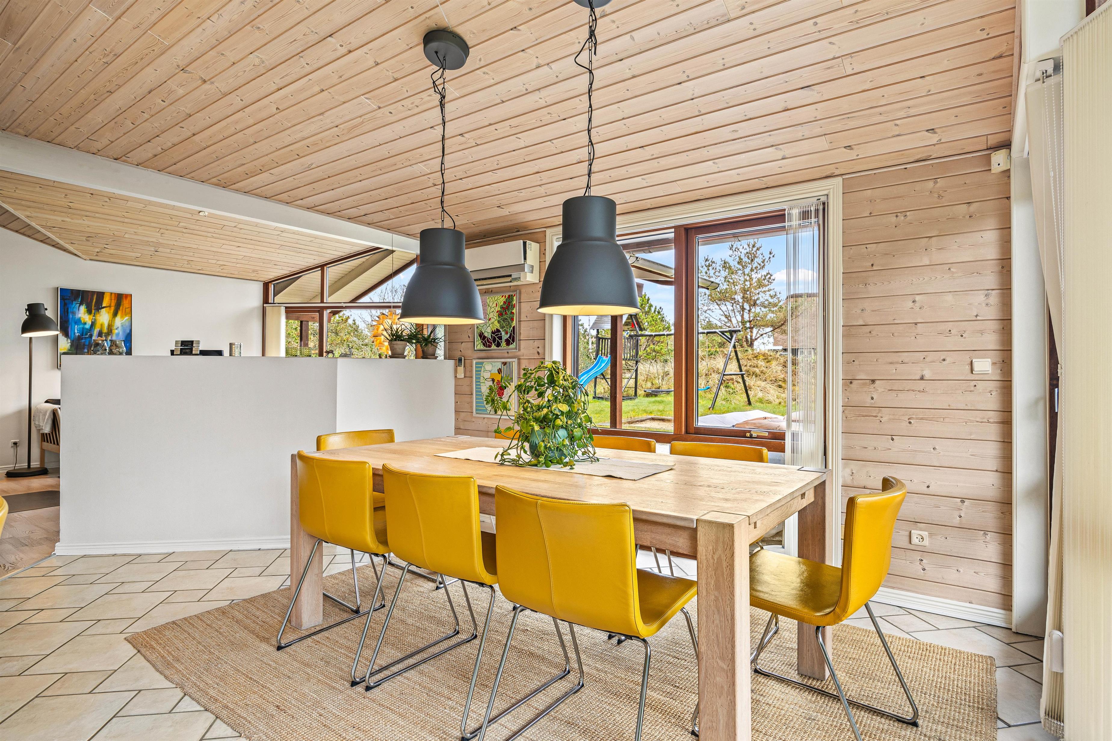 Når I træder ind i det skønne sommerhus, bliver I omfavnet af den gode og hyggelige atmosfære. Brændeovnen spreder varme og hygge på kølige aftener, mens den energieffektive varmepumpe sørger for en behagelig temperatur året rundt. De 3 soveværelser giver jer alle plads til en behagelig nattesøvn, og med 2 fine badeværelser er alle jeres behov dækket. Som et ekstra plus er der både vaskemaskine og tørretumbler i feriehuset.