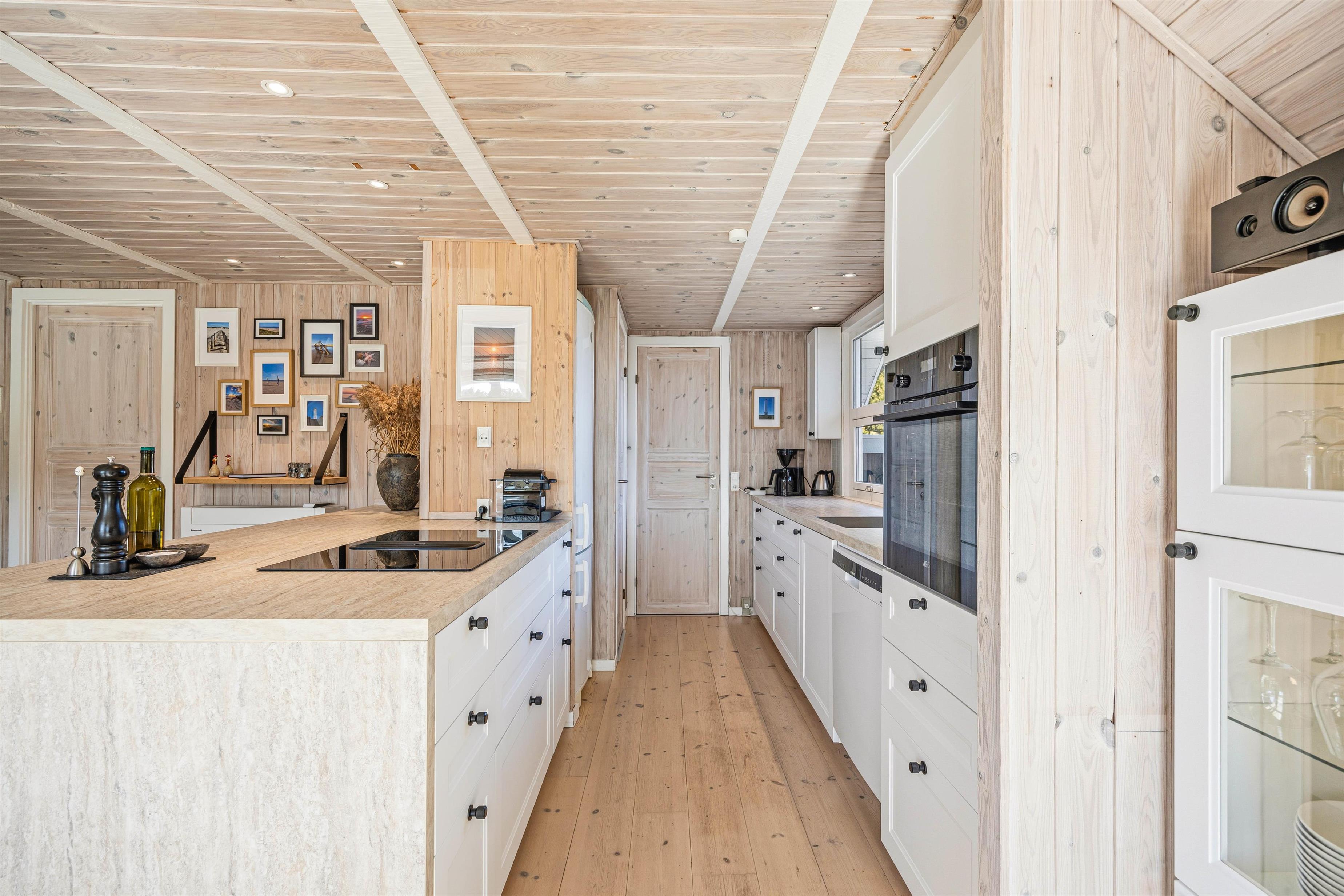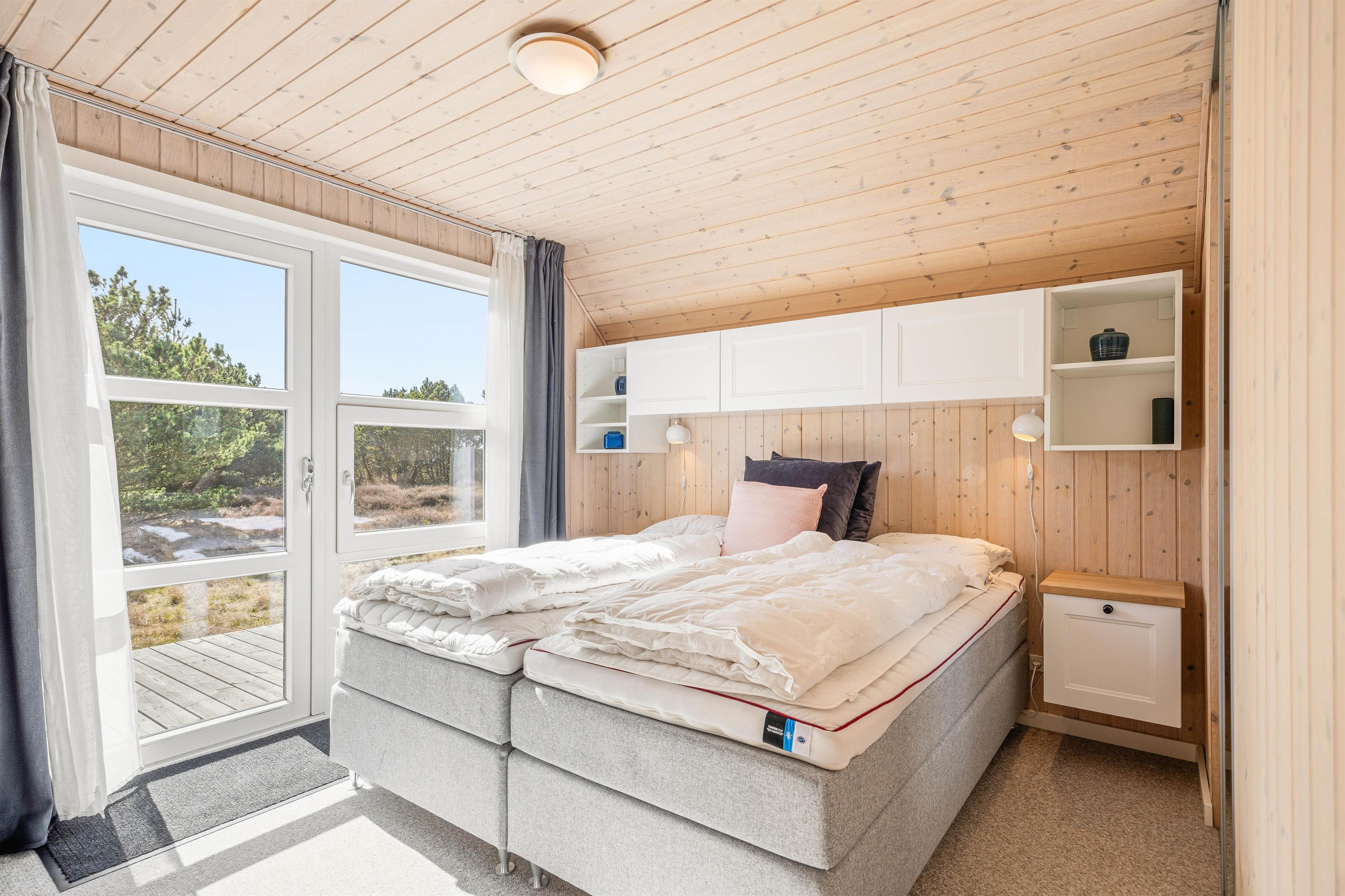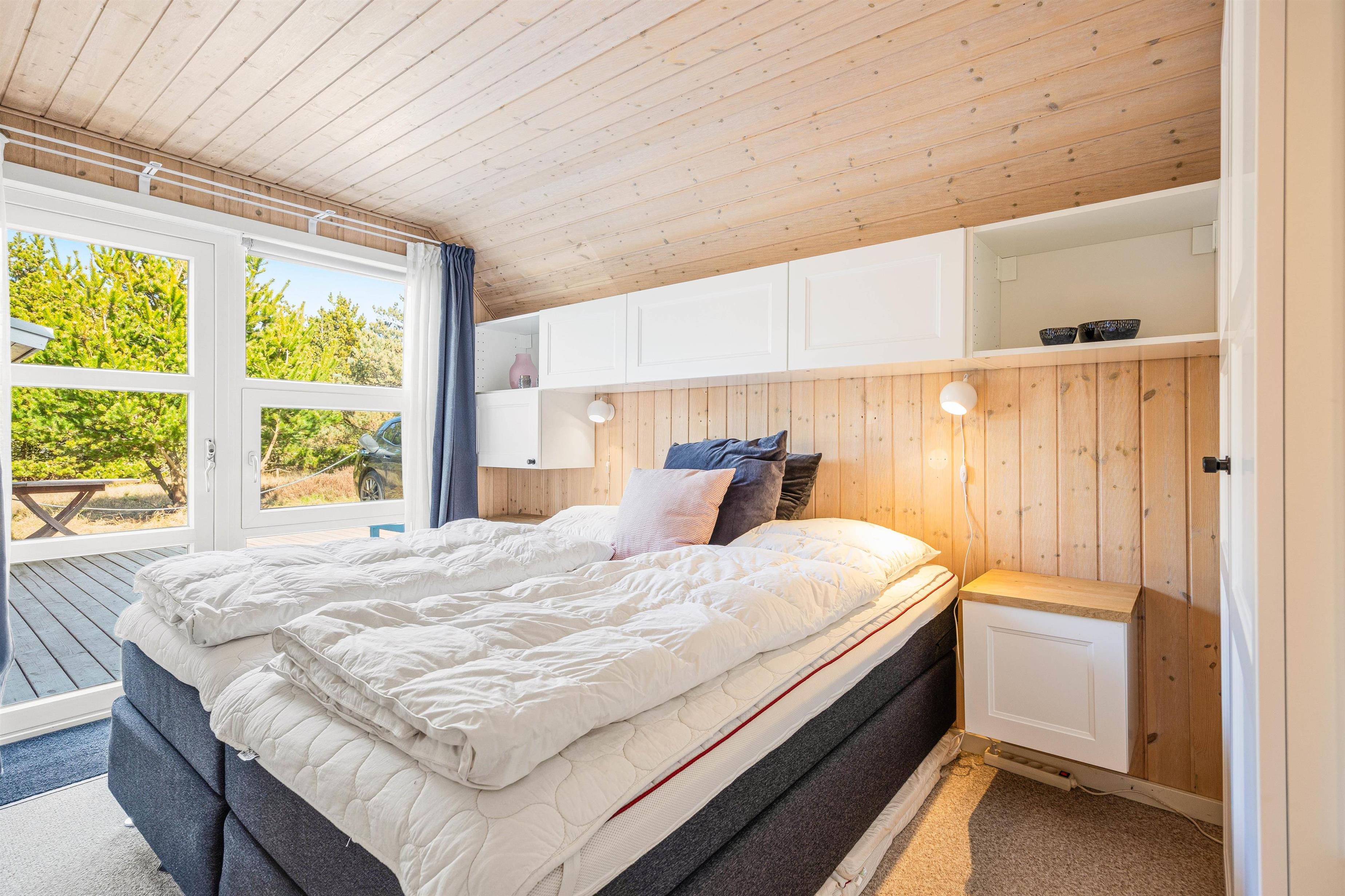 Dette 4-stjernede sommerhus i Blåvand byder på et samlet husareal på 156 m2 fordelt på 4 soveværelser, heraf 3 indrettet med en komfortabel dobbeltseng og det sidste med en enkeltseng m.m. Spisning og madlavning bliver en leg i det dejlige køkken med opvaskemaskine, der gør opvaskerne til fortid. Et dejligt lysindfald fra de store vinduespartier giver et skønt kig ud på den store naturgrund.