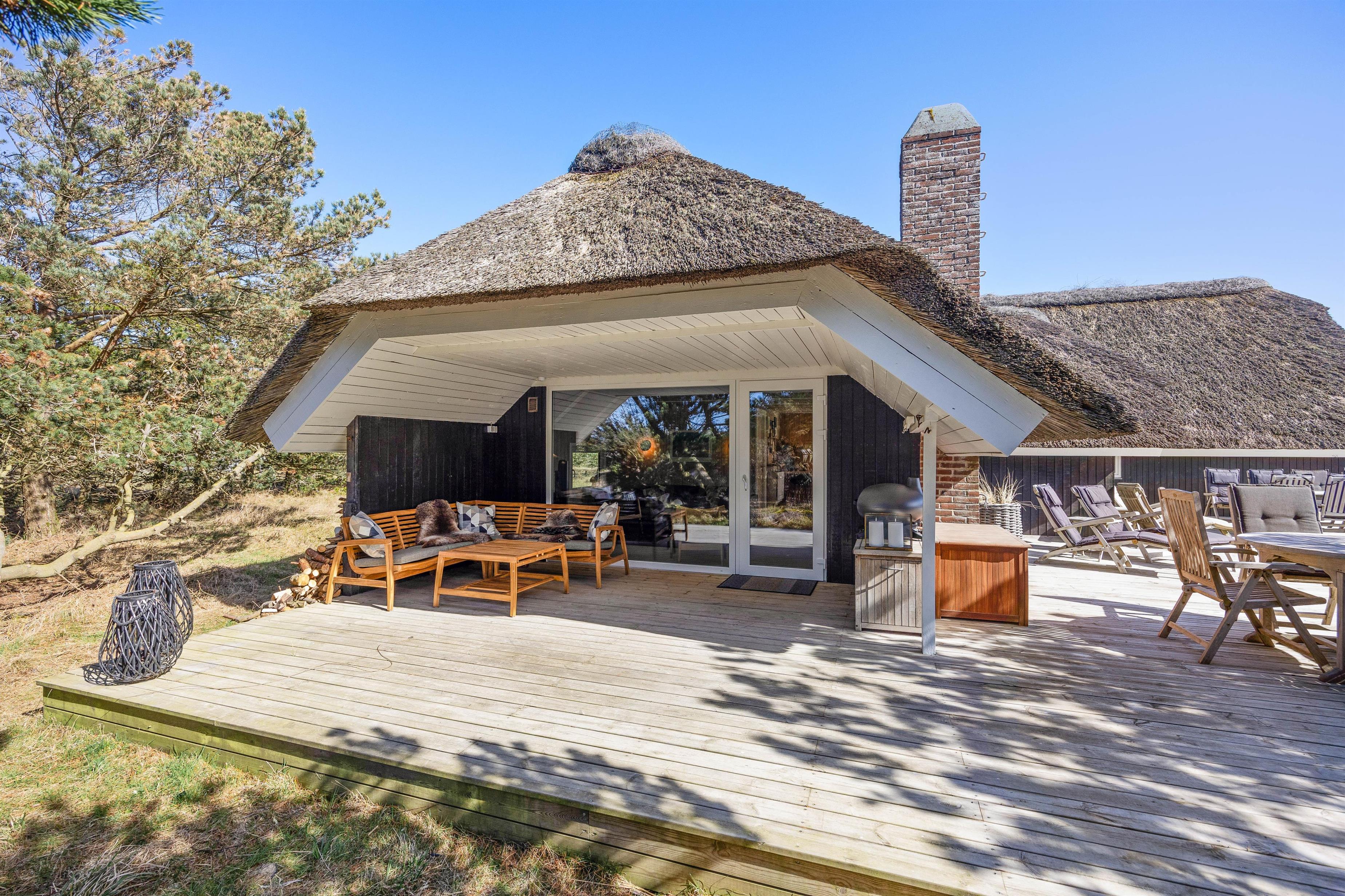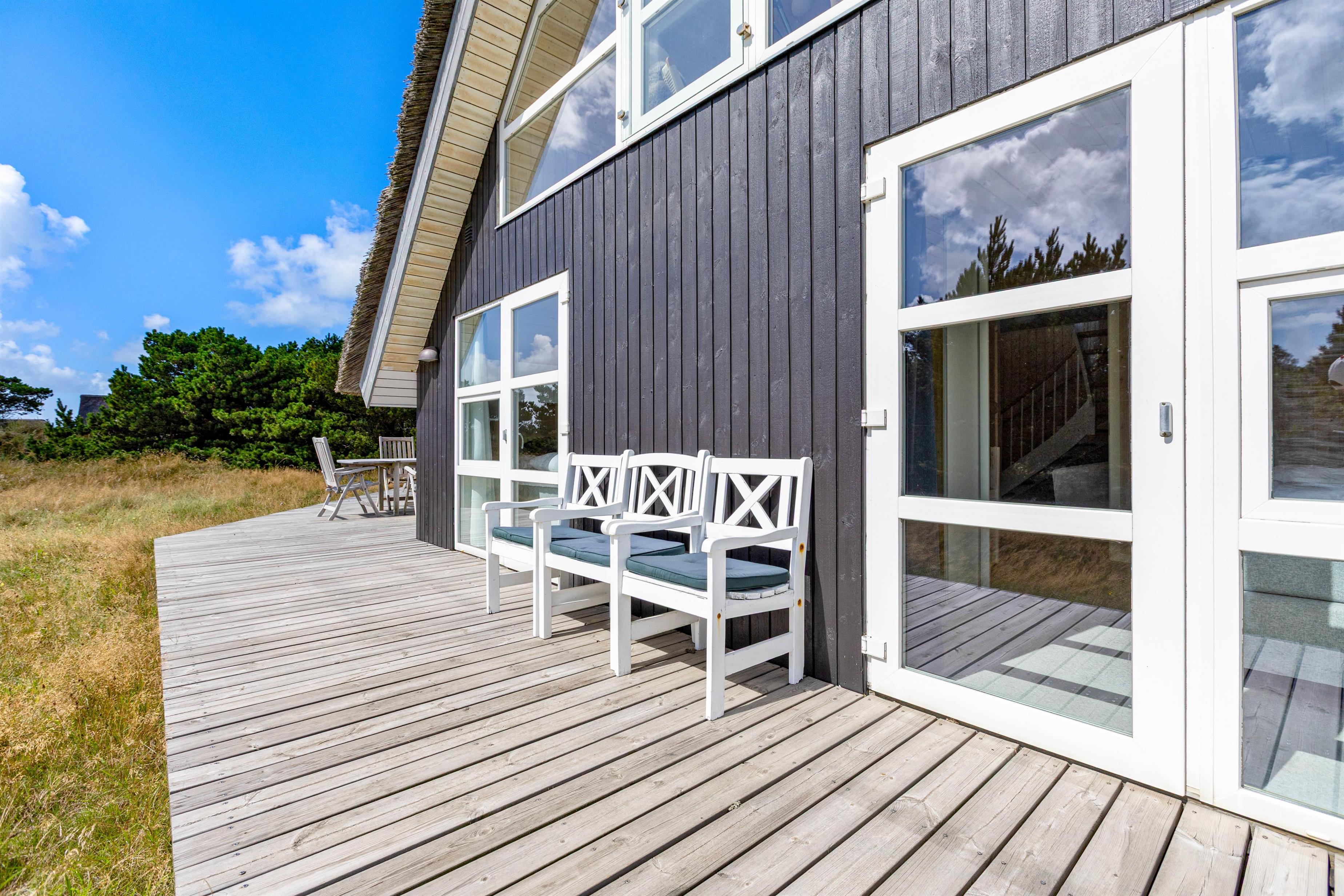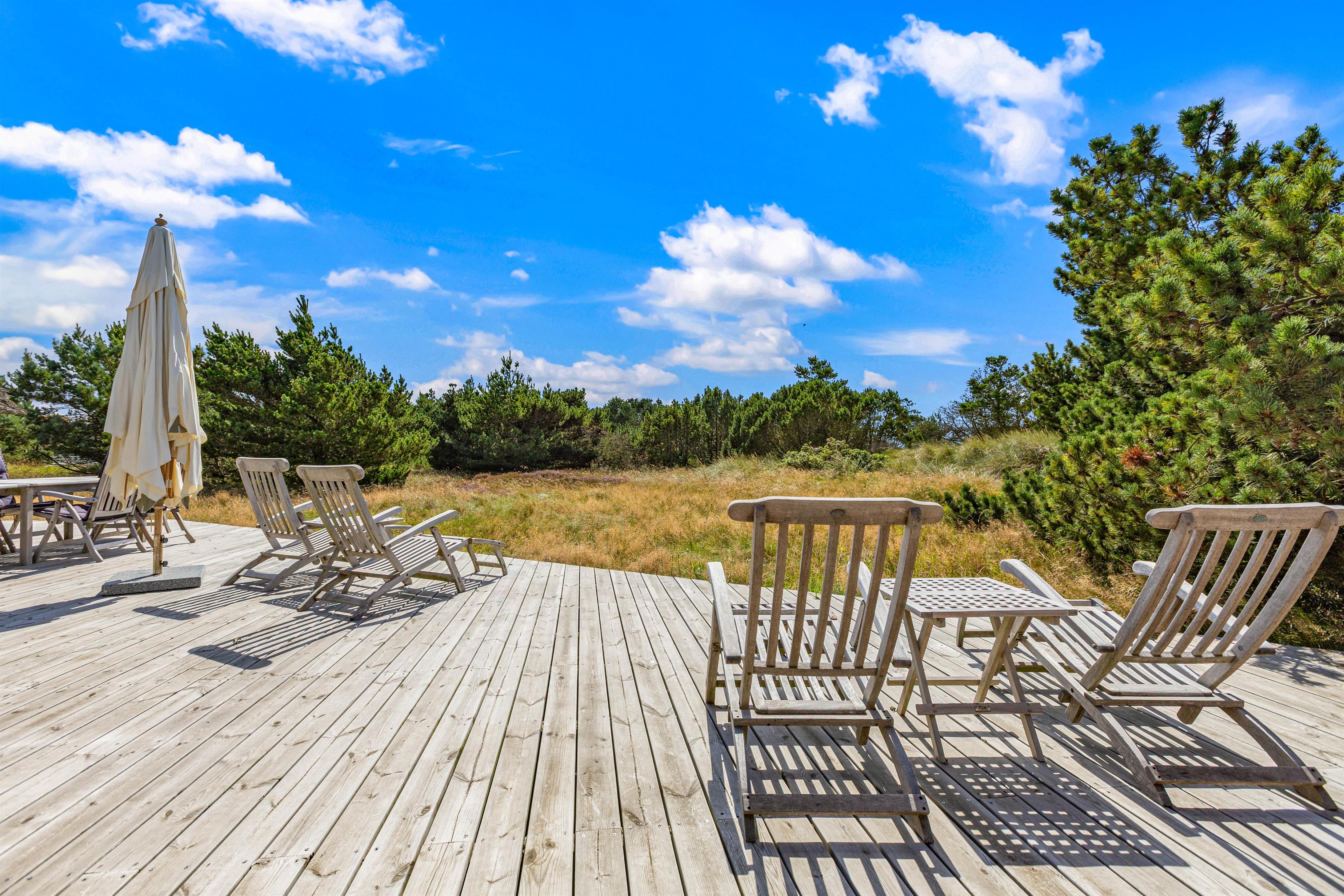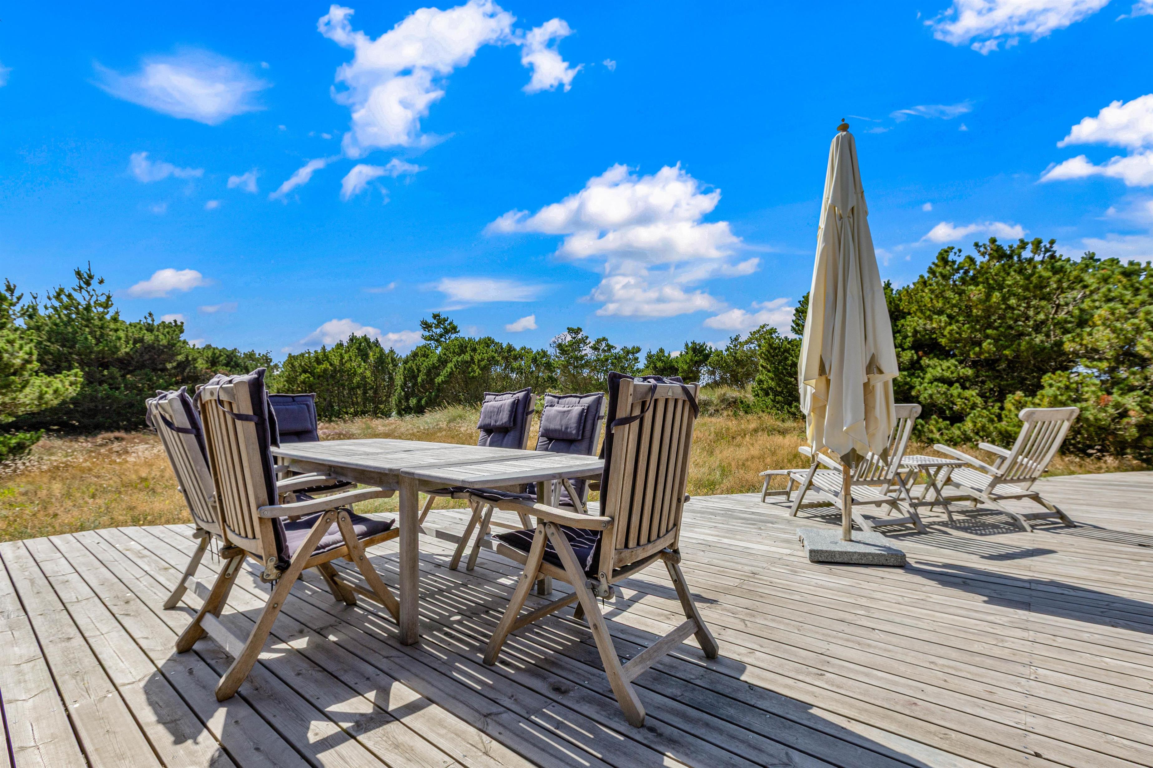 Et ophold i dette sommerhus i Blåvand vil med sikkerhed efterlade jer med fantastiske minder. Sommerhusets kapacitet til 8 personer gør det perfekt til at skabe glædelige stunder med familie eller venner, og fra den dejlige træterrasse, der løber rundt huset, kan I nyde solens stråler eller finde skygge hele dagen.