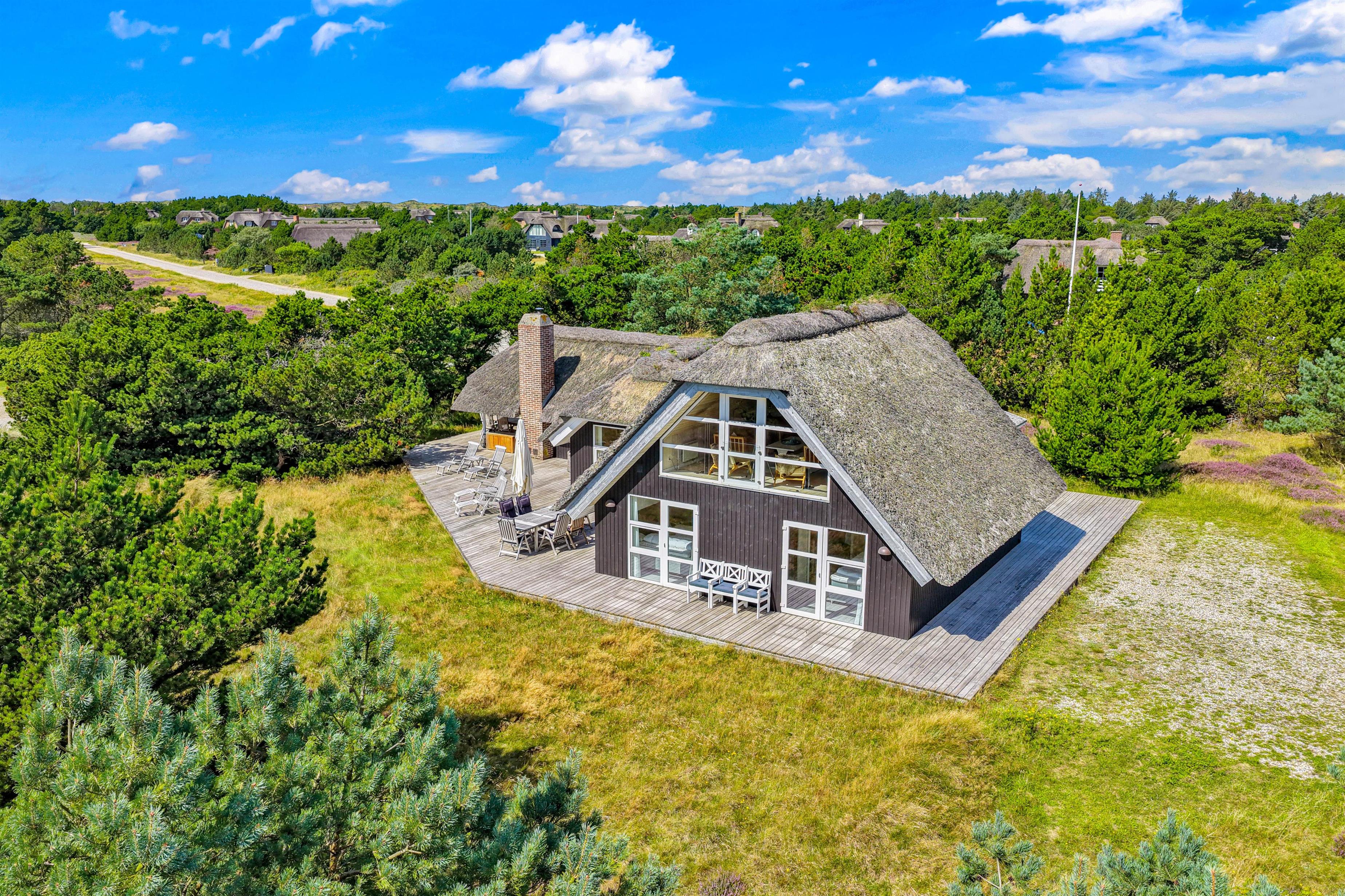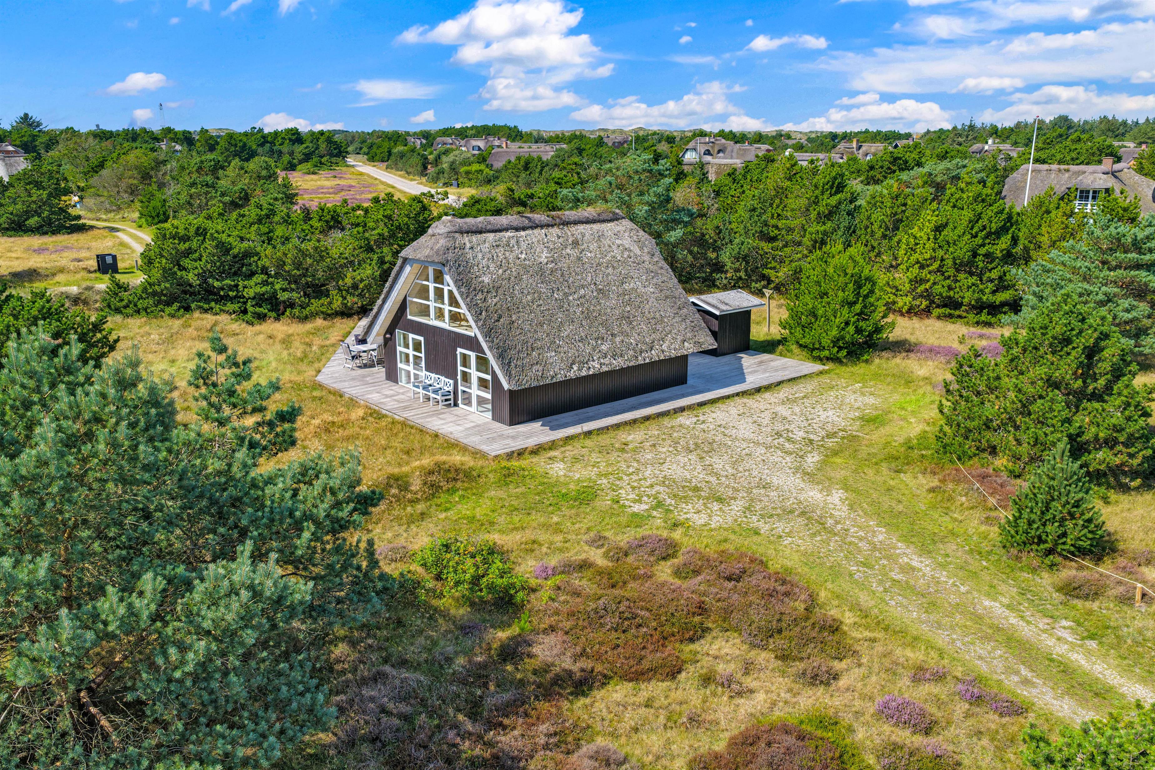 Mellem de skønne klitter ved det brusende Vesterhav finder I dette charmerende, stråtækte sommerhus på Ingridsvej 5. Sommerhuset giver jer muligheden for en uforglemmelig ferie med plads til 7 heldige personer. Med sin nærhed til stranden, kun 250 meter væk, og gode indkøbsforhold blot 800 meter væk, er dette det idéelle sted for jer, der søger en kombination af komfort og natur.