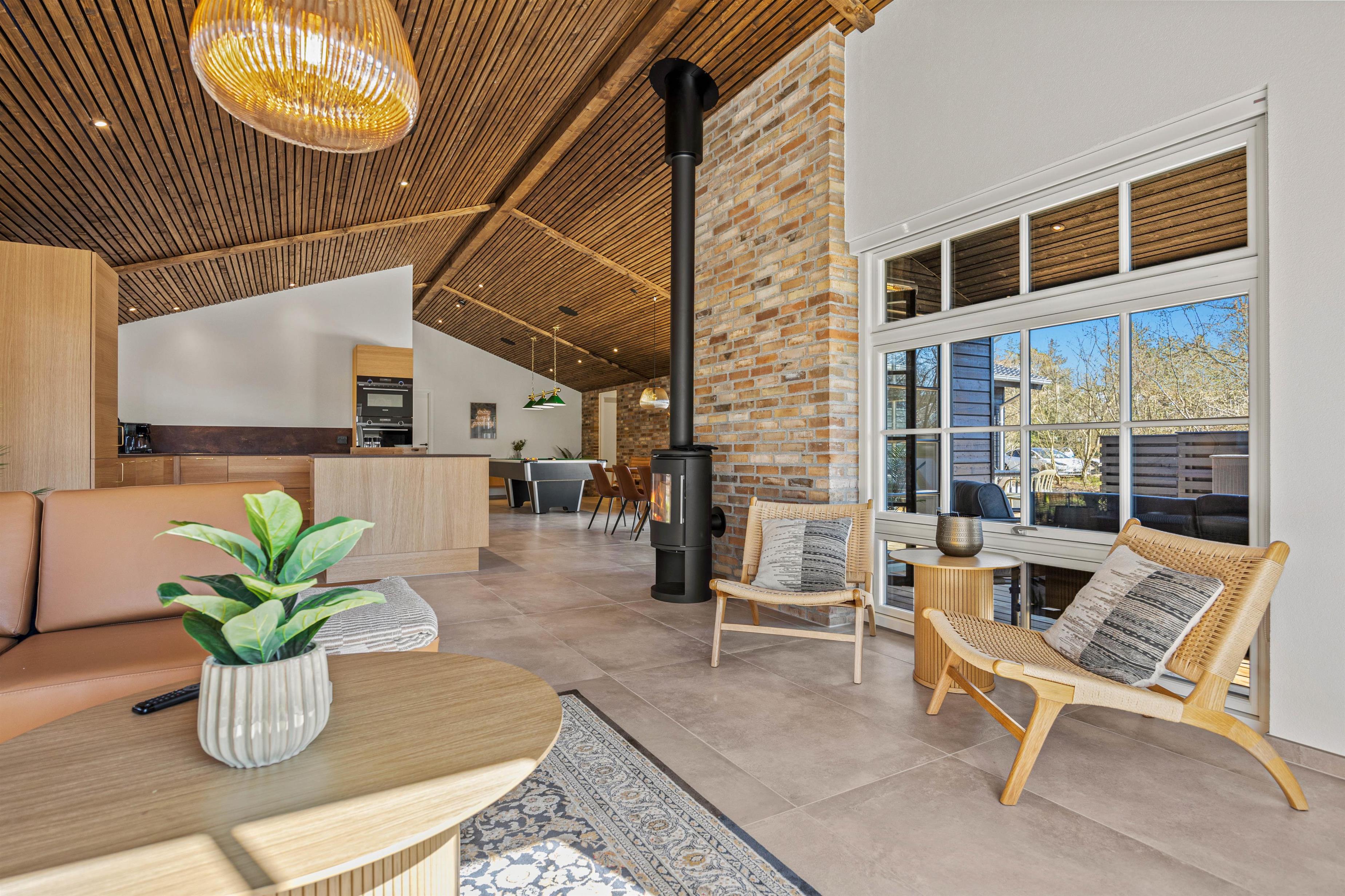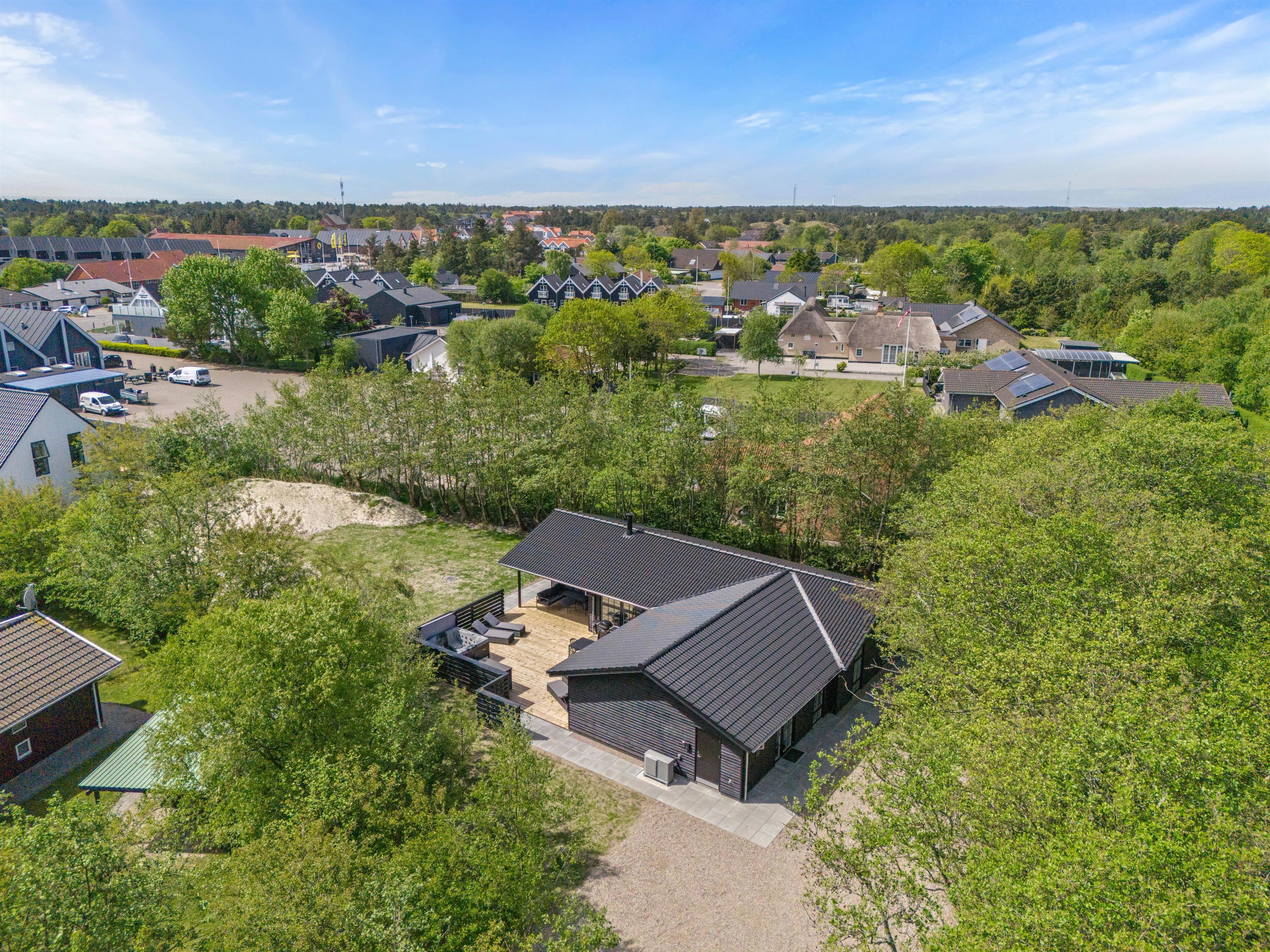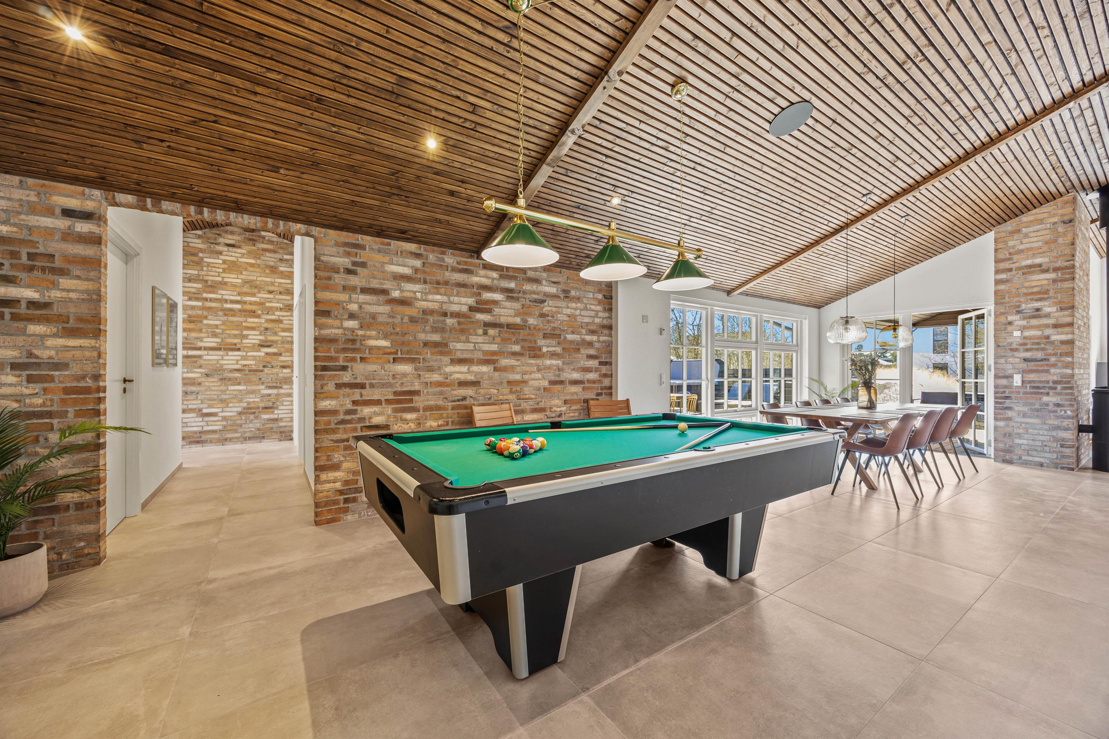 Saunaen er klar til restituerende øjeblikke af velvære, og i aktivitetsrummet byder poolbordet på masser af sjov for dig og dine nærmeste. Skulle I få lyst til at komme ud og nyde den friske, Vestjyske luft kan I med kun 1800 meter til stranden tage på spontane ture til havet, og fornødenheder kan I købe ind i supermarkedet, blot 400 meter væk.