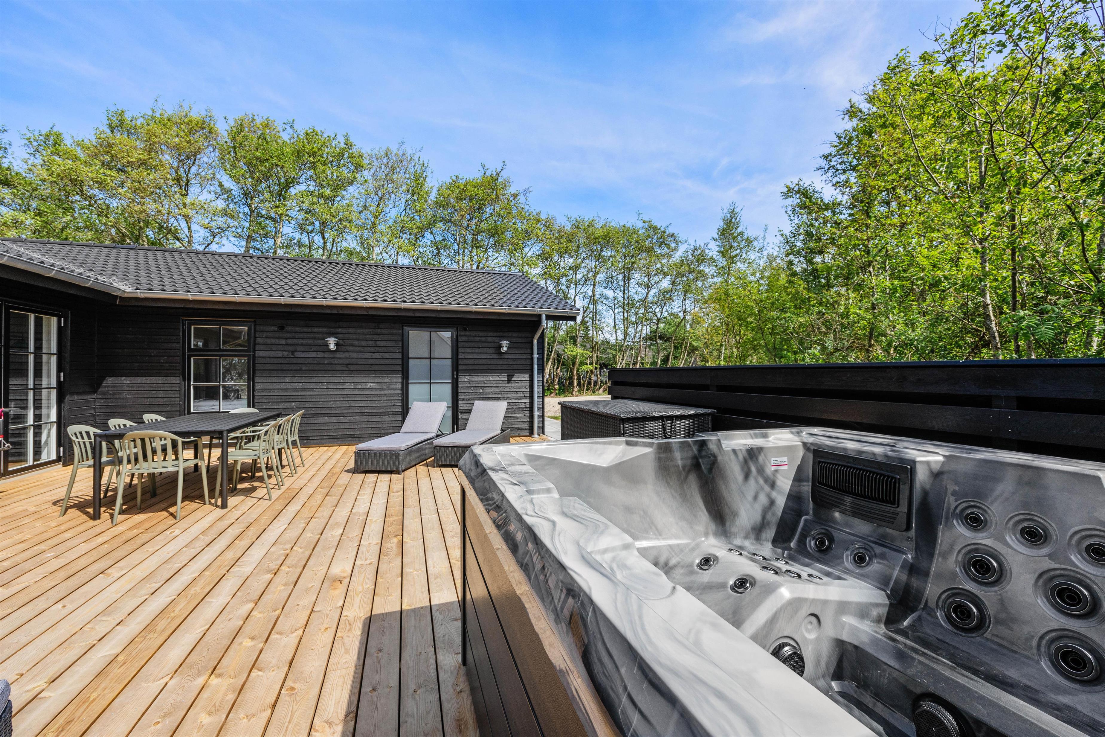 Det luksuriøse udendørs spabad sikrer, at du kan få wellnessoplevelser uden lige og komme helt ned i gear i en pause fra alting til indre ro. Nyd solen på terrassen eller hyg dig med familie og venner og få et minderigt ophold.