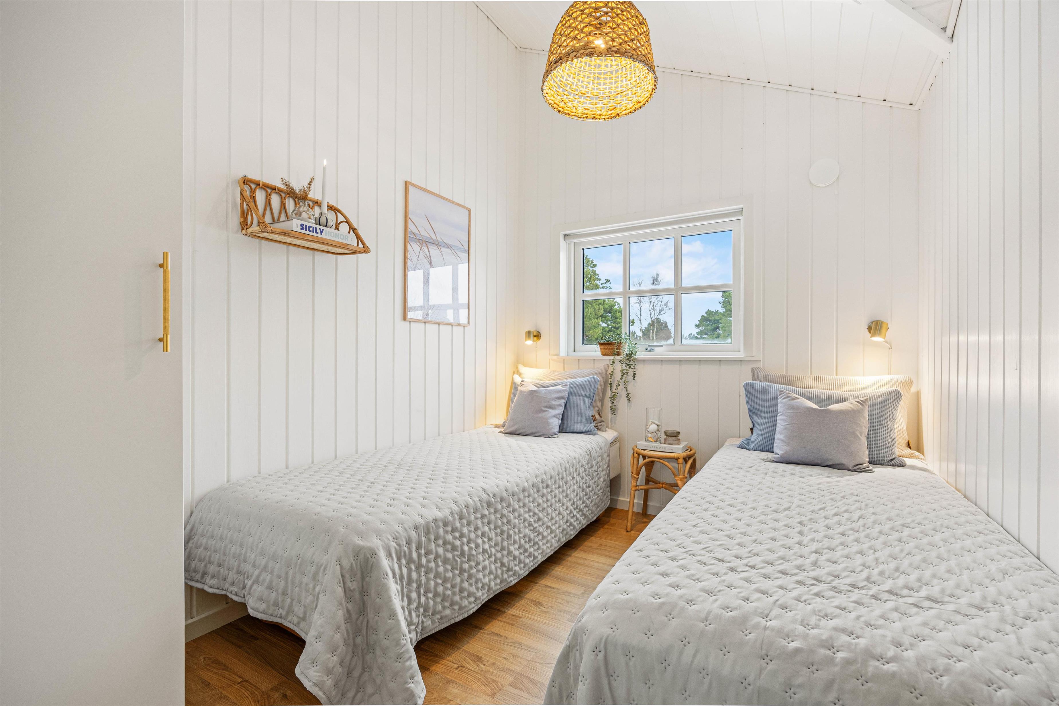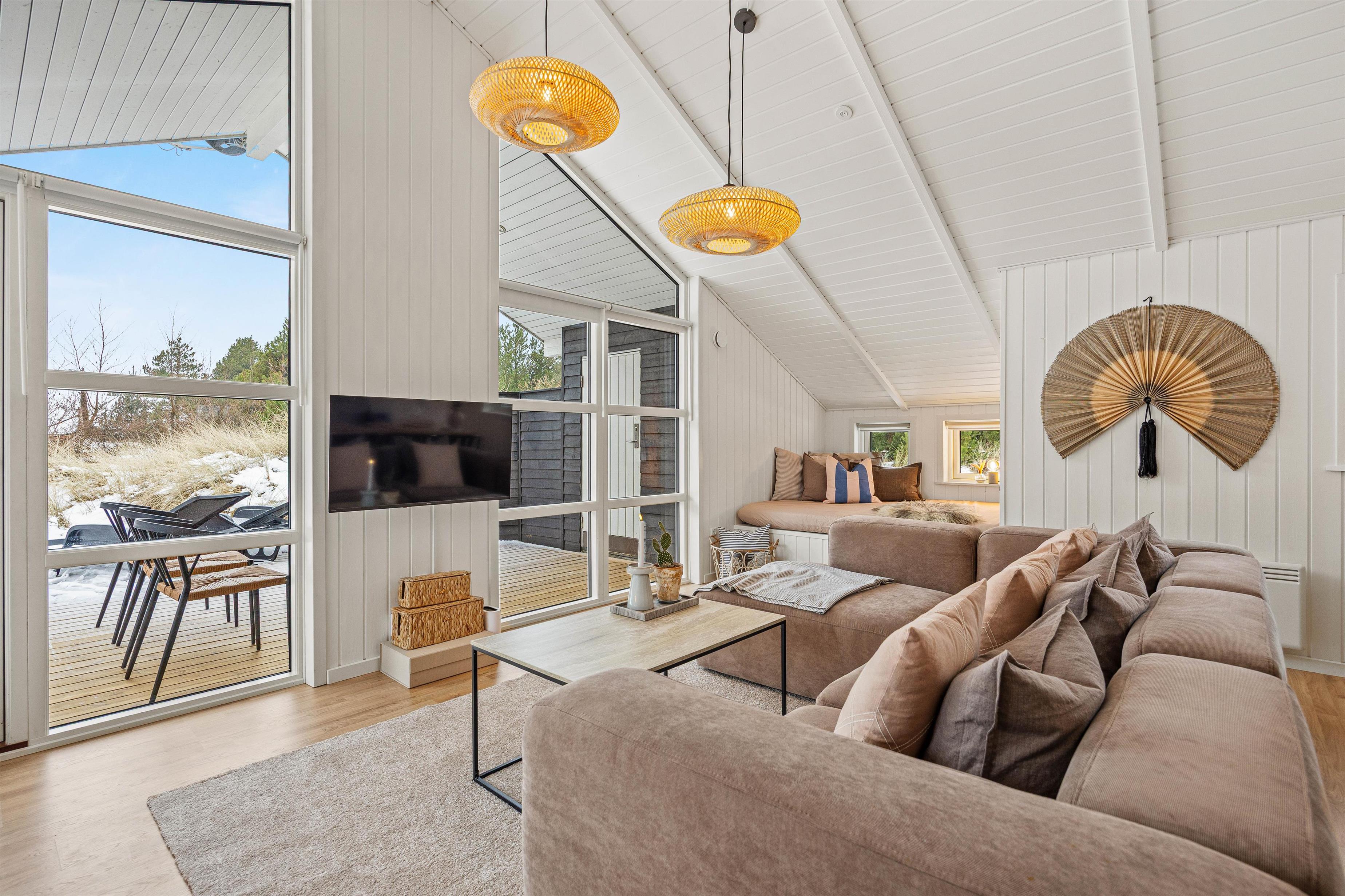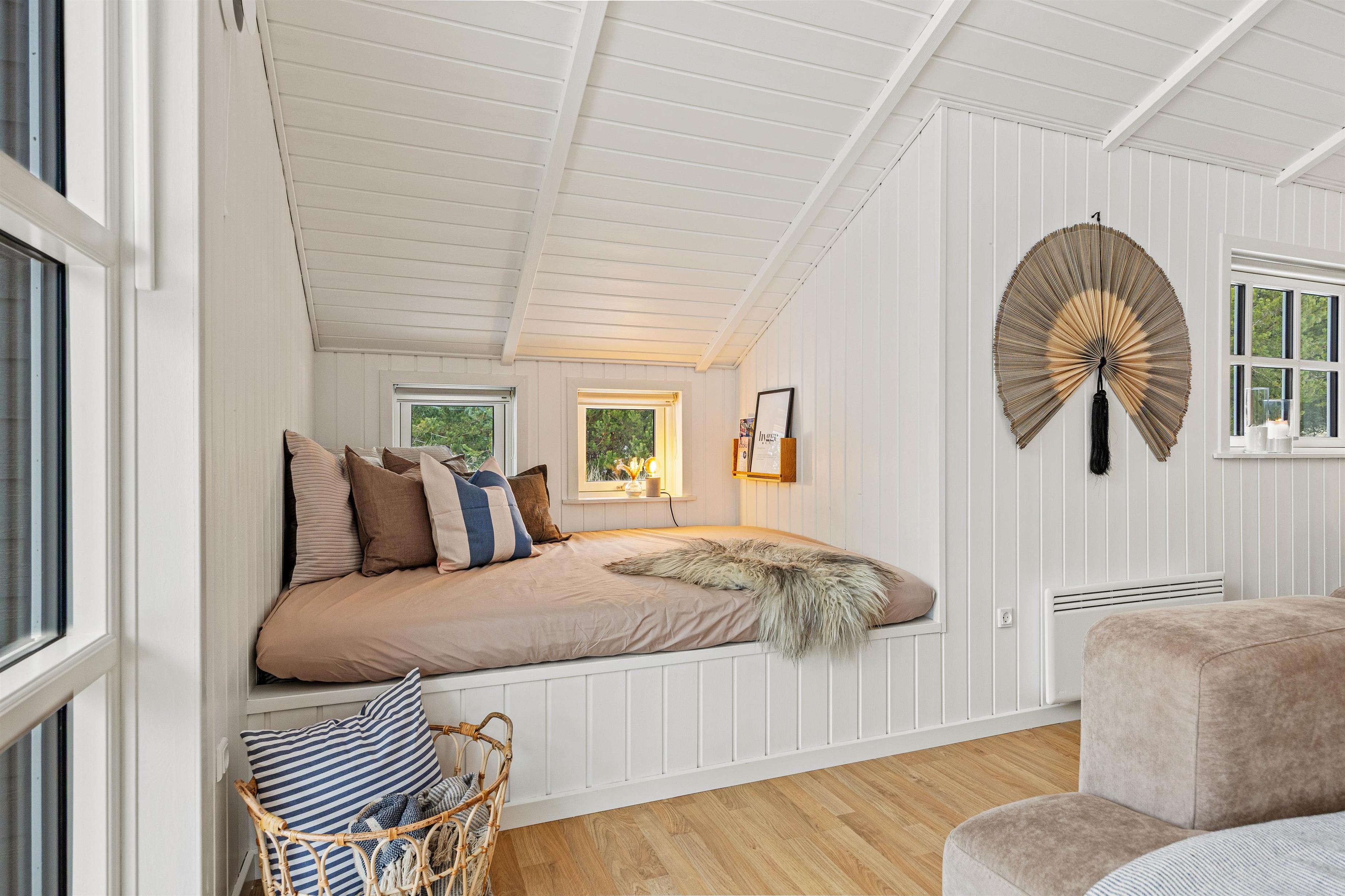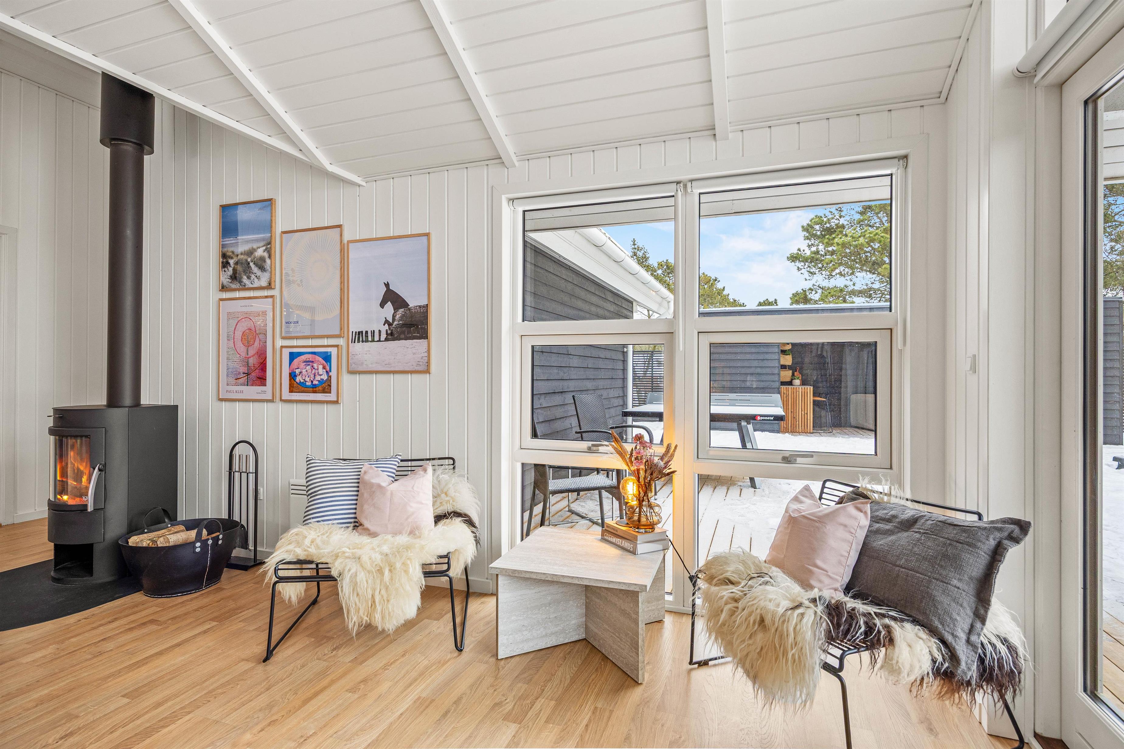 Det charmerende træhus på Pouls Bjerge leder straks tankerne hen på den klassiske sommerhusferie ved Vesterhavet. Sommerhuset rummer plads til 6 personer og er smagfuldt indrettet, ligesom det har loft til kip, er hvidmalet og har store vinduespartier, der lukker lyset og naturen indenfor.