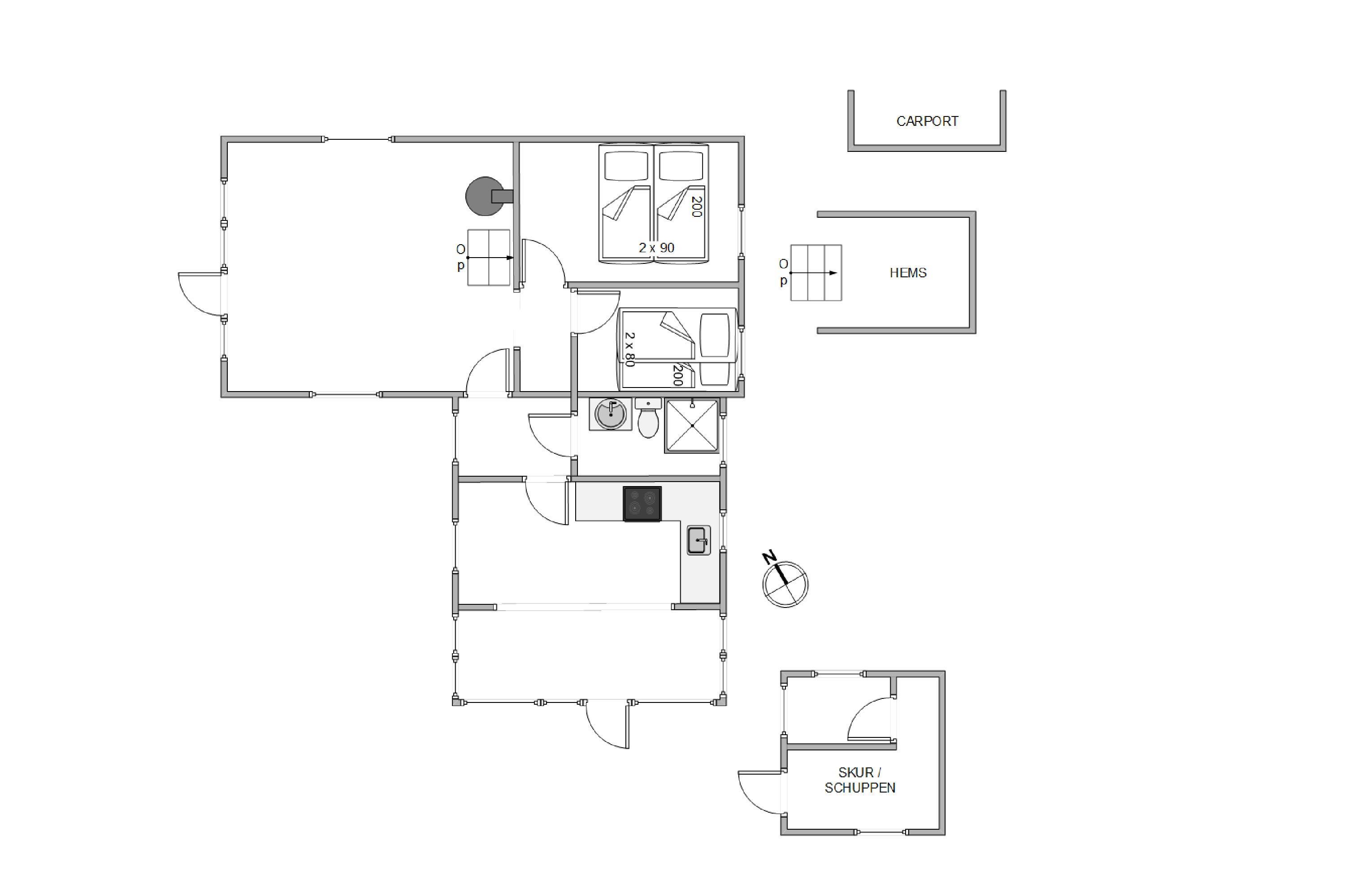 Huset har to soverum, hvor man i det ene kan hvile sig i en dobbeltseng og i det andet i hyggelige køjesenge, hvilket de fleste børn vil elske.
