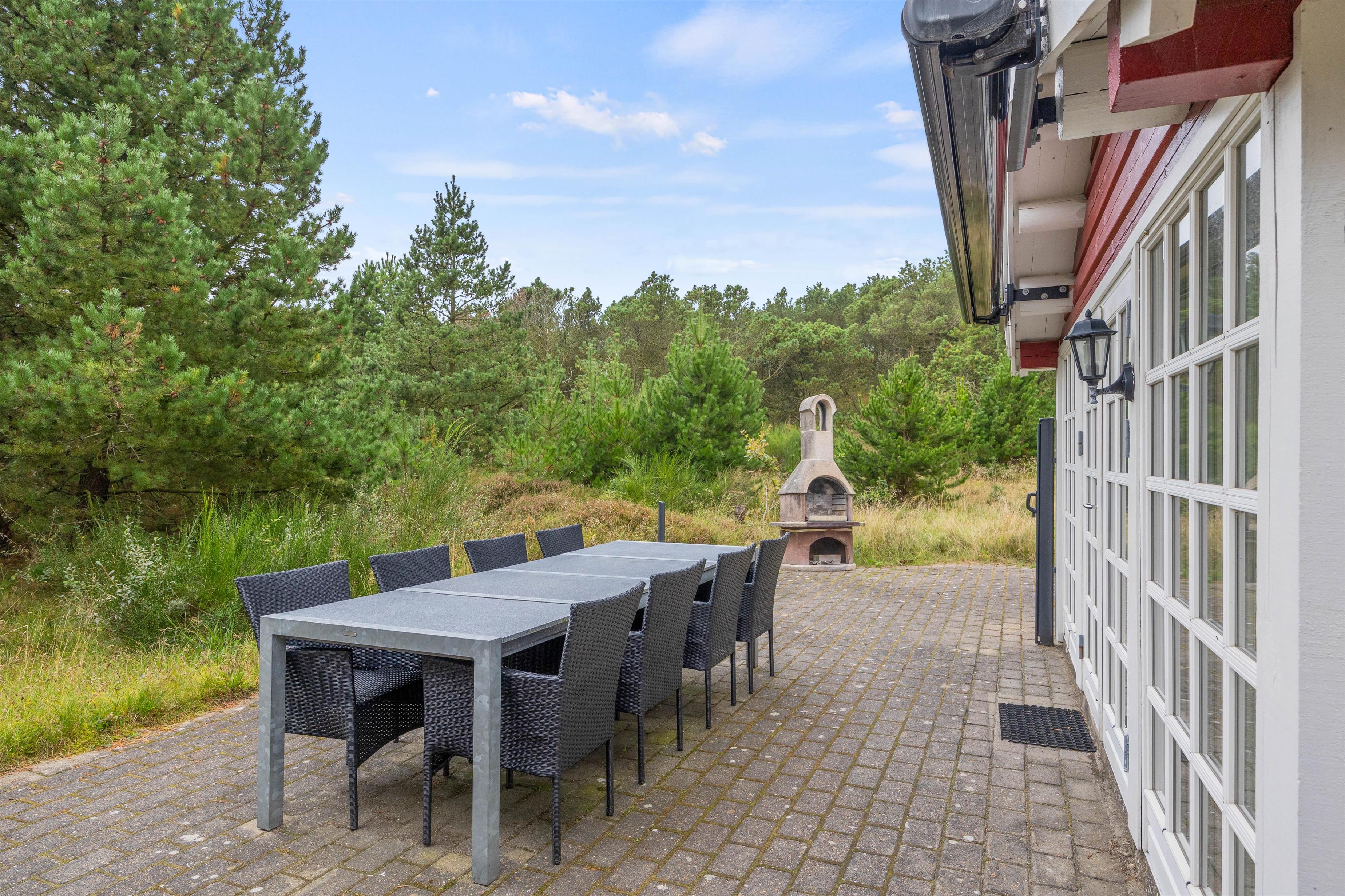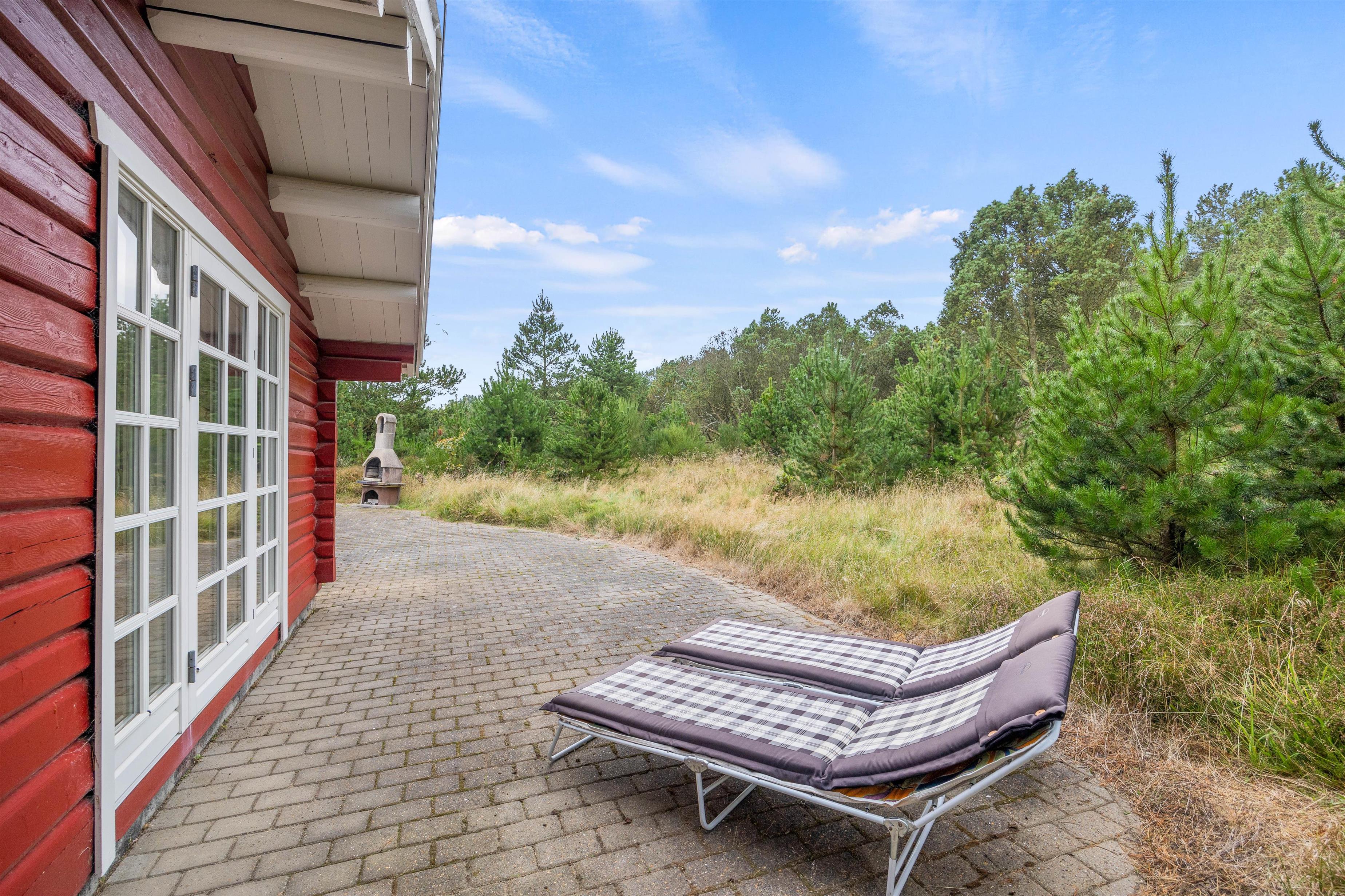 På den åbne terrasse venter husets havemøbler på jer, så I kan koble fra med en god bog i en havestol og lave dejlig feriemad på gasgrillen – eller bare sidde og nyde roen på den store naturgrund, hvor I kan være heldige at få besøg af bl.a. rådyr. Bemærk venligst i denne sammenhæng, at markisen over terrassen kun er til privat brug.