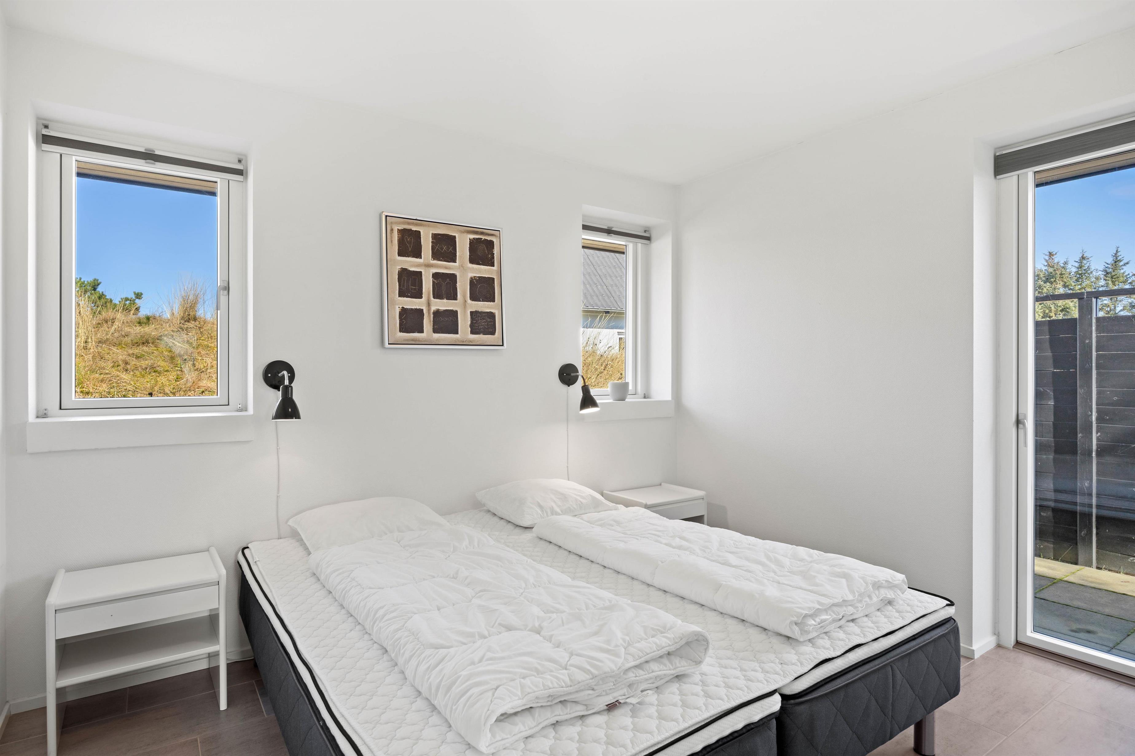 Med gratis trådløst internet i huset er det nemt at holde sig opdateret om, hvad der er af aktiviteter i området. Den skønne hvide sandstrand ligger kun 800 meter fra huset – at nyde solnedgangen fra badebroen, der ved Hvidbjerg Strand rager langt ud i Ho bugt, er en ubeskrivelig smuk oplevelse.
