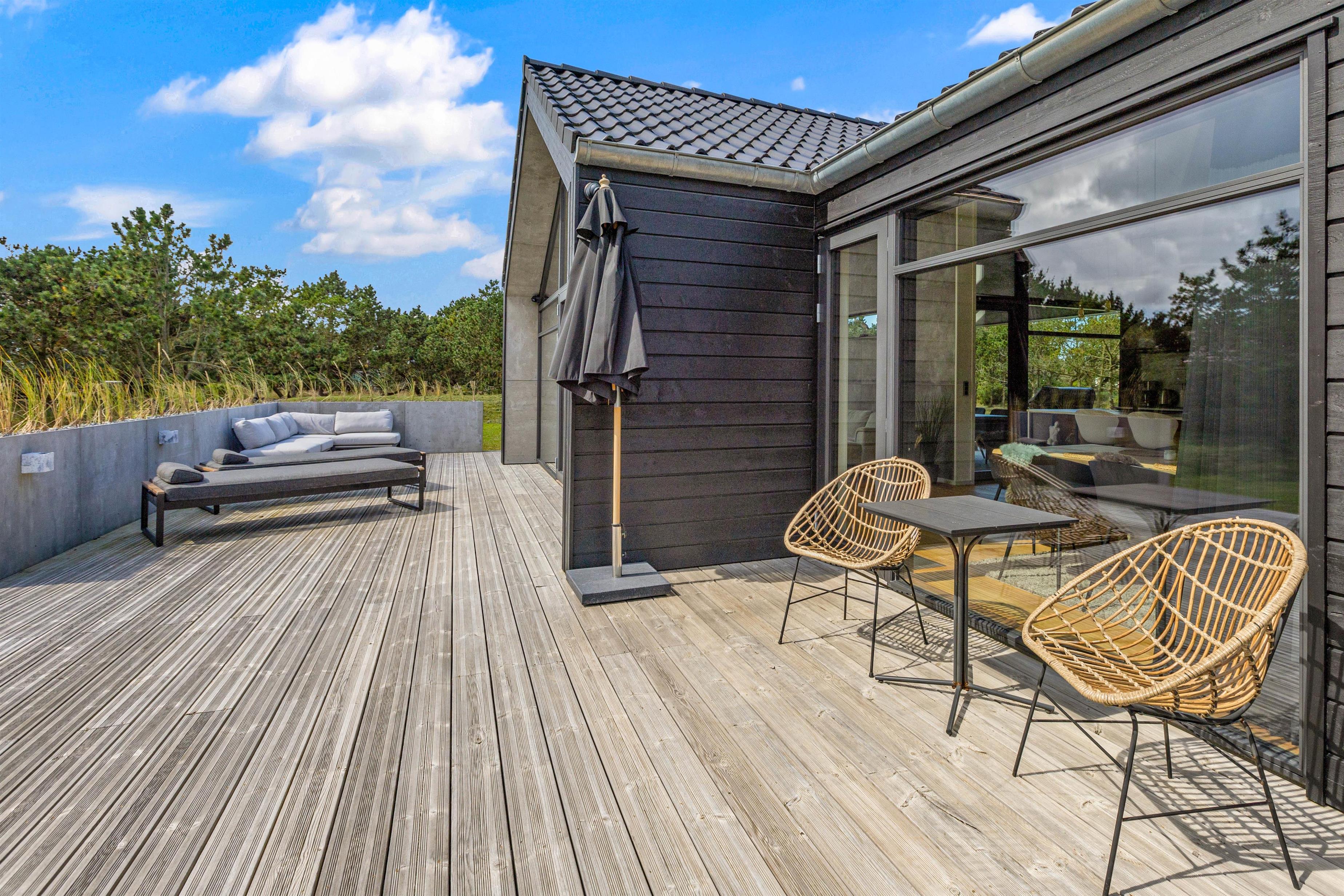 Opdag jeres idéelle feriedestination ved den danske kyst – det 5-stjernede sommerhus i Blåvand, beliggende på Fyrvej 33. Dette moderne sommerhus, som er bygget i 2020, tilbyder jer de perfekte rammer for en afslappende og luksuriøs ferieoplevelse. Med en harmonisk blanding af moderne arkitektur og skandinavisk hygge inviterer sommerhuset jer til at slippe hverdagens bekymringer og nyde livet.