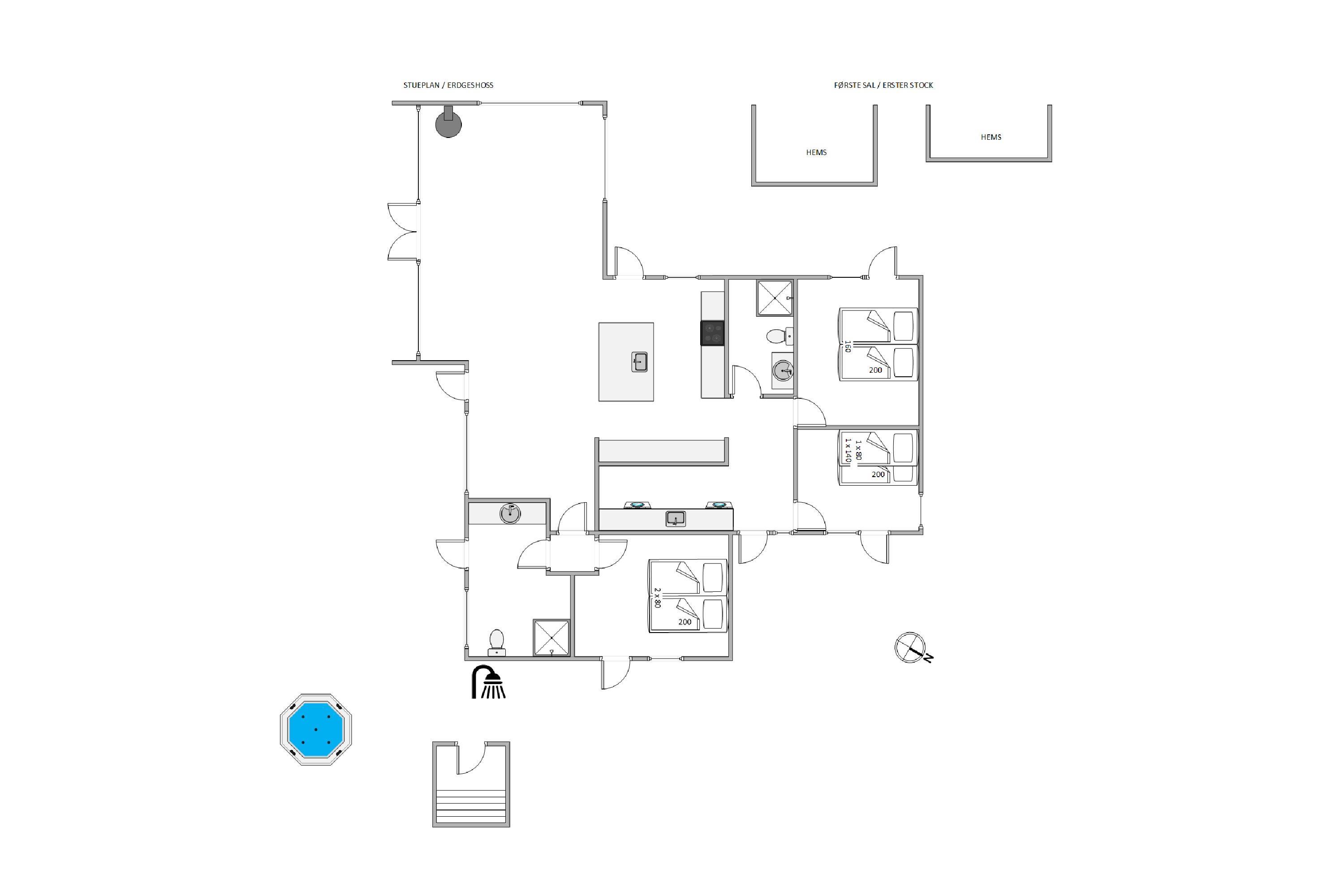 Sommerhuset byder på tre luksuriøse soveværelser, hver med en komfortabel dobbeltseng, så op til seks feriegæster kan opleve ultimativ komfort og privatliv under opholdet. De to moderne badeværelser med gulvvarme øger jeres komfort yderligere og tilbyder en rolig pause fra omverdenen. Her betyder afslapning at forkæle sig selv og nyde hver eneste dag i fulde drag.