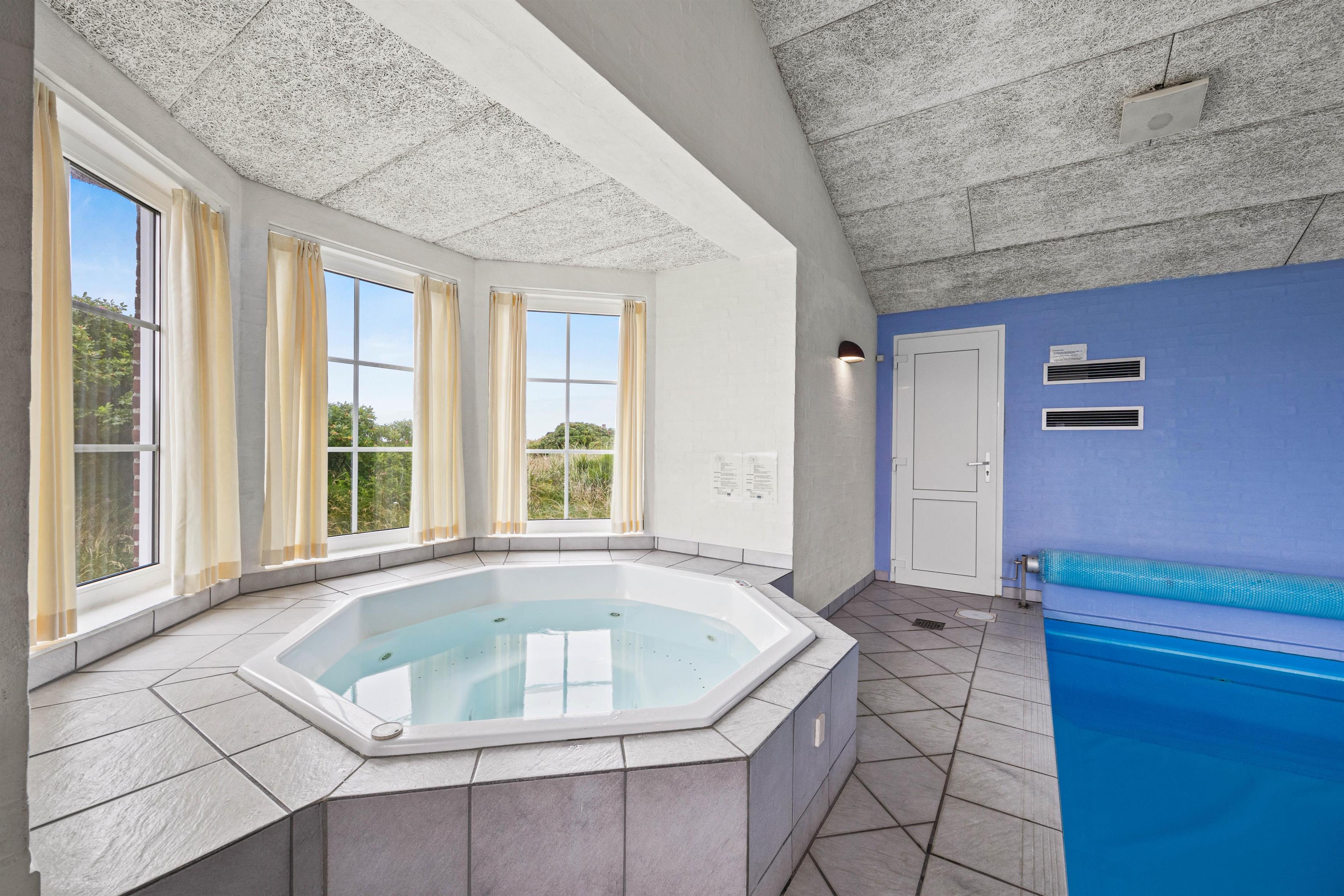 Sommerhusets helt store højdepunkt er poolafdelingen, hvor I både finder swimmingpoolen, spaen og saunaen. Til feriens vandhunde vil swimmingpoolen uden tvivl blive et stort hit, hvor de kan tilbringe mange timer med sjov og leg i vandet.