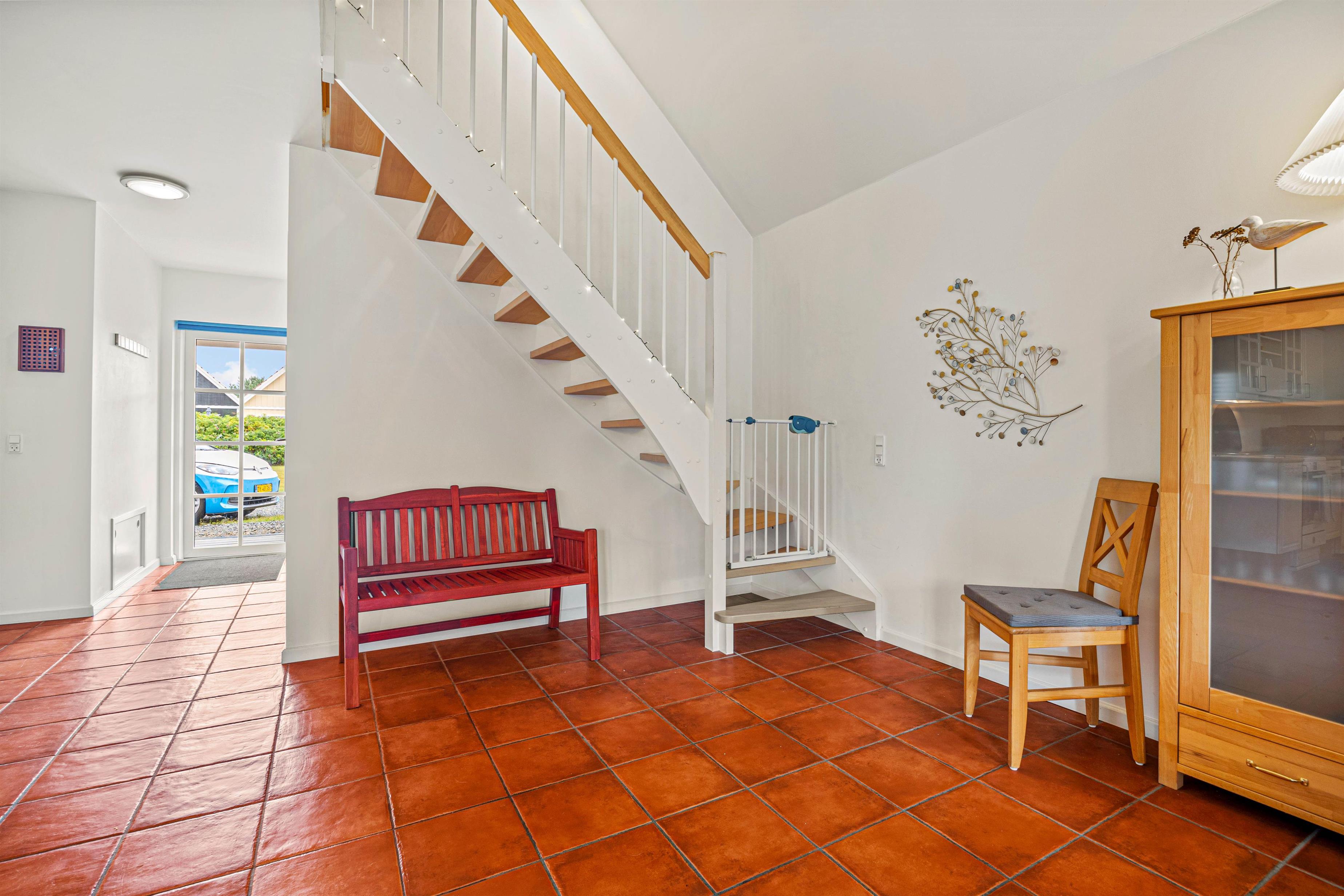 Feriehuset er moderne indrettet og udstyret med tekniske faciliteter som hårde hvidevarer, varmepumpe, ladestik til elbil (husk kabel/adapter) og giver også mulighed for en forkælelsestur i spa og/eller sauna.