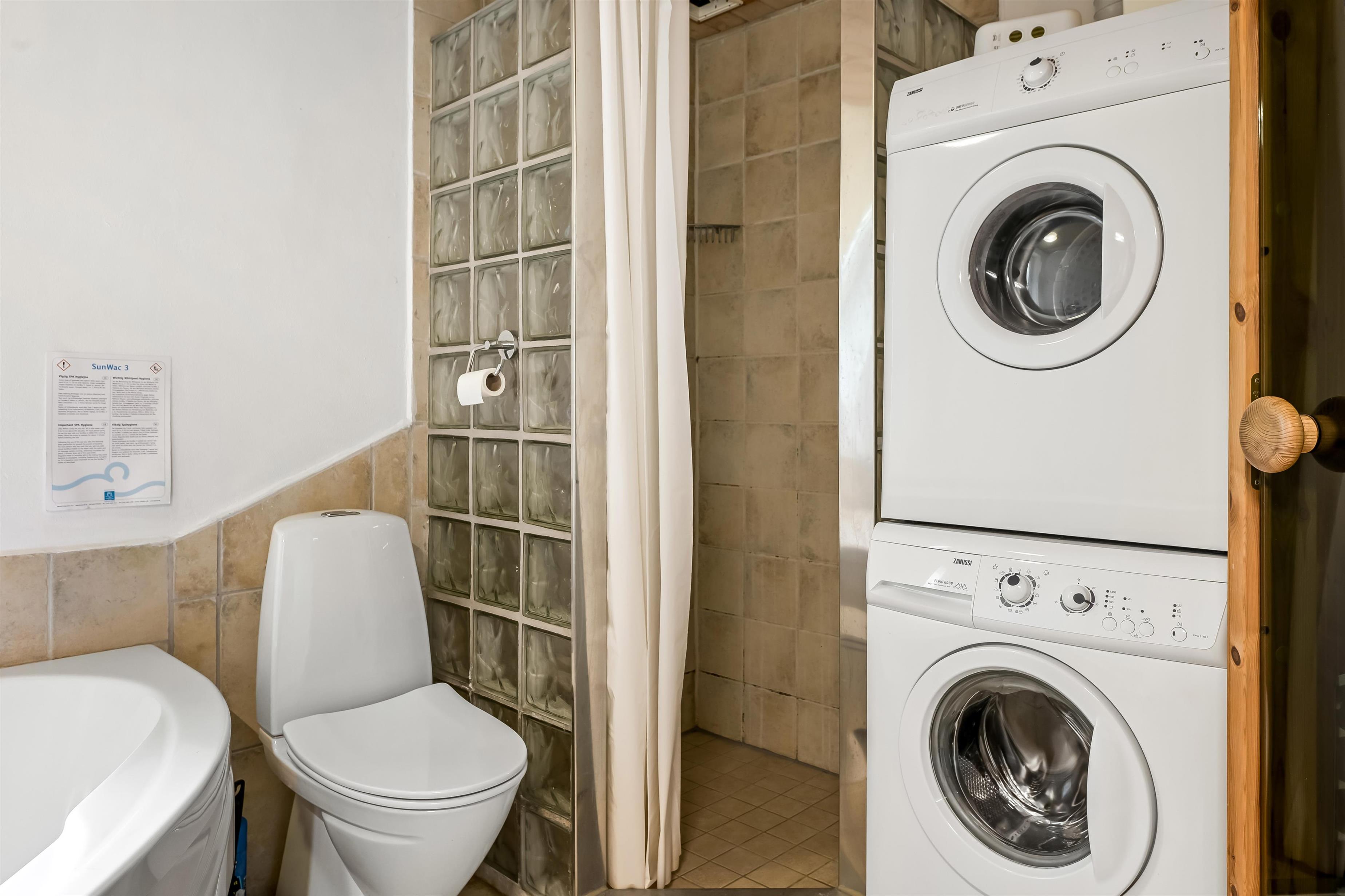 Gulvvarmen i badeværelset holder jeres fødder lune selv på koldere dage, og vaskemaskine, tørretumbler og en innovativ varmepumpe står til jeres rådighed og giver jer ekstra komfort, så I får et stressfrit ophold. Ladestationen til elbiler gør det også nemt og bekvemt at oplade dit køretøj.