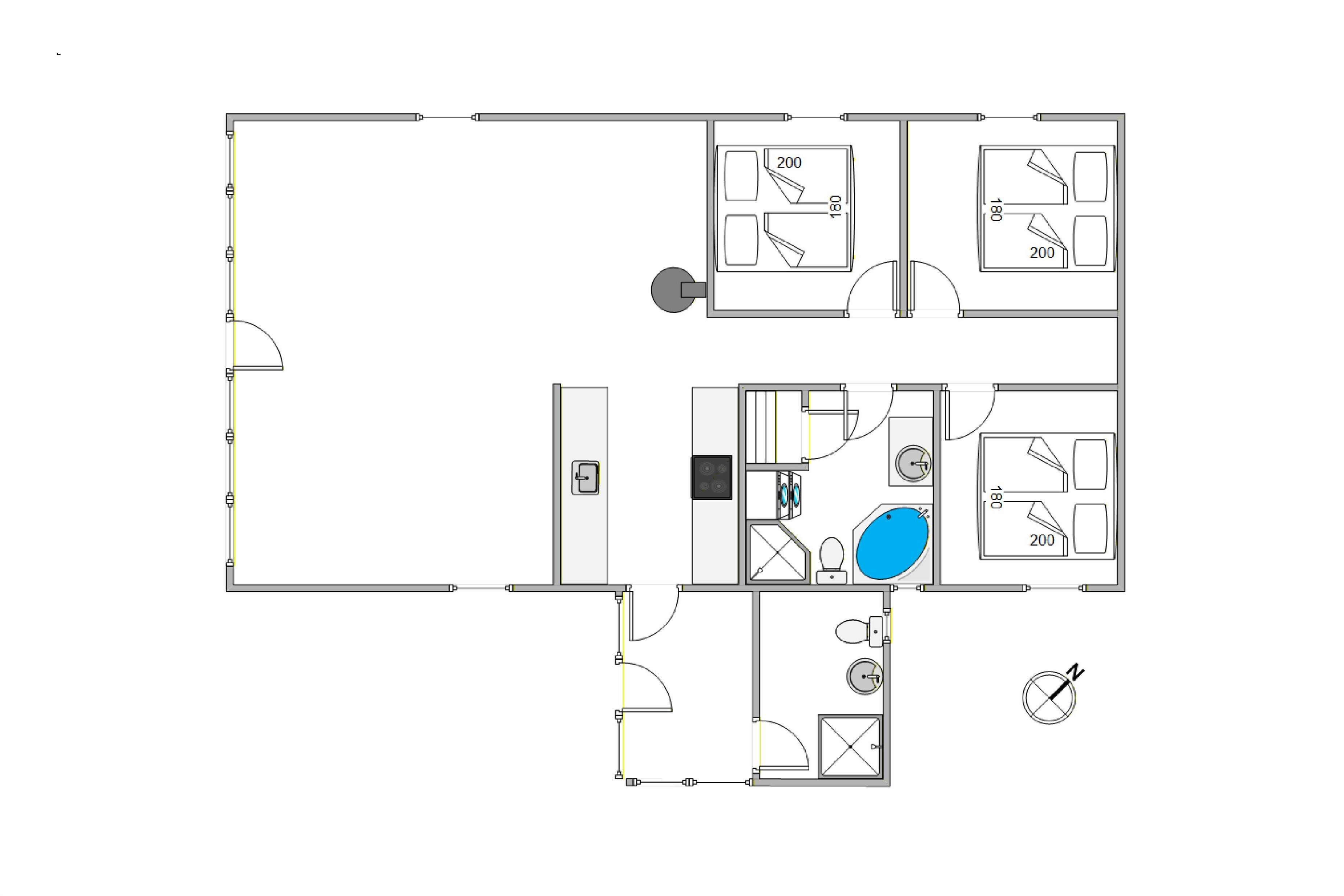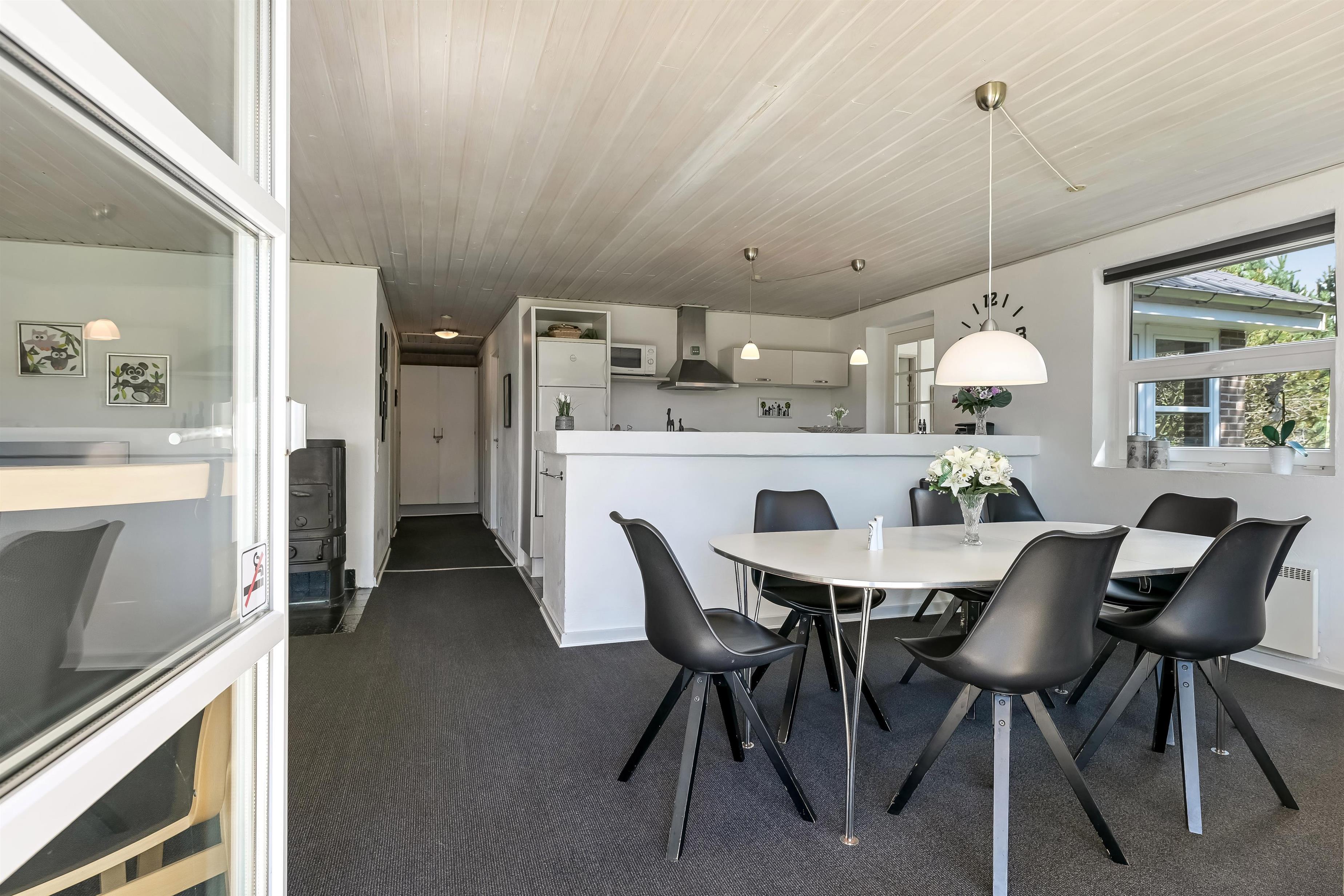 Med sine 106 kvadratmeter tilbyder sommerhuset i Blåvand plads til op til 6 personer, hvilket er idéelt til en familieferie eller en udflugt med venner. 3 smagfuldt indrettede soveværelser med 1 dobbeltseng og 4 enkeltsenge sikrer jer en god nats søvn, og den rummelige stue med den effektive brændeovn er perfekt til at tilbringe hyggelige timer i, efter at I har hygget jer med at tilberede måltider sammen i det veludstyrede køkken. Her finder I også en opvaskemaskine og en moderne 60-liters fryser.