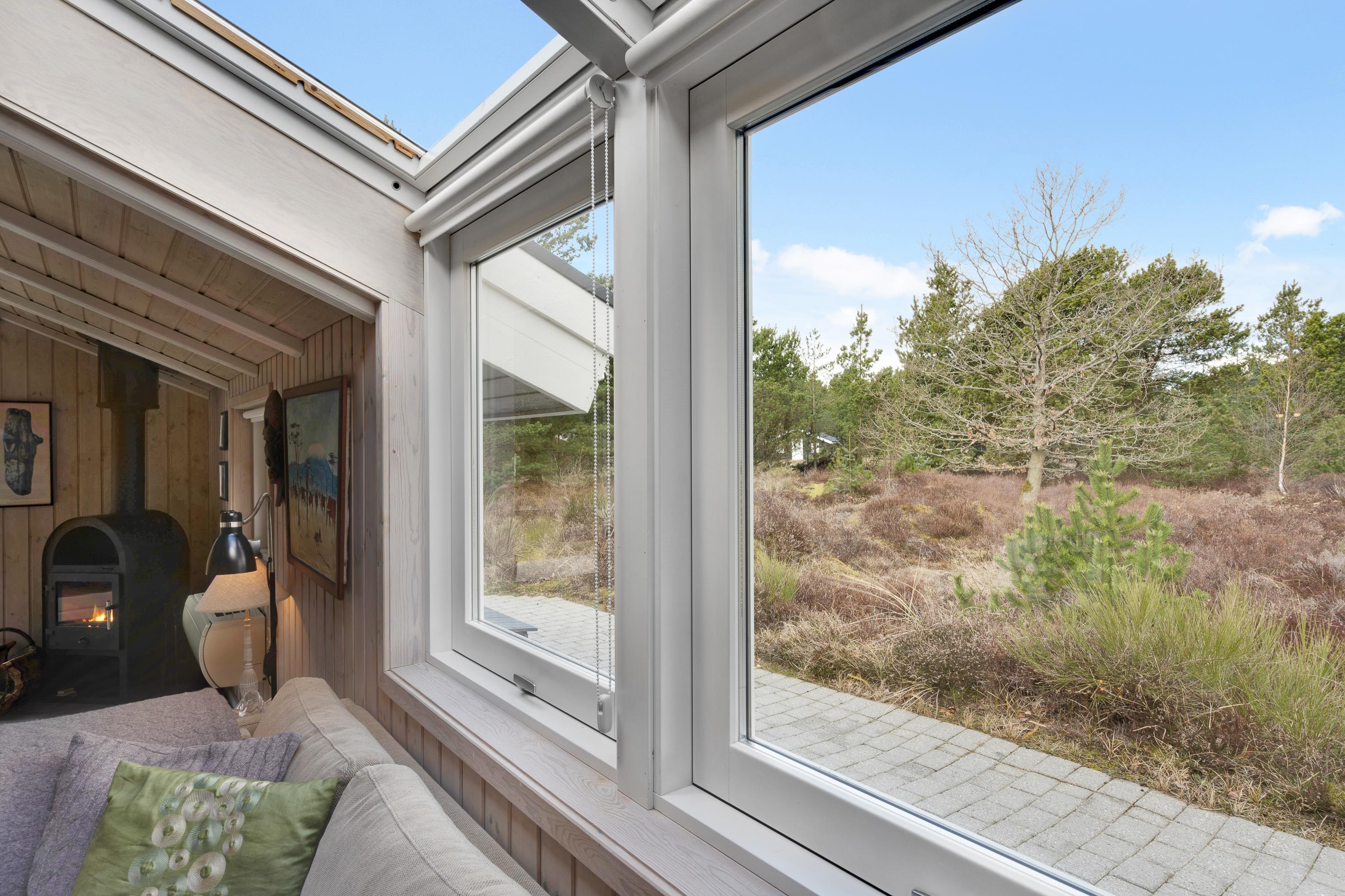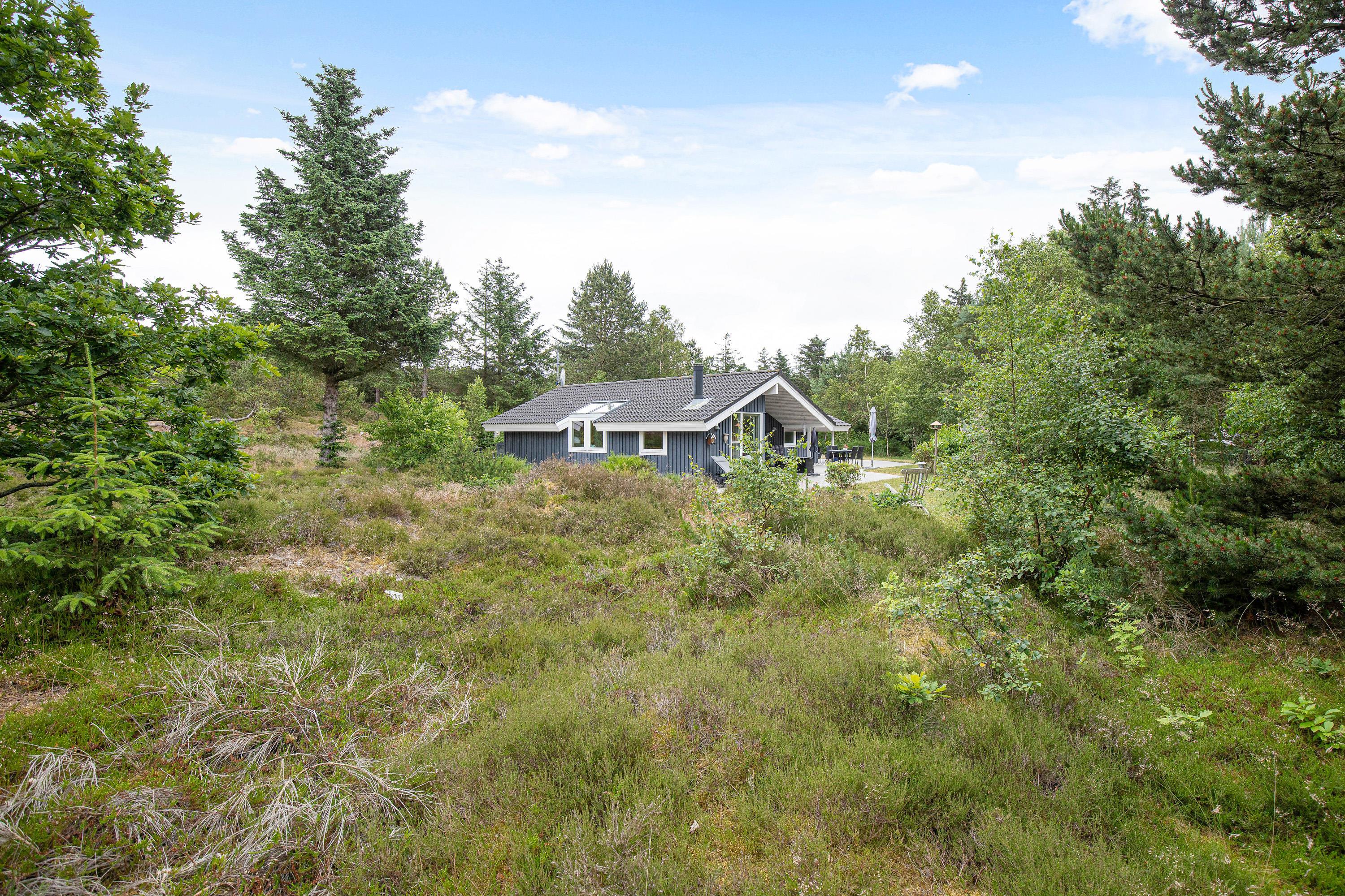 Feriehuset har en unik beliggenhed op til fredet område med høje klitter og ved foden af 'Heksebjerg', hvorfra der er 360 graders panoramaudsigt og de skønneste solnedgange kan nydes. Grunden har sin egen private sti, der fører de 30 m til klitterne, samt en sti rundt i det smukke lyngområde ved huset, i hvilket du kan sidde på en granitbænk, og nyde udsigten.
