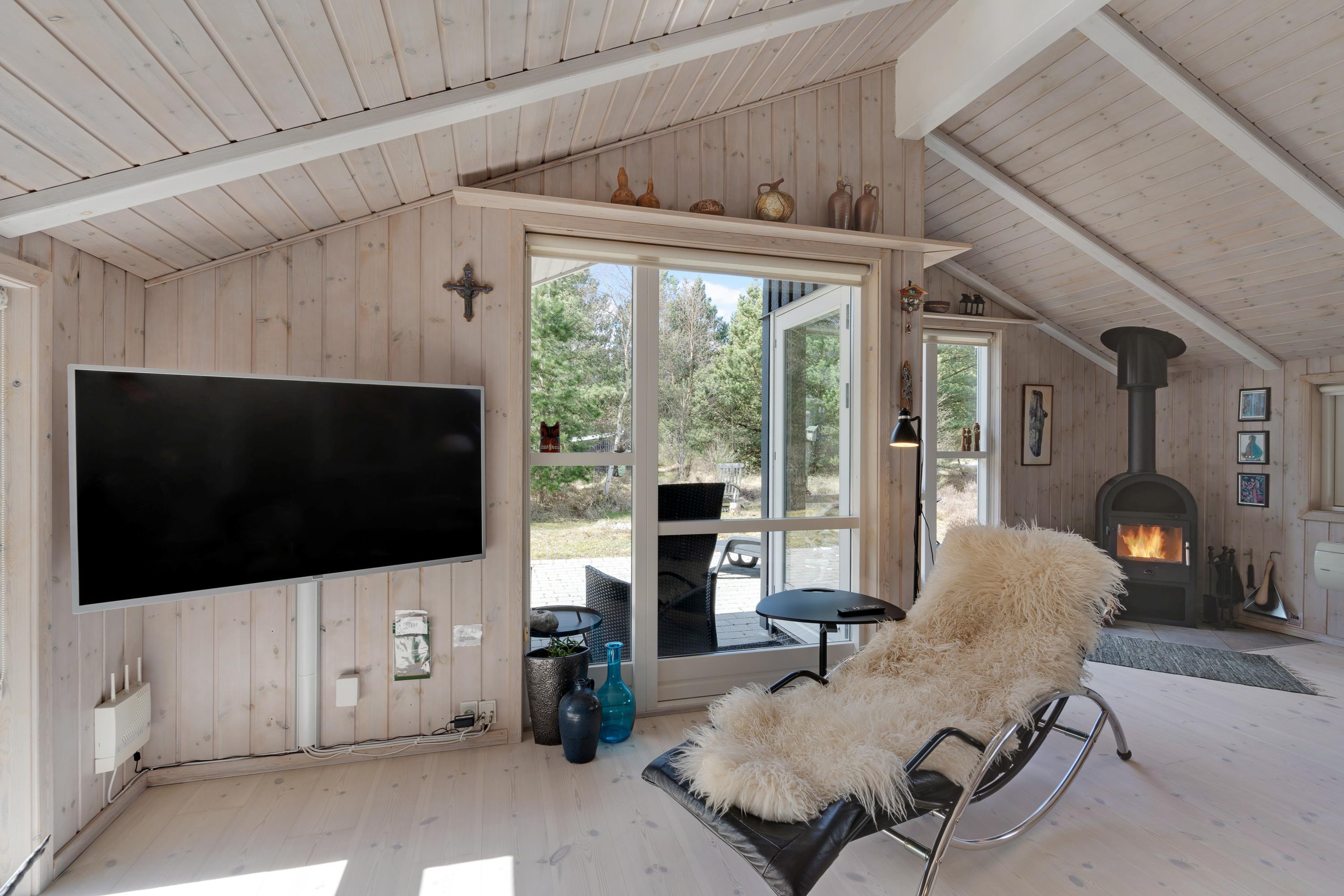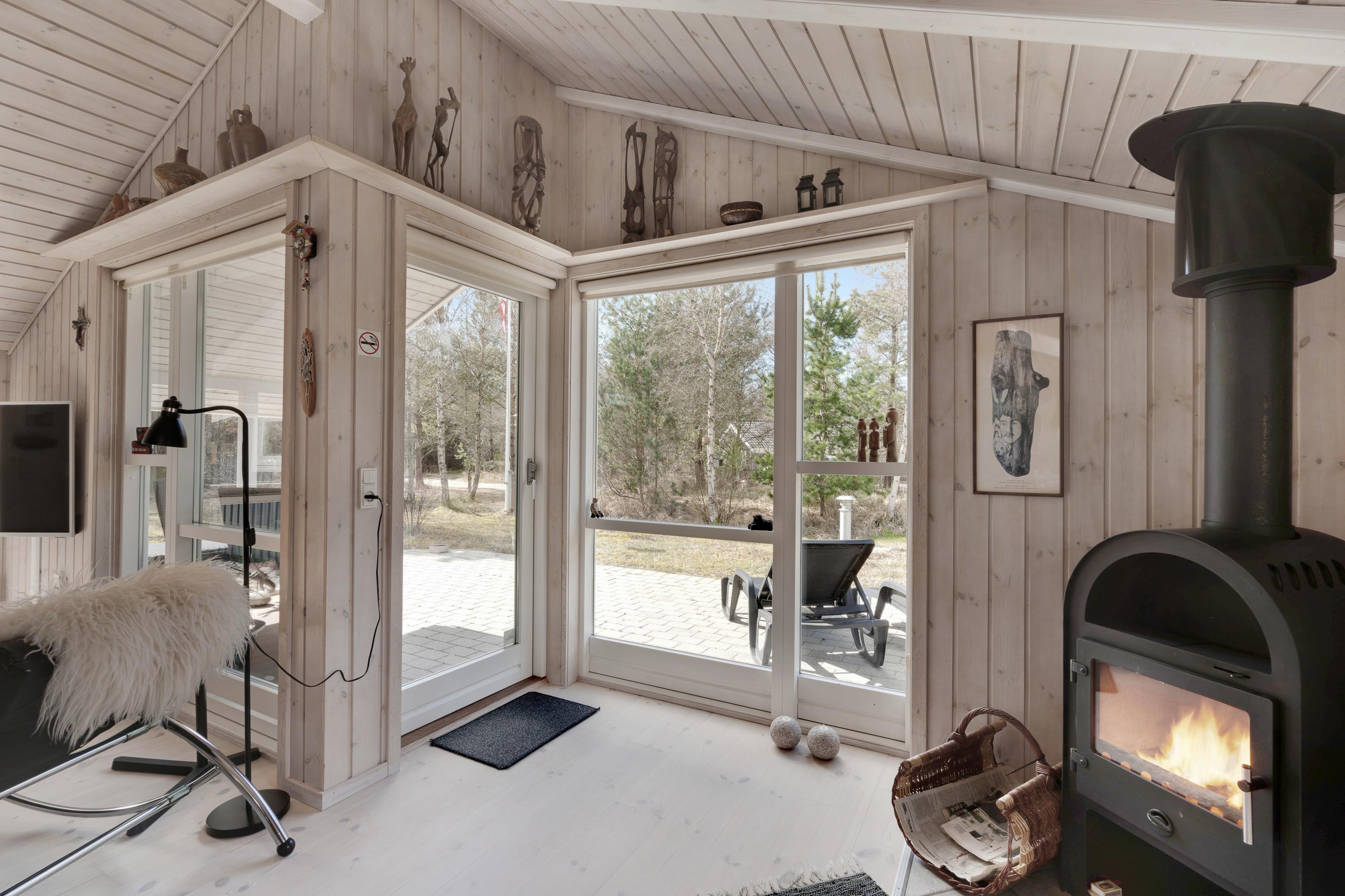 På energi- og økonomivenlig vis sørger en varmepumpe for, at I altid har et godt indeklima i feriehuset. Derudover har I også en brændeovn i stuen, som I kan tænde op i for ekstra varme og for at fuldende den klassiske sommerhusstemning.
