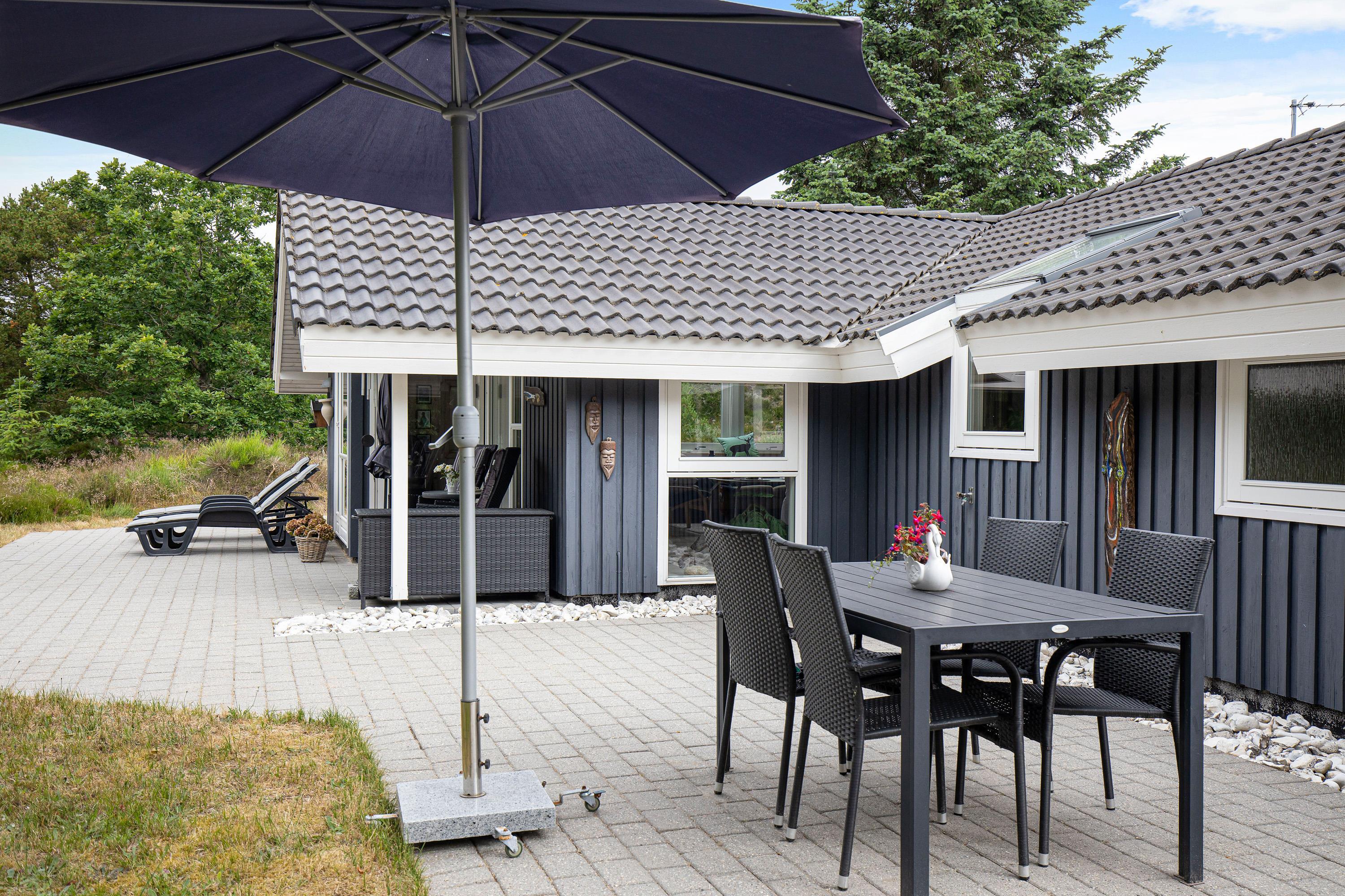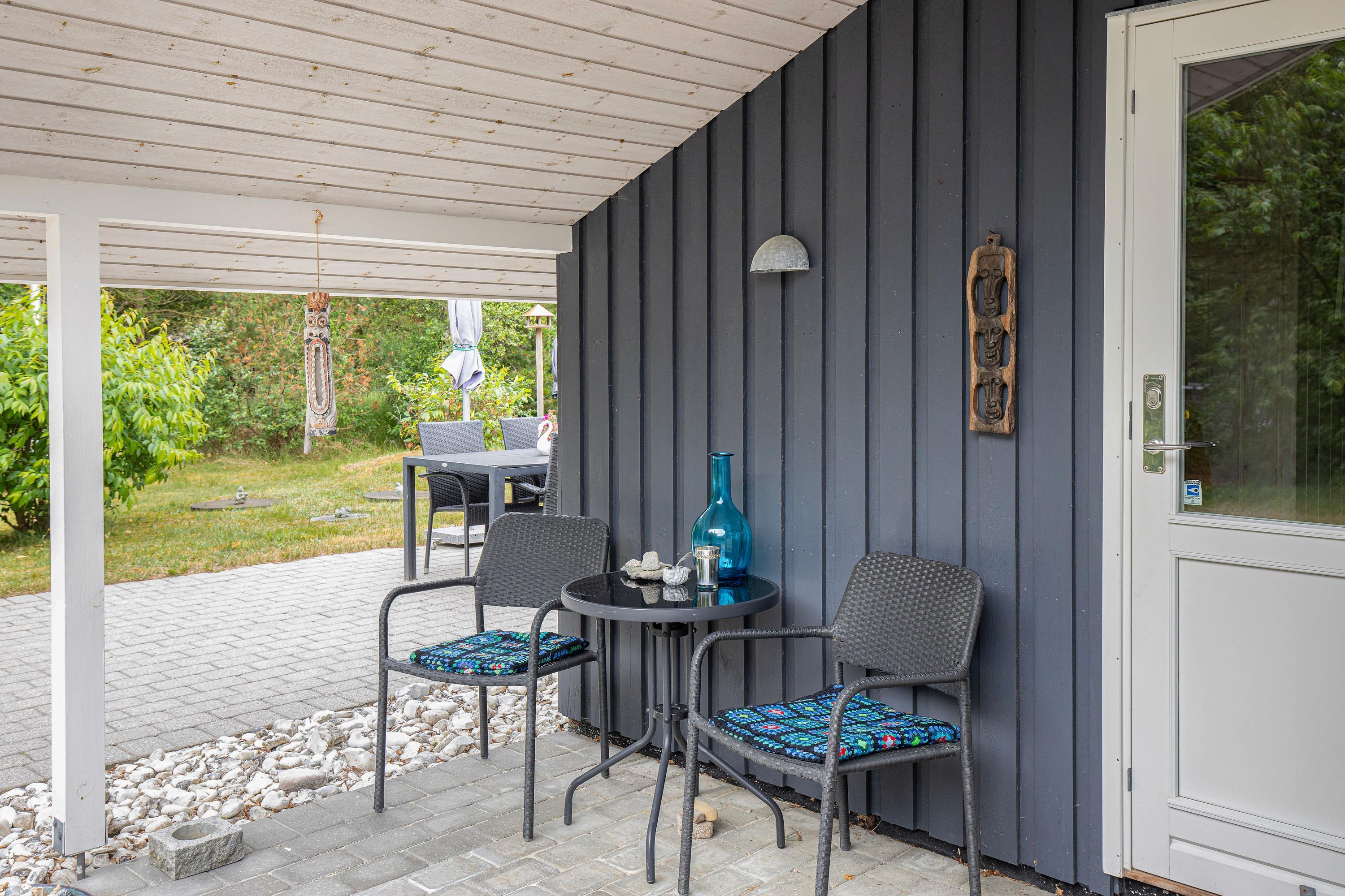 Udendørs har I masser af plads at boltre jer på. Hele vejen rundt om sommerhuset løber en åben, delvist overdækket terrasse, hvor I altid kan finde jer et godt spot. Med havemøbler, liggestole og grill til rådighed mangler I ikke noget til de varme, solrige feriedage på terrassen. Der lægges vægt på respekt for naturen og det omgivende miljø, og rådyr og harer ses ofte omkring huset.