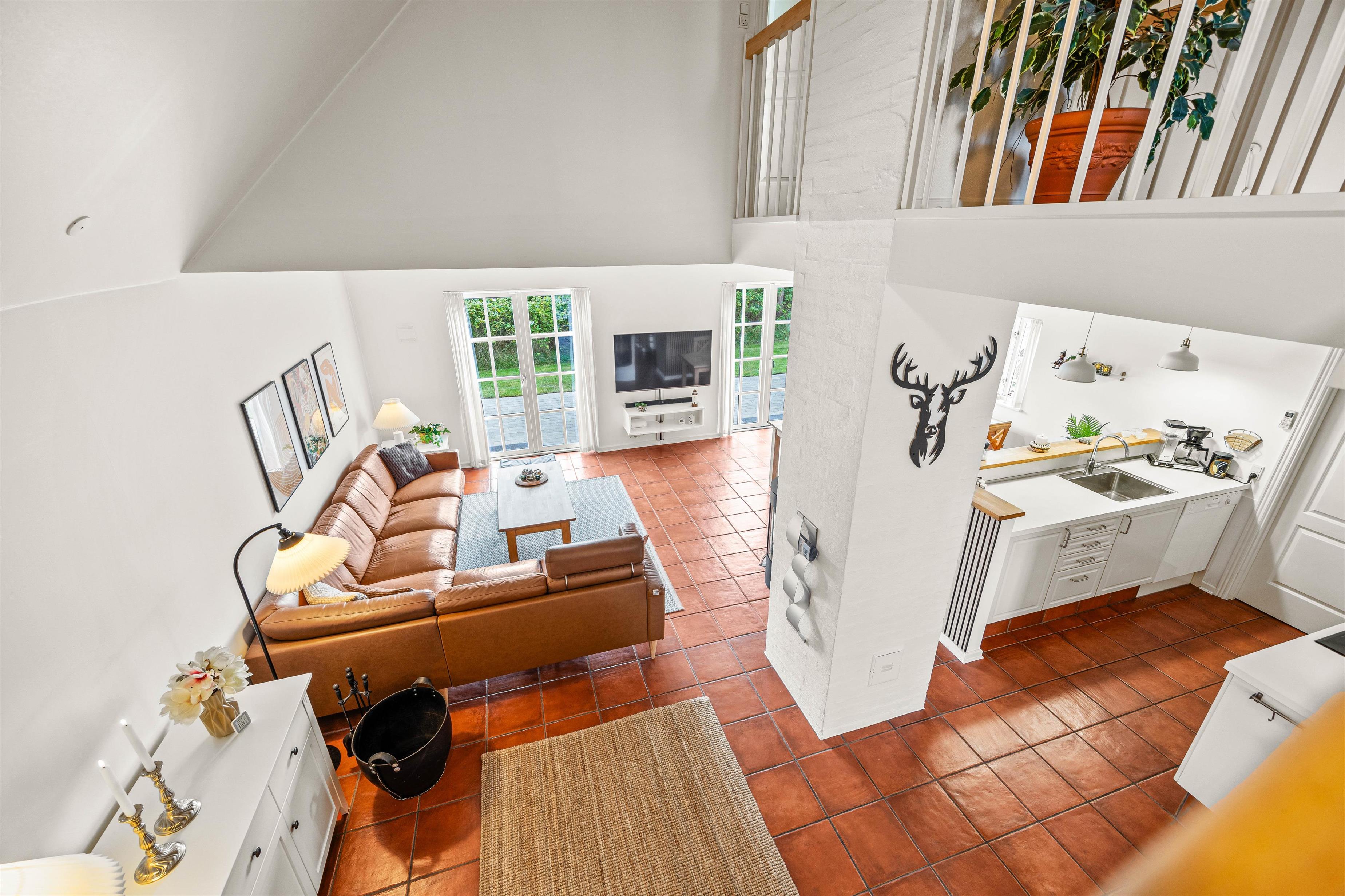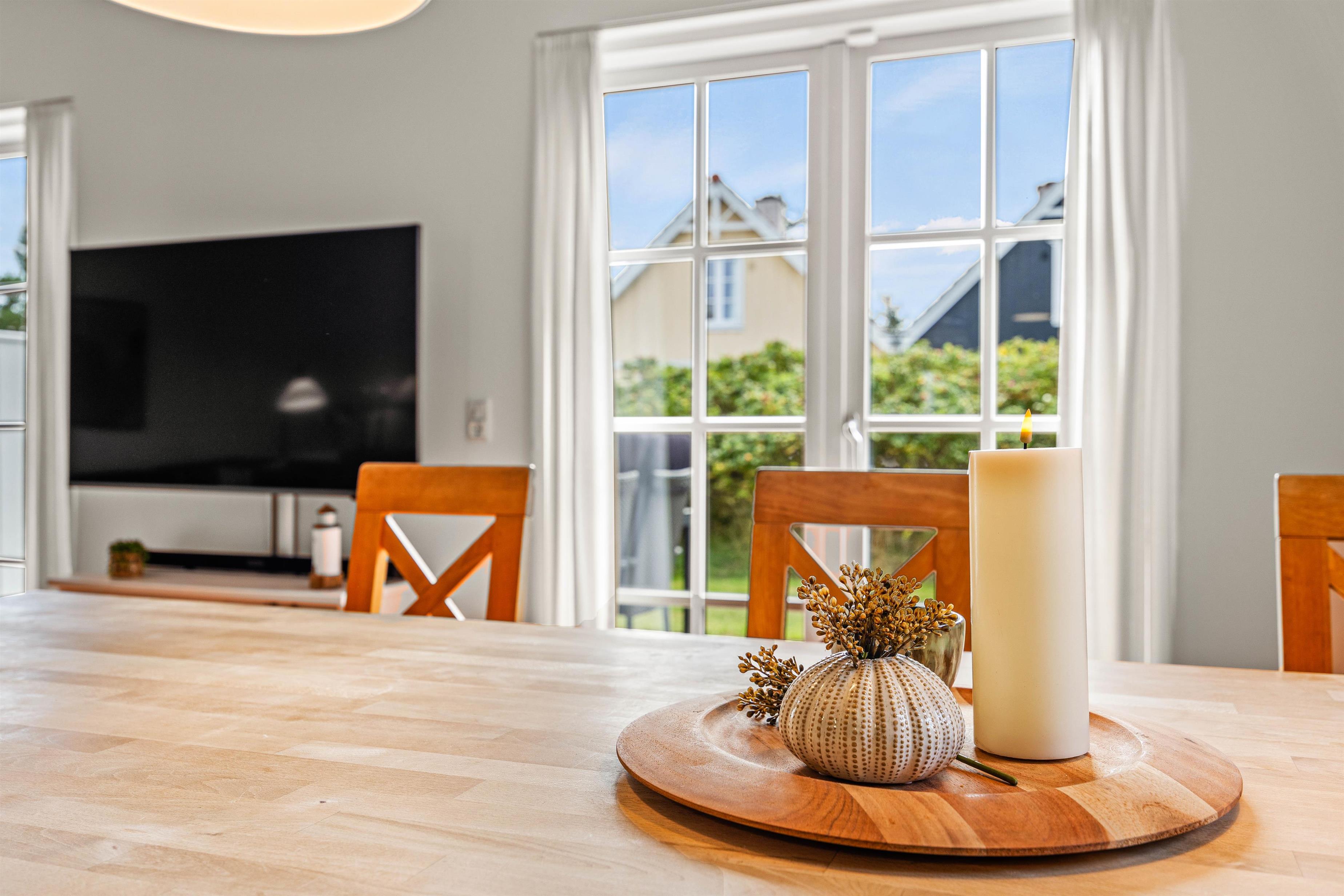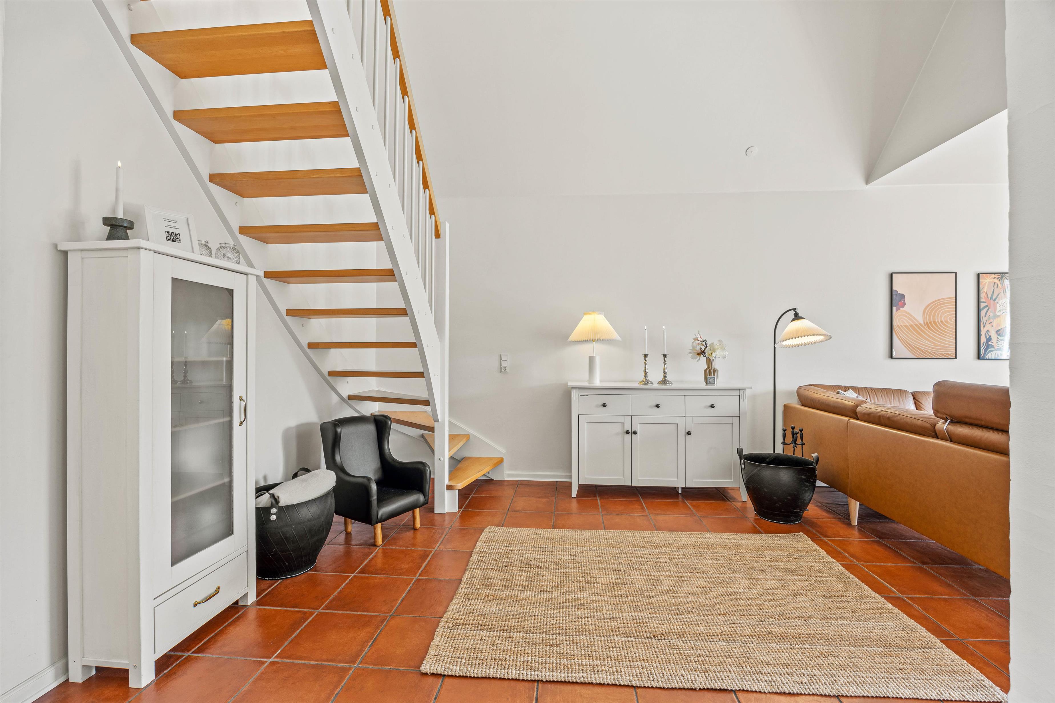 Opholdsstuen ligger også i stueetagen, og her vil I uden tvivl tilbringe mange timer sammen. I kan sætte jer godt til rette i sofaerne, mens I streamer film via Chromecasten – for ekstra god lyd til jeres yndlingsfilm kan I oprette forbindelse til soundbaren, som I også kan spille musik gennem. Skal der i stedet skrues op for den hyggelige stemning, kan I tænde op i brændeovnen.